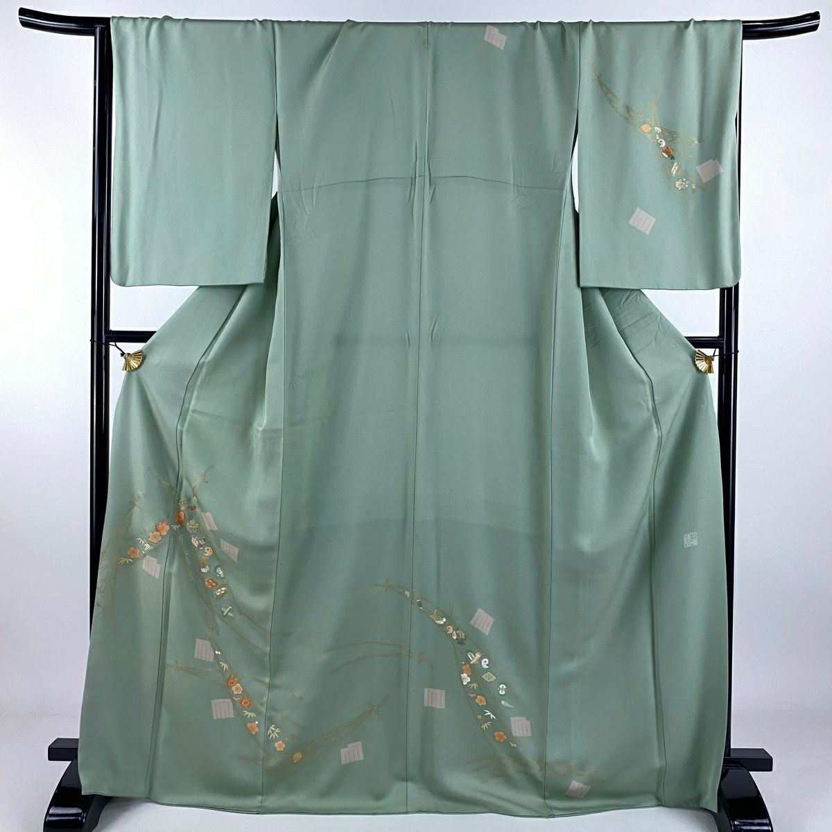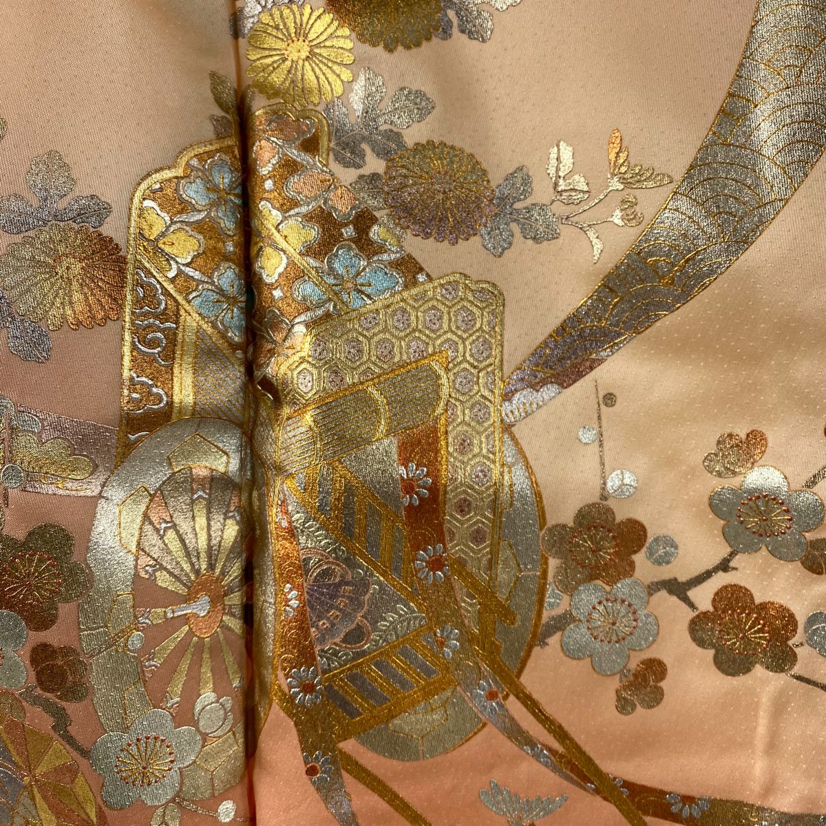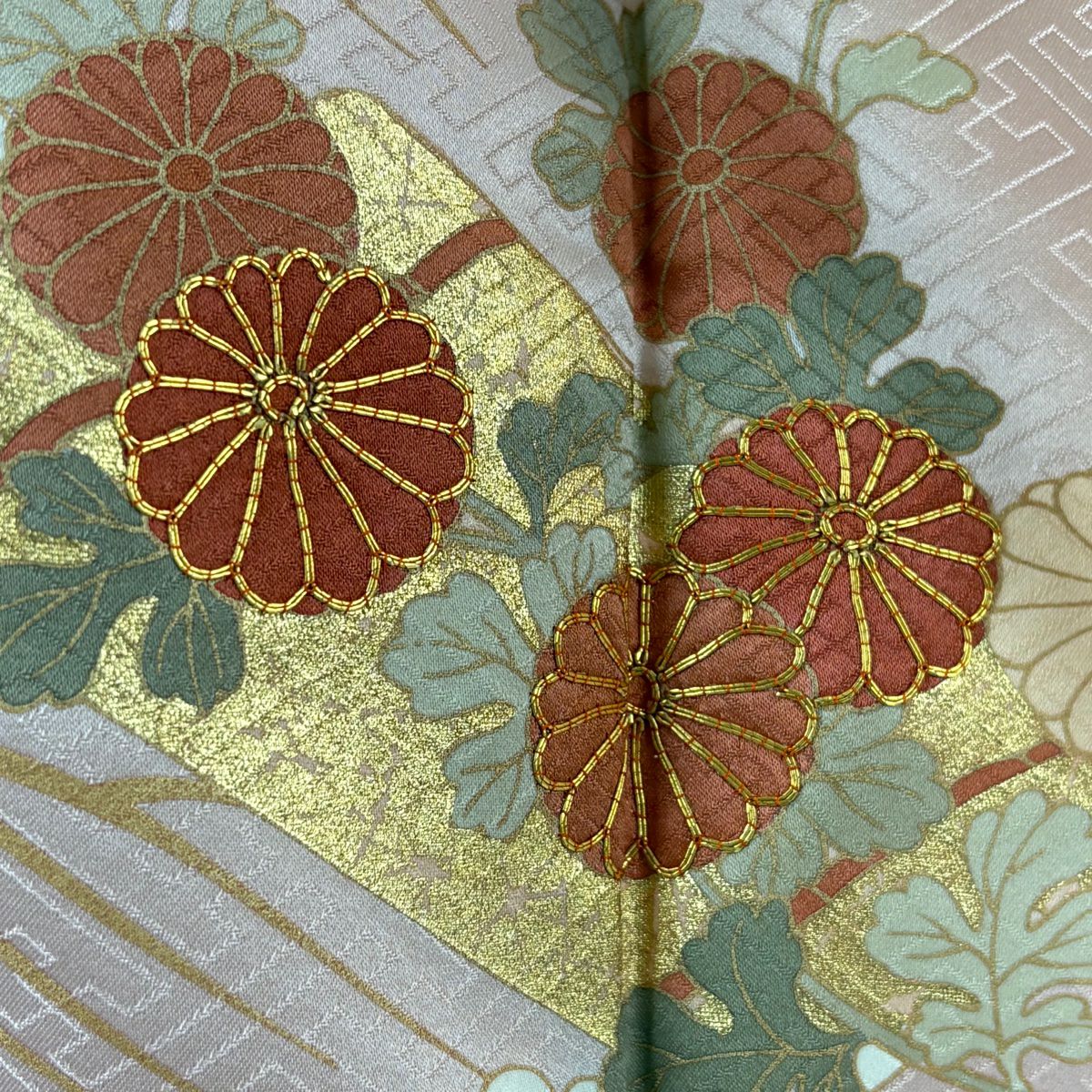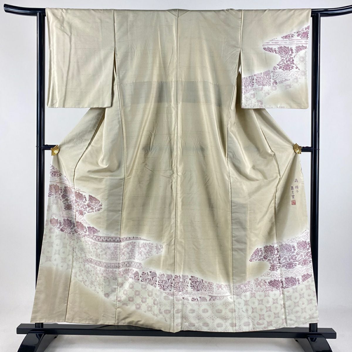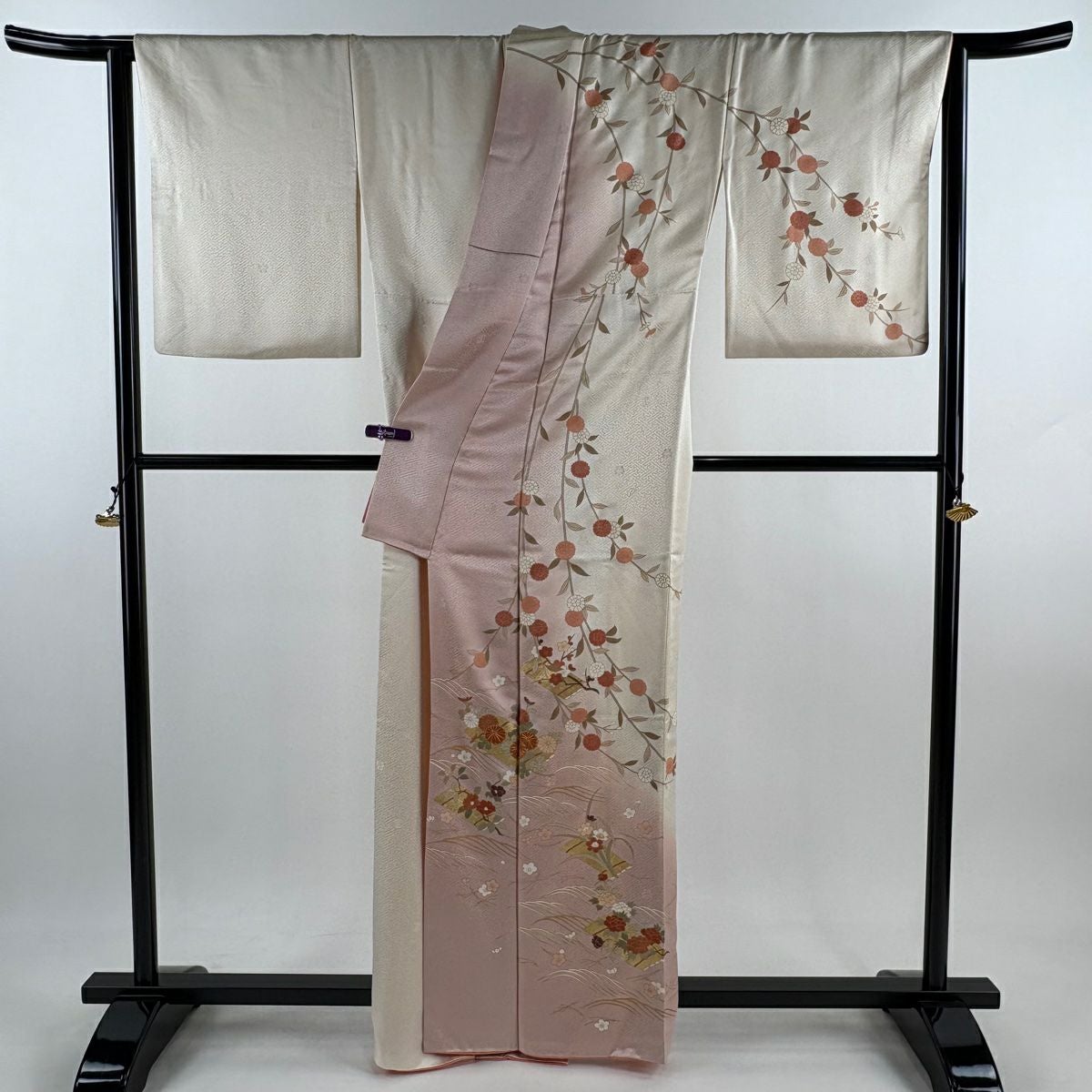 他の画像を見る 【在庫一掃】 【美品】 付下げ 身丈165.5cm 裄丈68cm L 袷 人間国宝 福田喜重 鈴乃屋 落款あり 霞 箔散らし 金彩 ぼかし 薄オレンジ 正絹 逸品 一つ紋 ¥ 12,540 税込