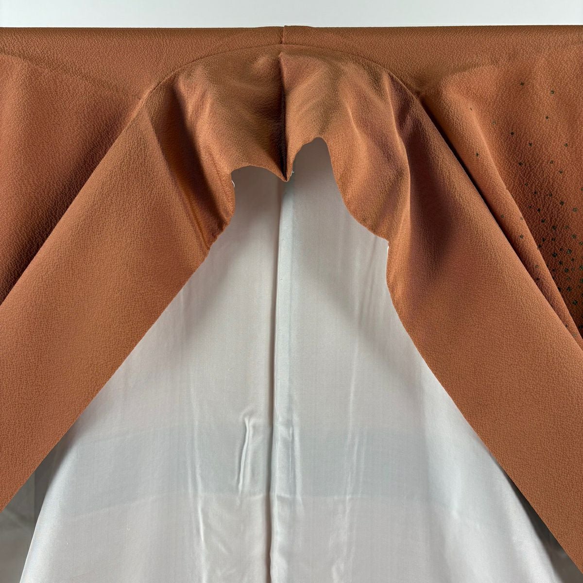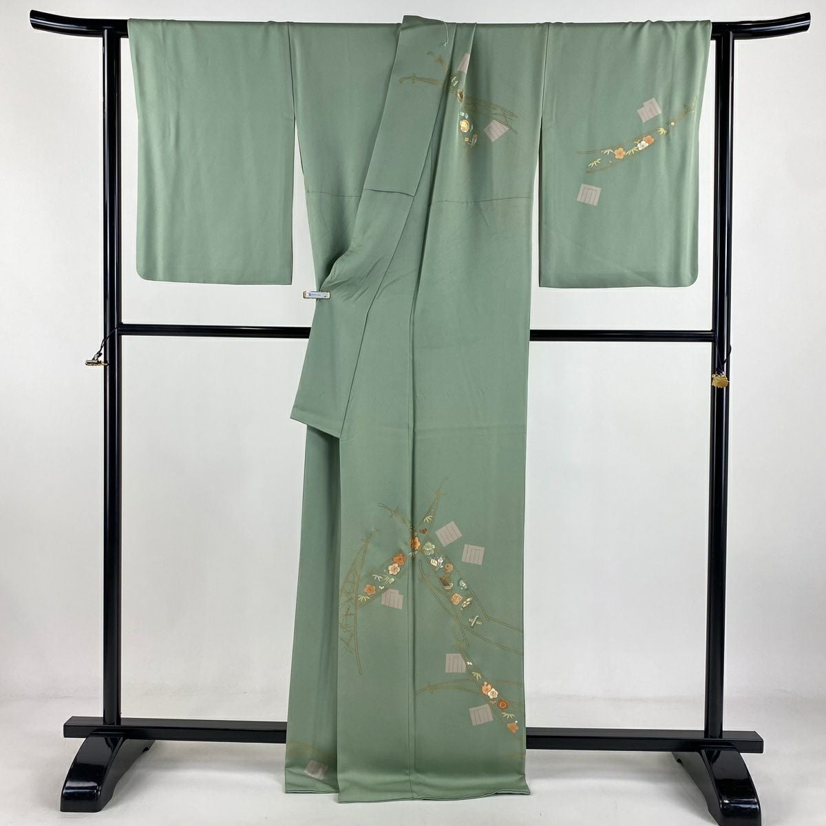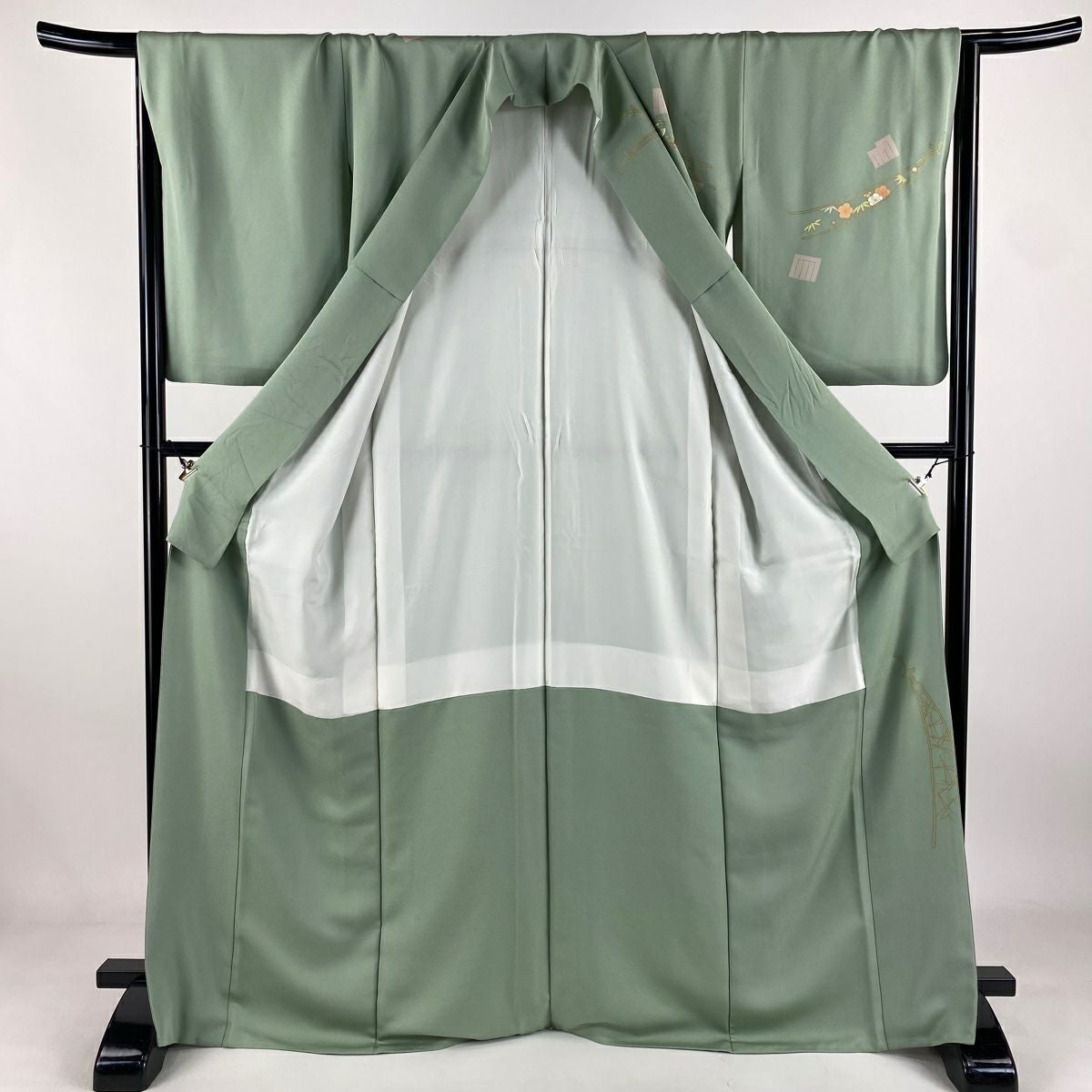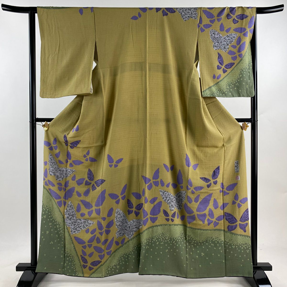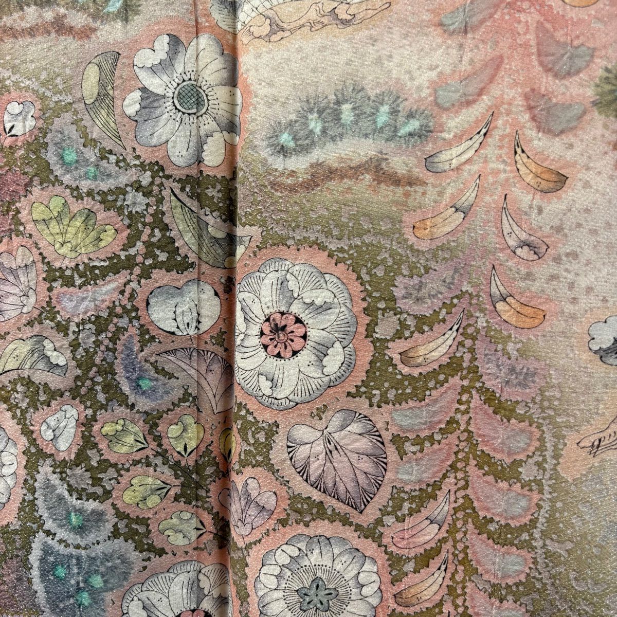 他の画像を見る 【在庫一掃】 【美品】 付下げ 身丈165.5cm 裄丈68cm L 袷 人間国宝 福田喜重 鈴乃屋 落款あり 霞 箔散らし 金彩 ぼかし 薄オレンジ 正絹 逸品 一つ紋 ¥ 12,540 税込