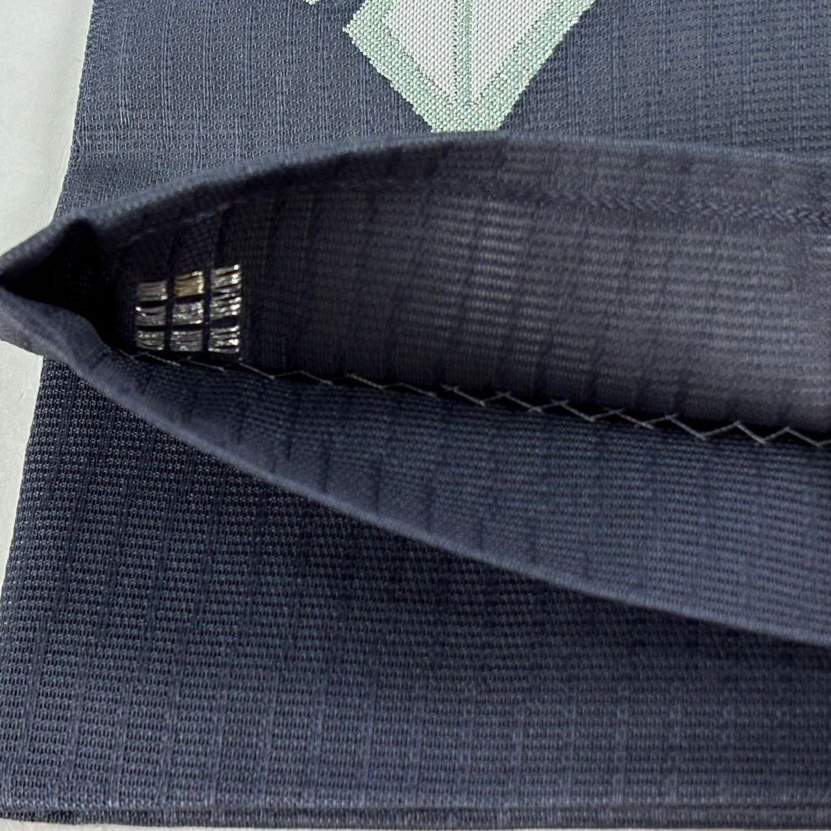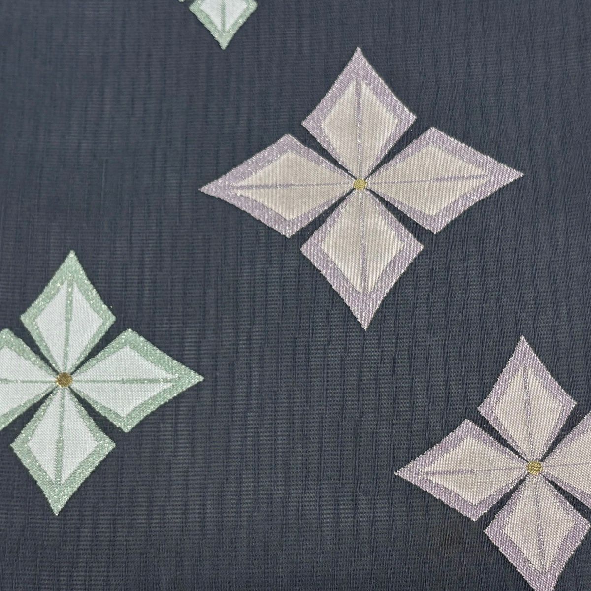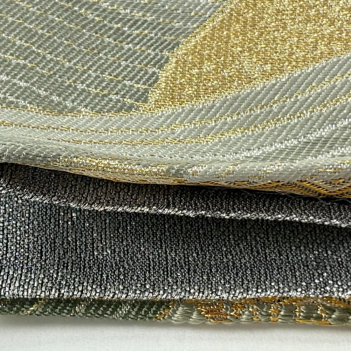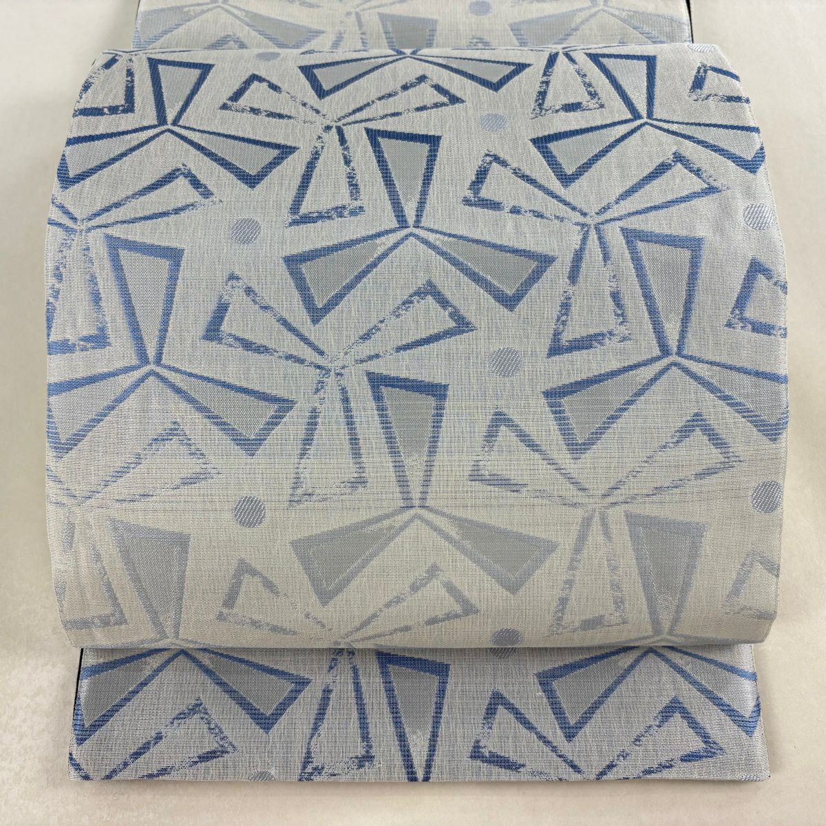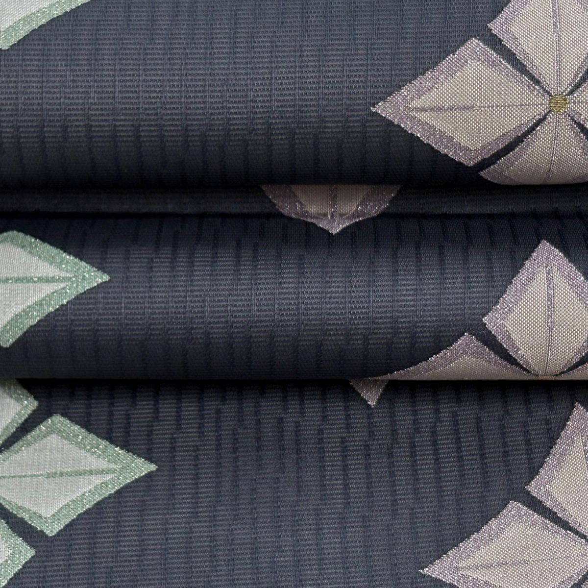【美品】 袋帯 逸品 夏帯 花菱 金糸 箔 青灰色 六通 正絹