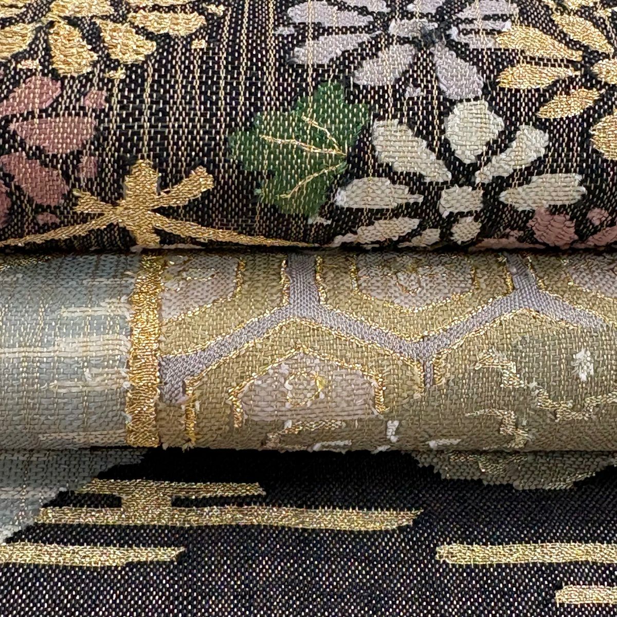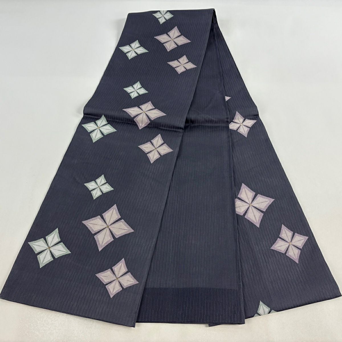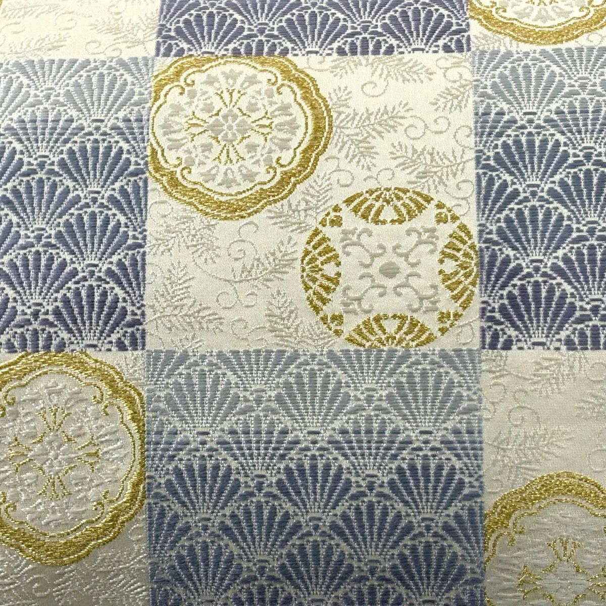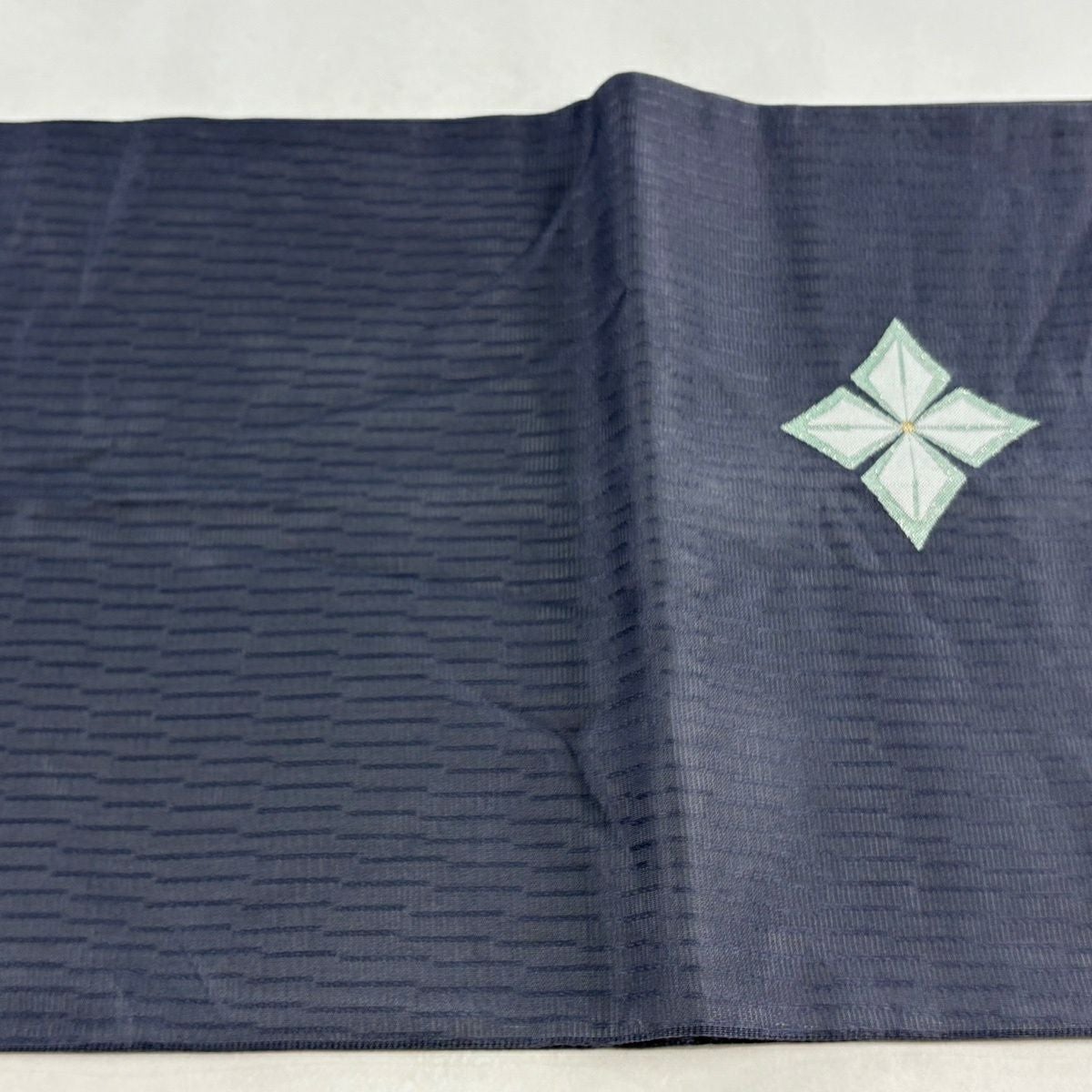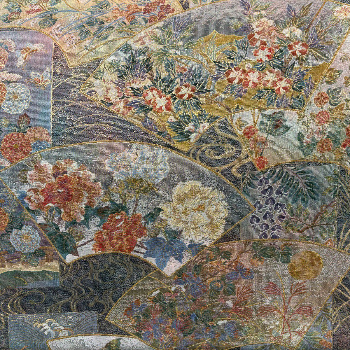 【美品】 袋帯 逸品 夏帯 花菱 金糸 箔 青灰色 六通 正絹