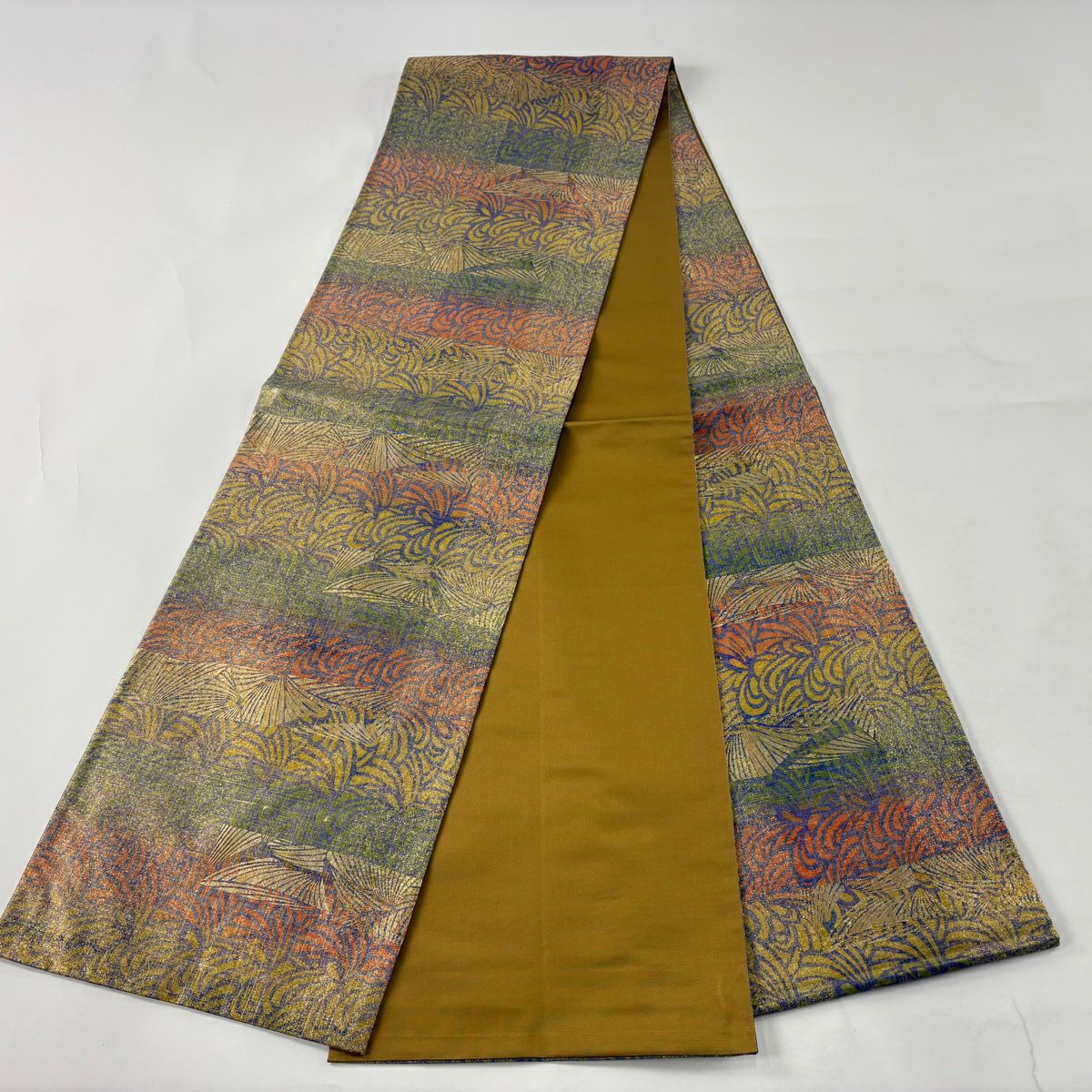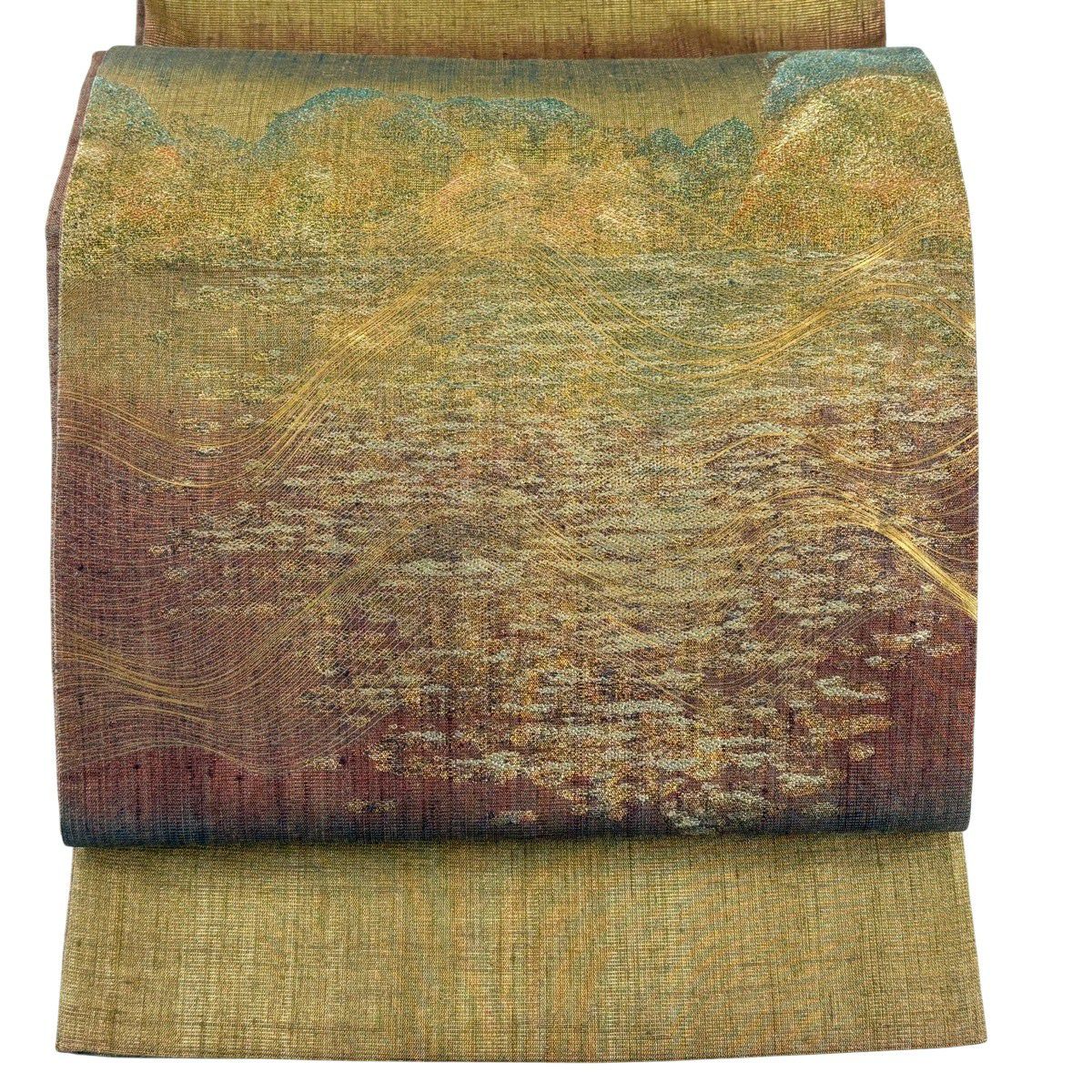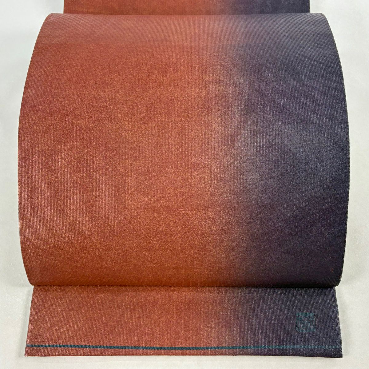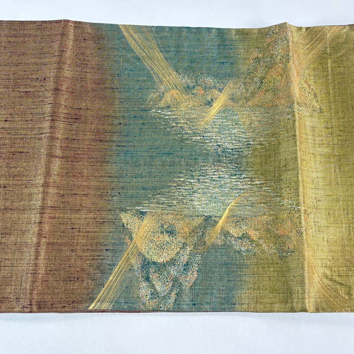 袋帯 逸品 大脇一心 落款あり ぼかし柄 箔 朱色 六通 正絹