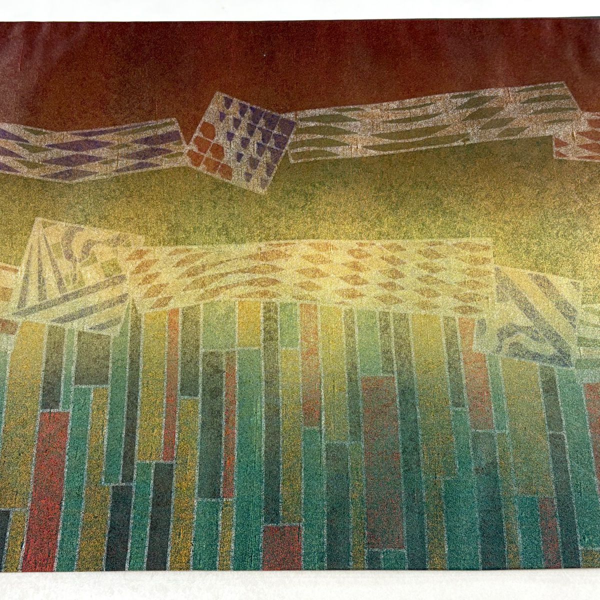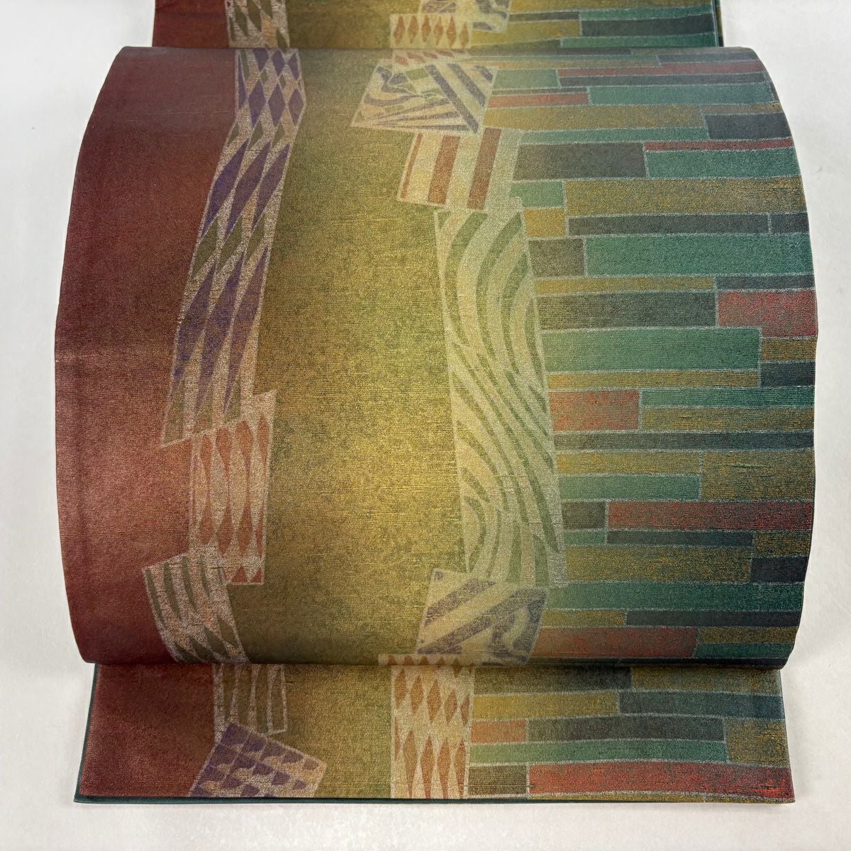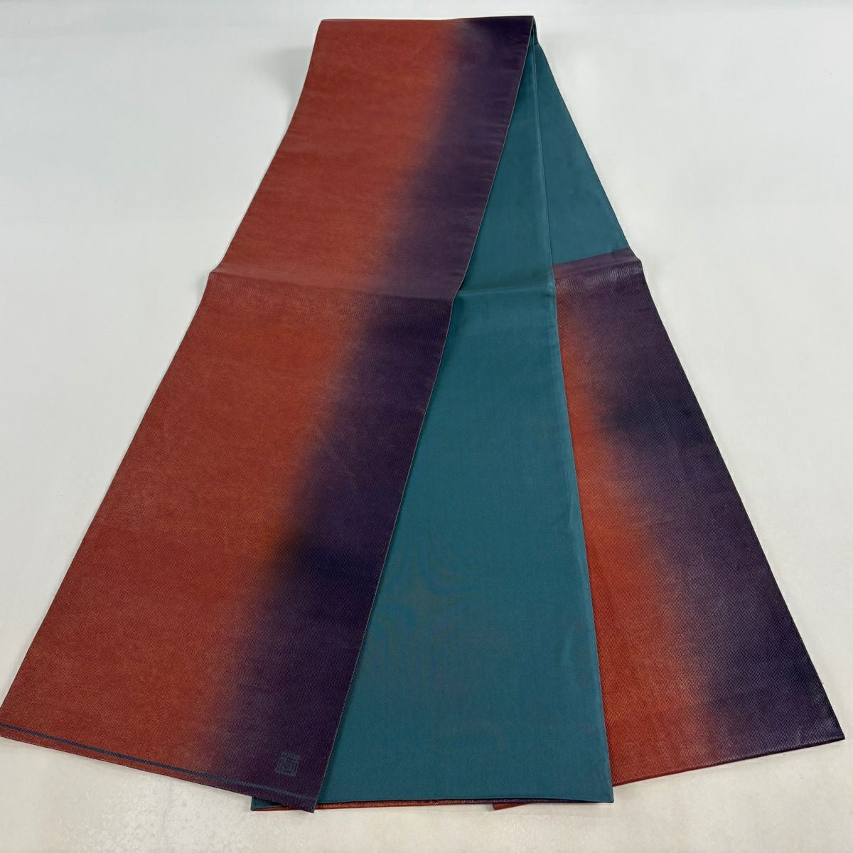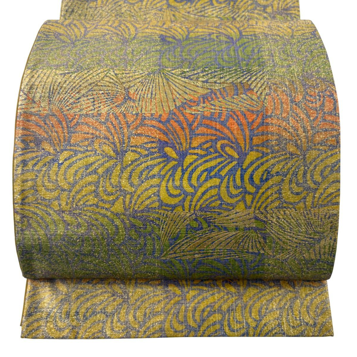 袋帯 逸品 大脇一心 落款あり ぼかし柄 箔 朱色 六通 正絹