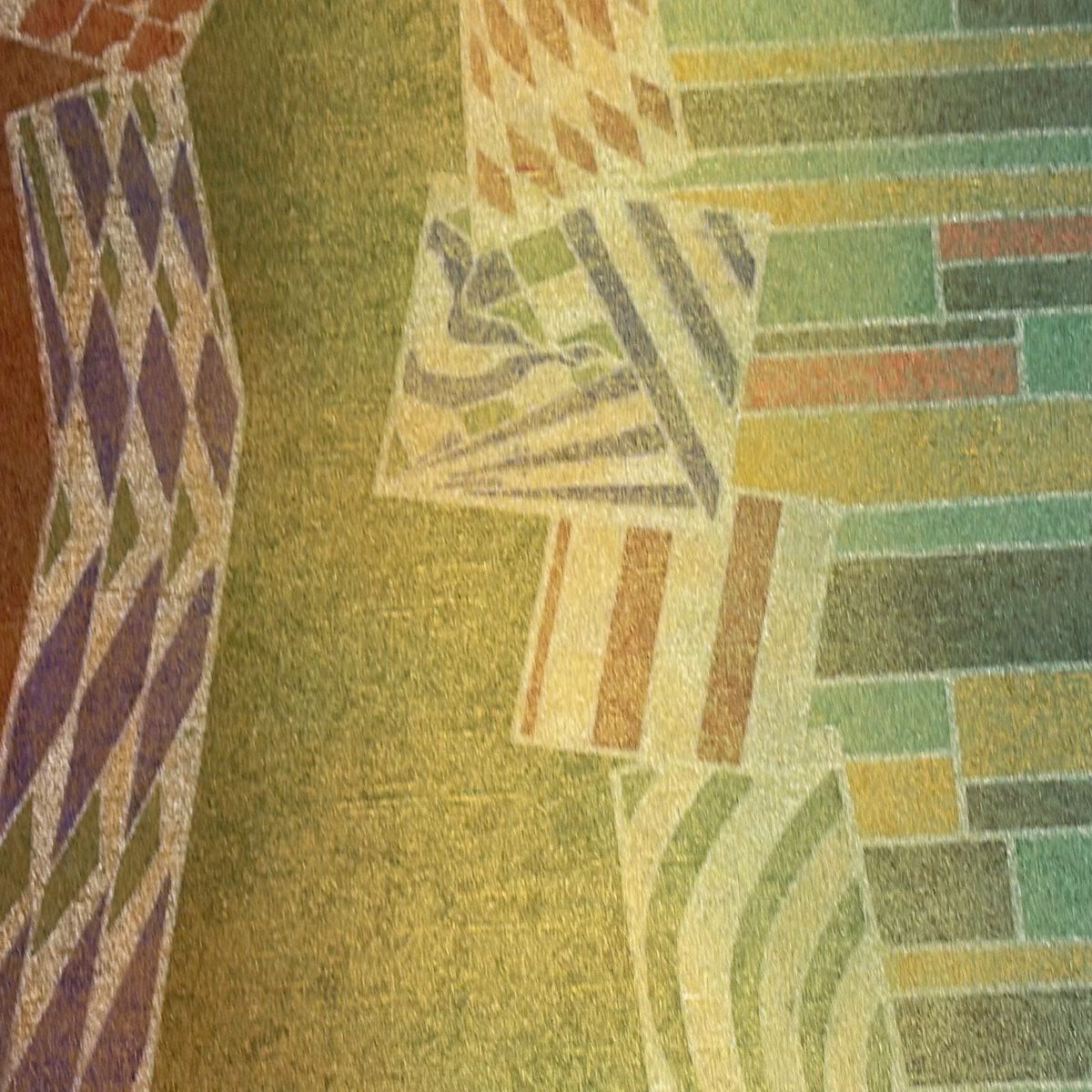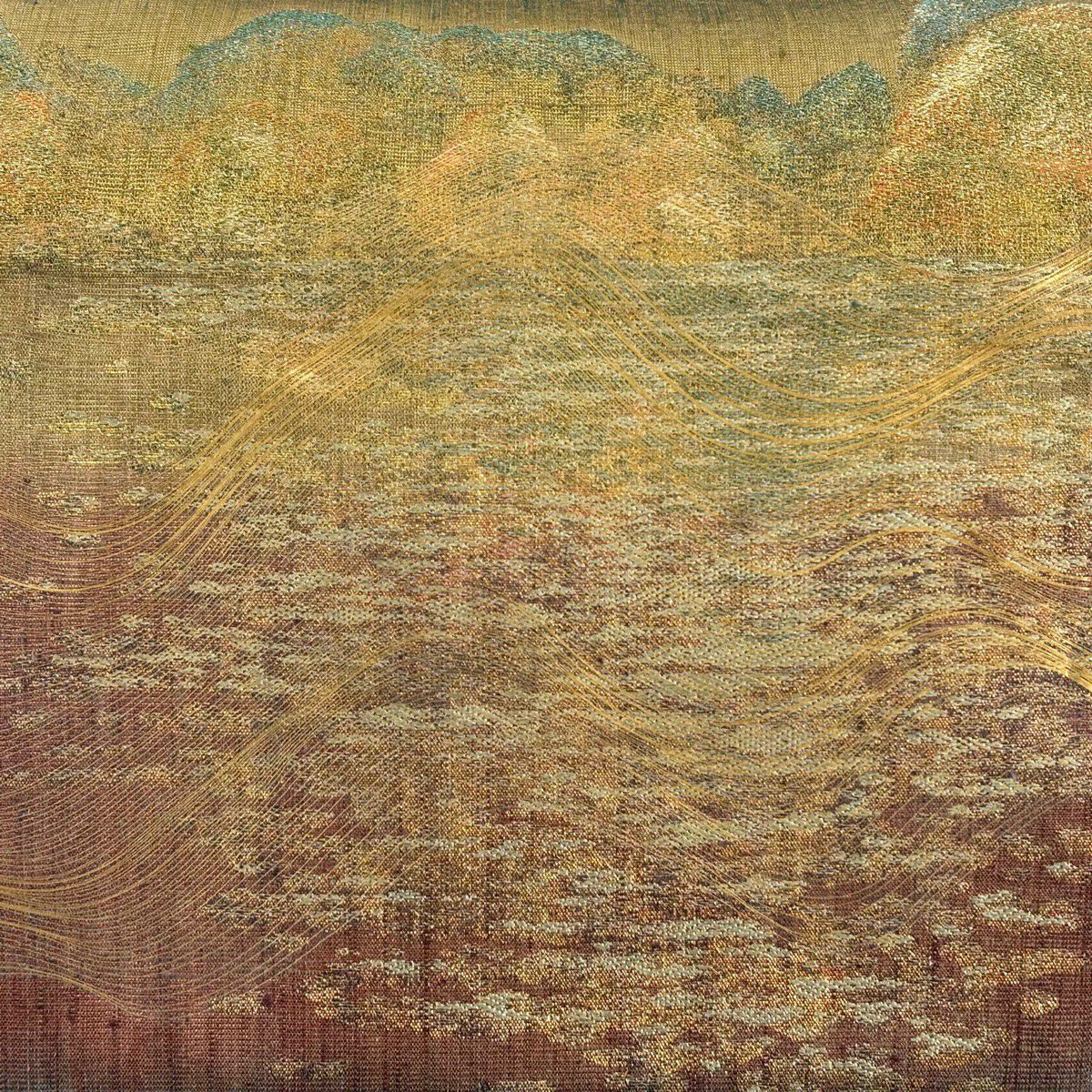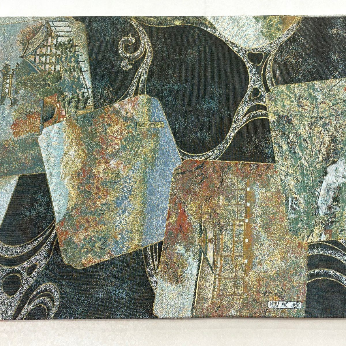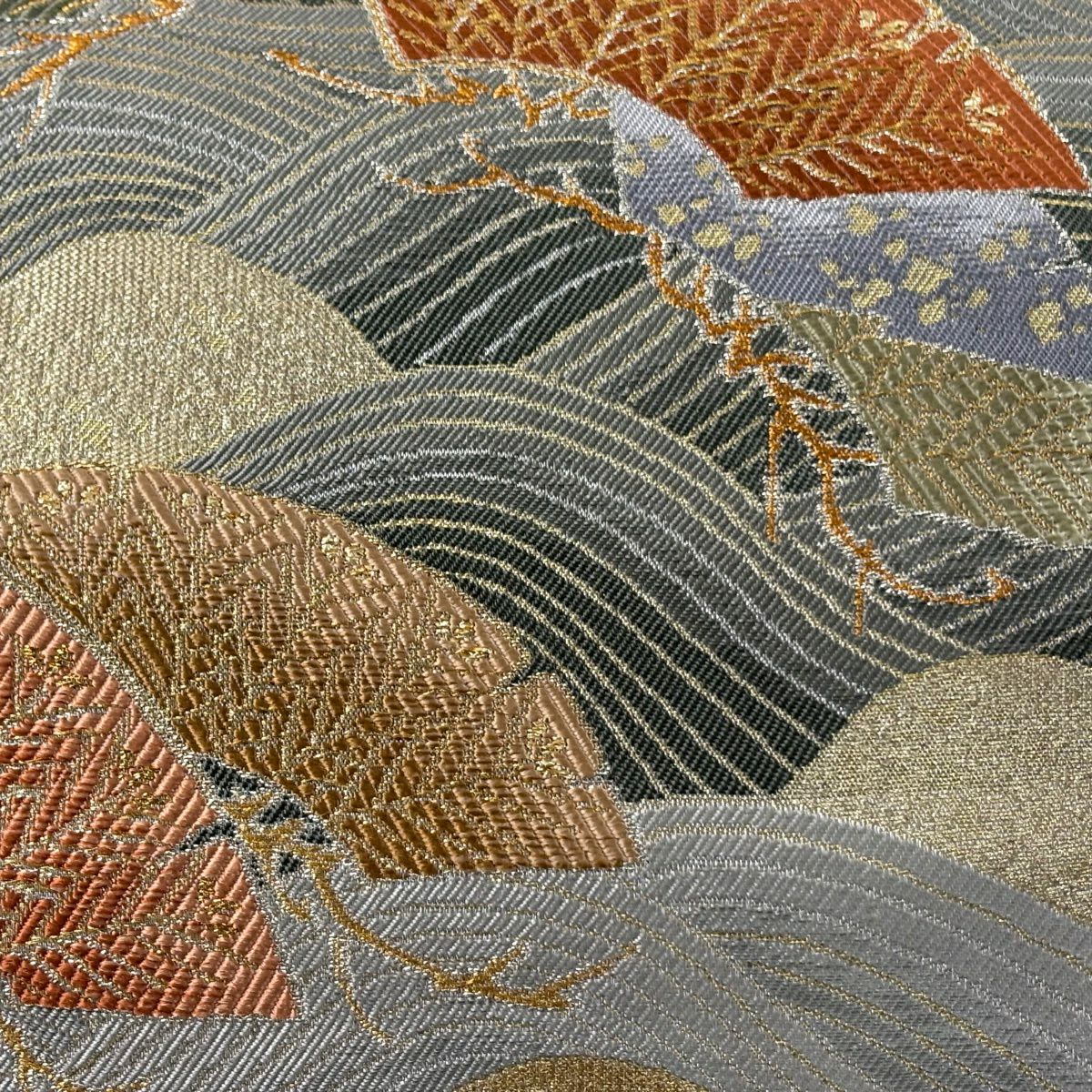 袋帯 逸品 大脇一心 落款あり ぼかし柄 箔 朱色 六通 正絹