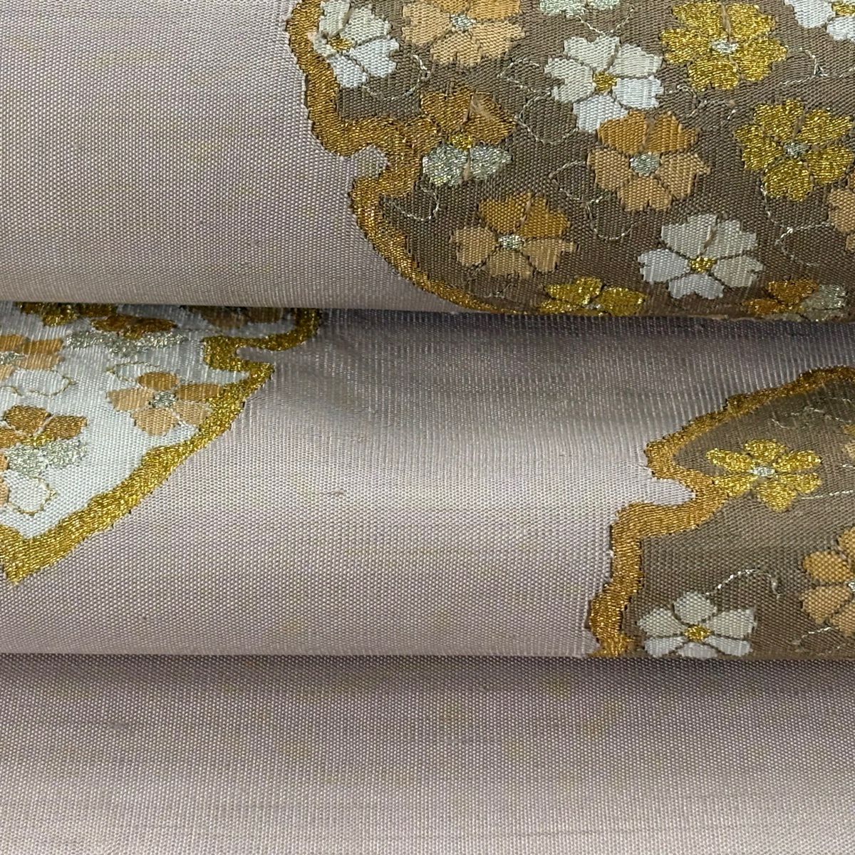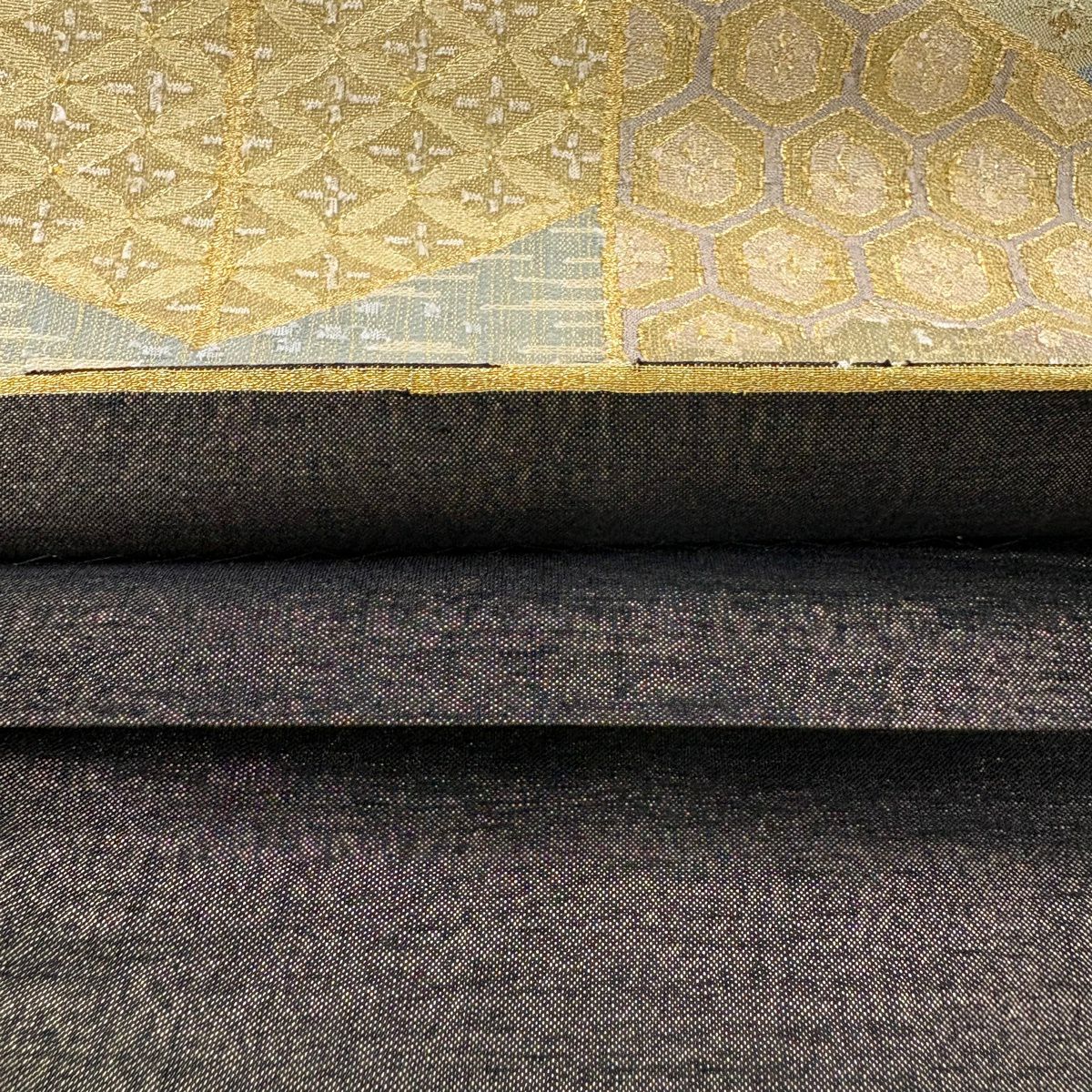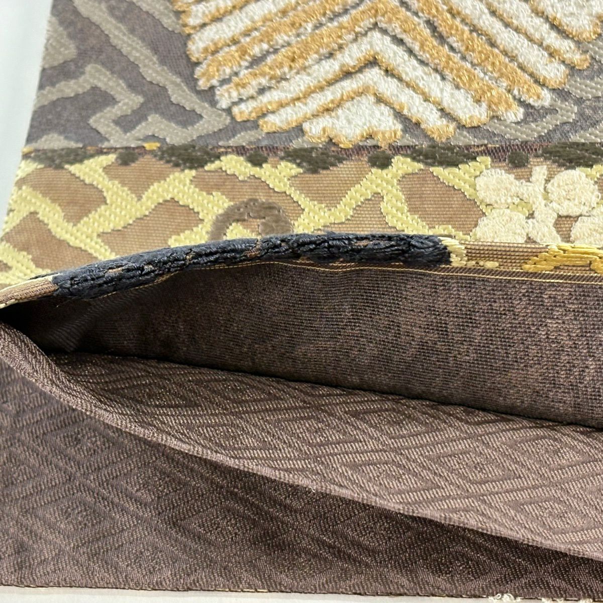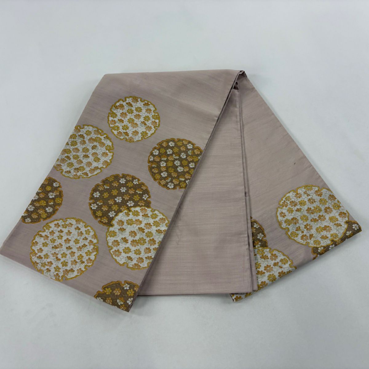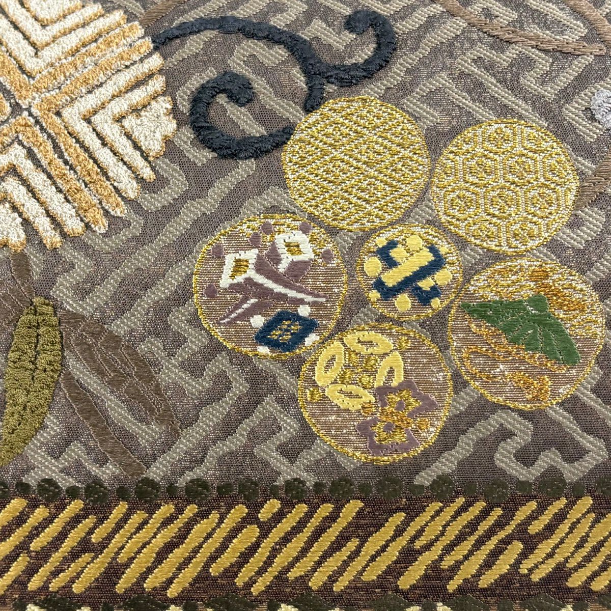 【美品】 袋帯 逸品 幾何学模様 金糸 薄茶色 お太鼓柄 正絹