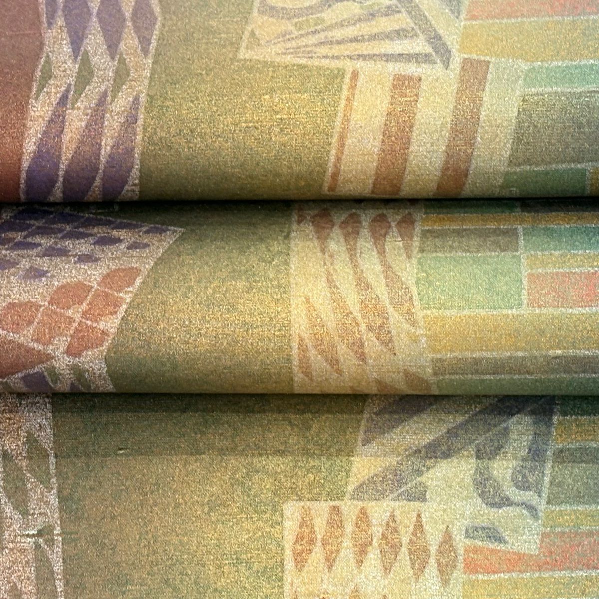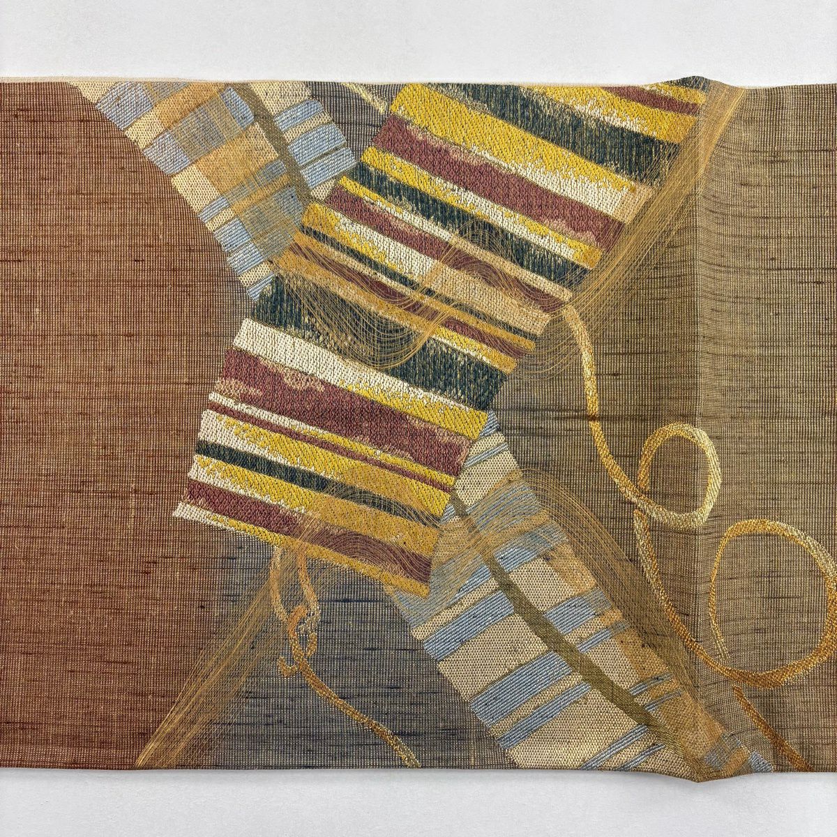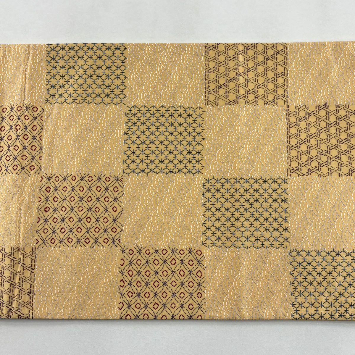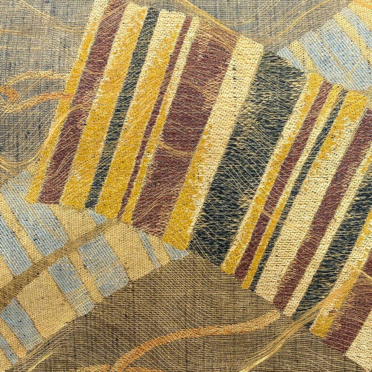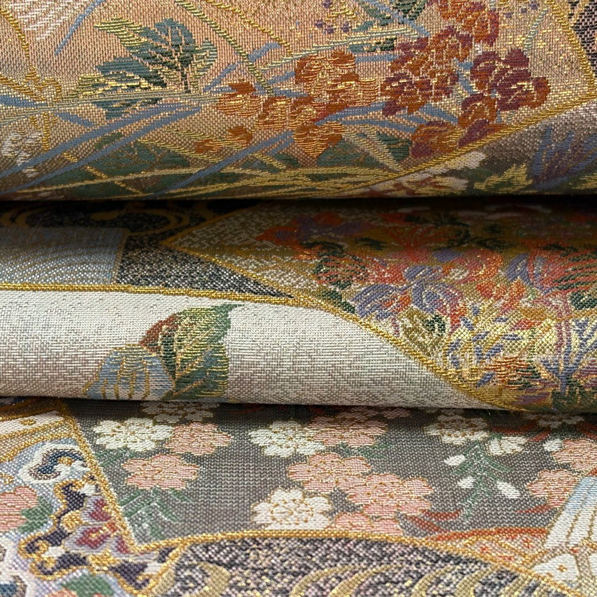 【美品】 袋帯 逸品 幾何学模様 金糸 薄茶色 お太鼓柄 正絹