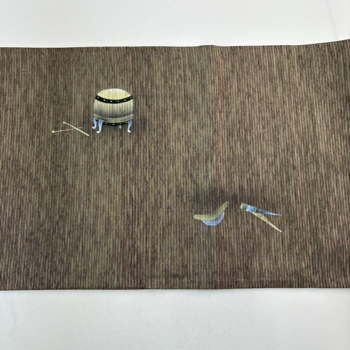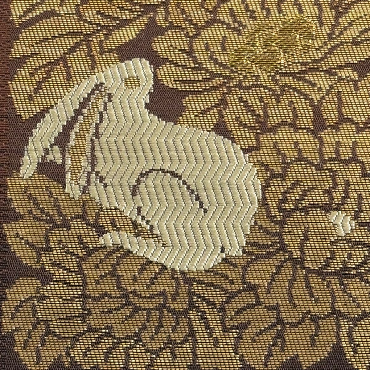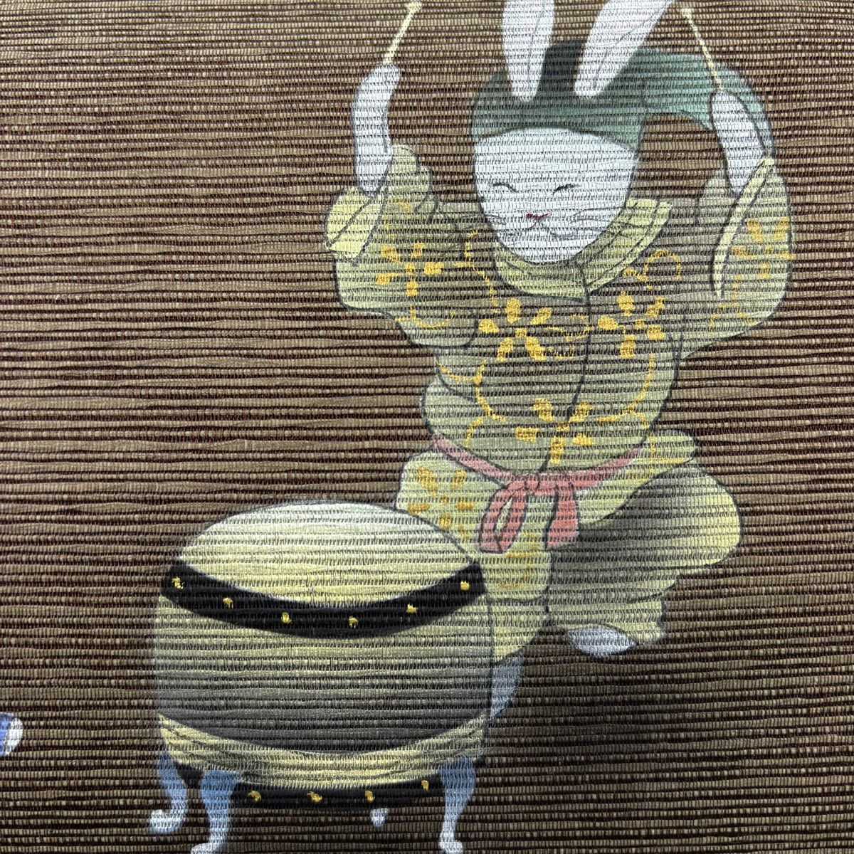【美品】 袋帯 逸品 うさぎ 太鼓 金彩 灰茶 お太鼓柄 正絹