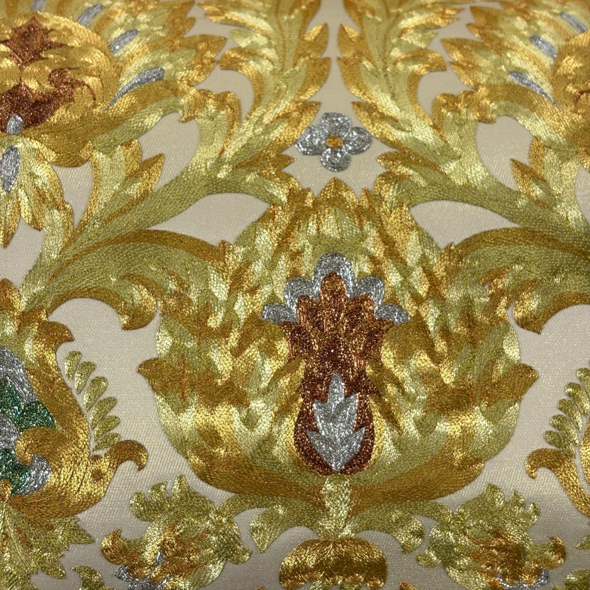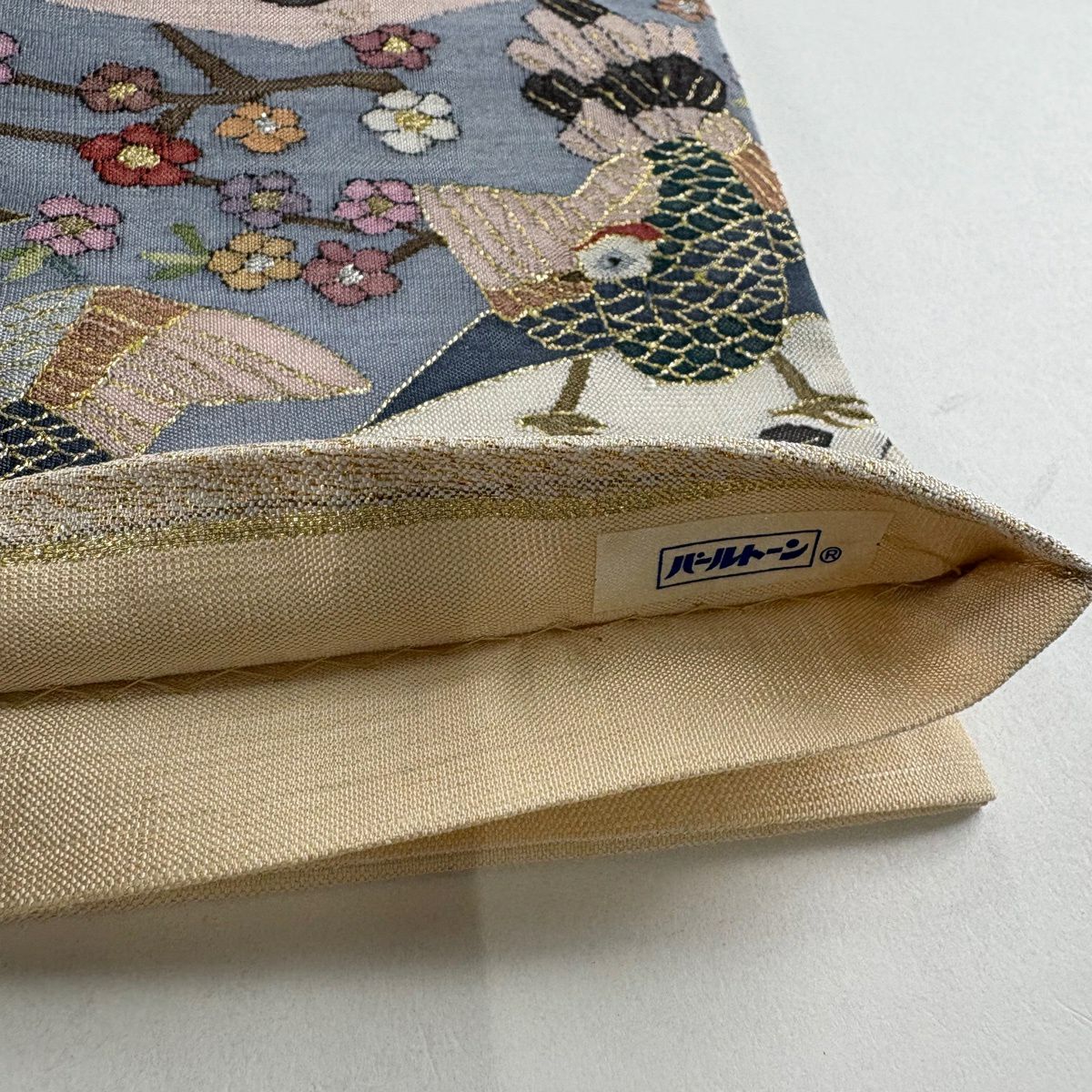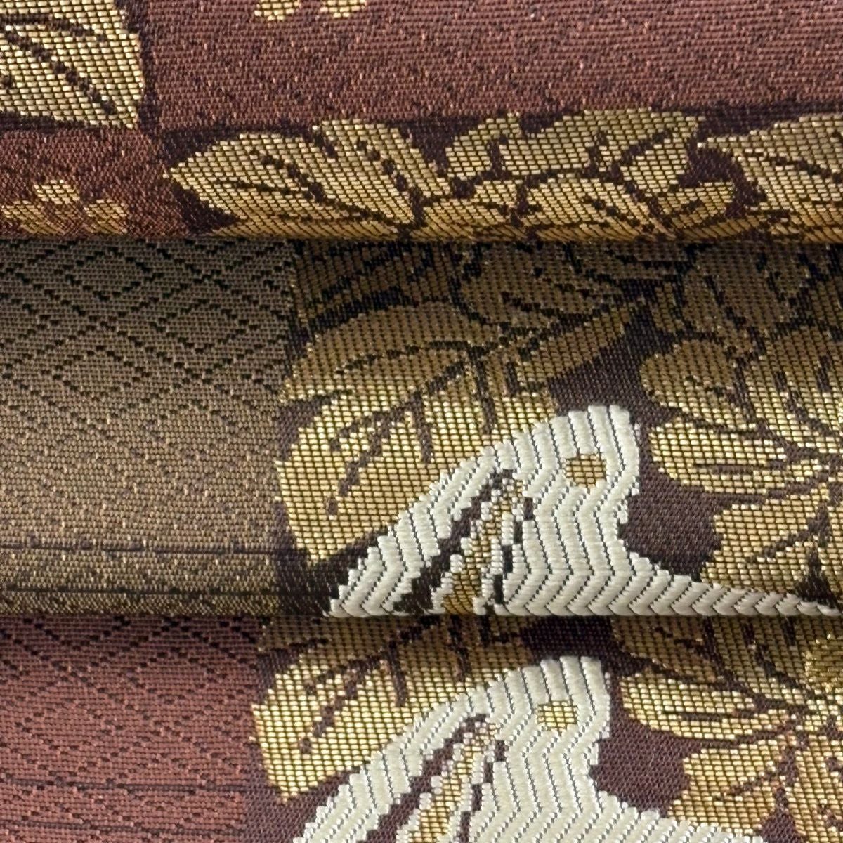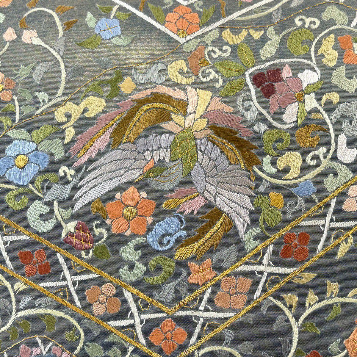 【美品】 袋帯 逸品 華文 花鳥 刺繍 金銀糸 金色 六通 正絹