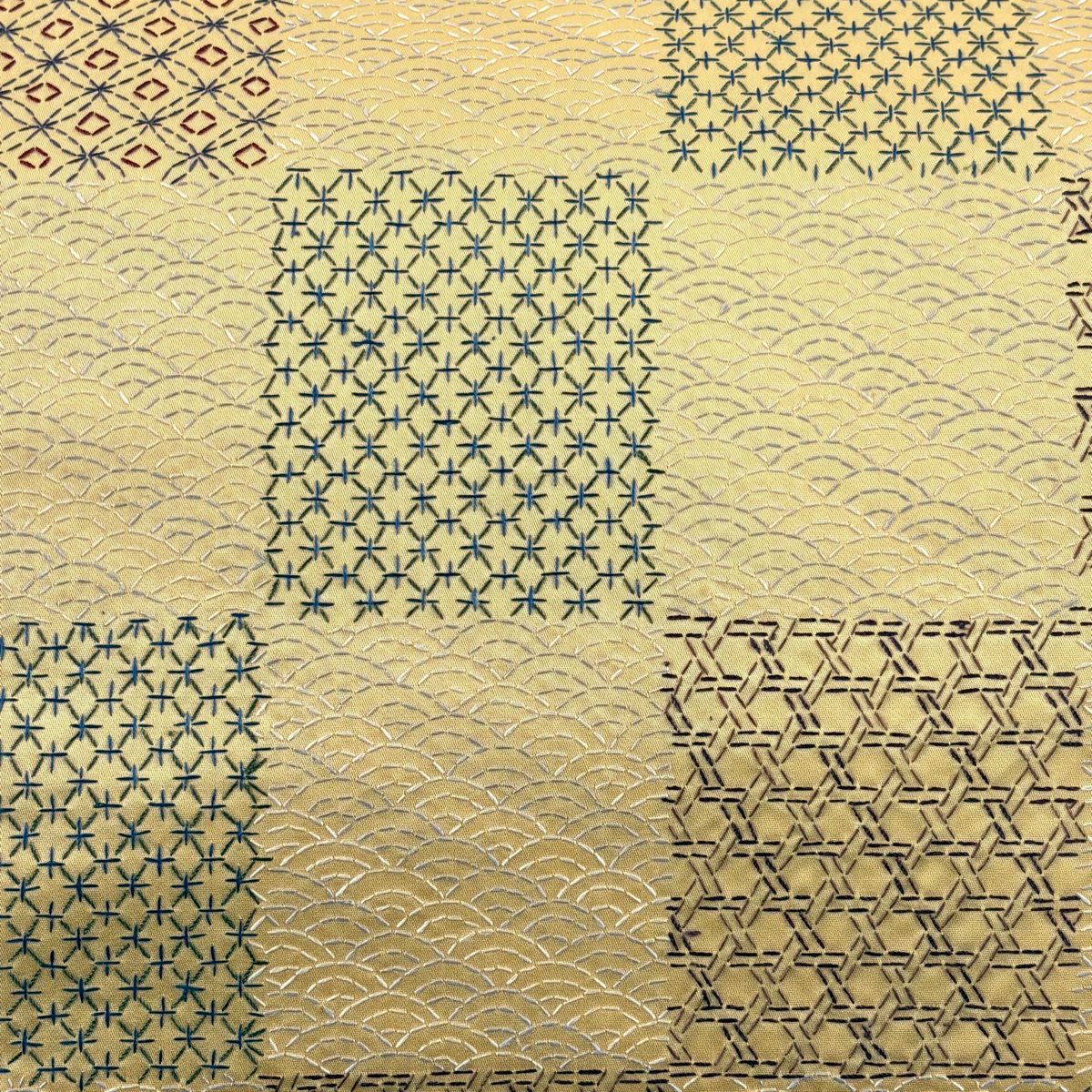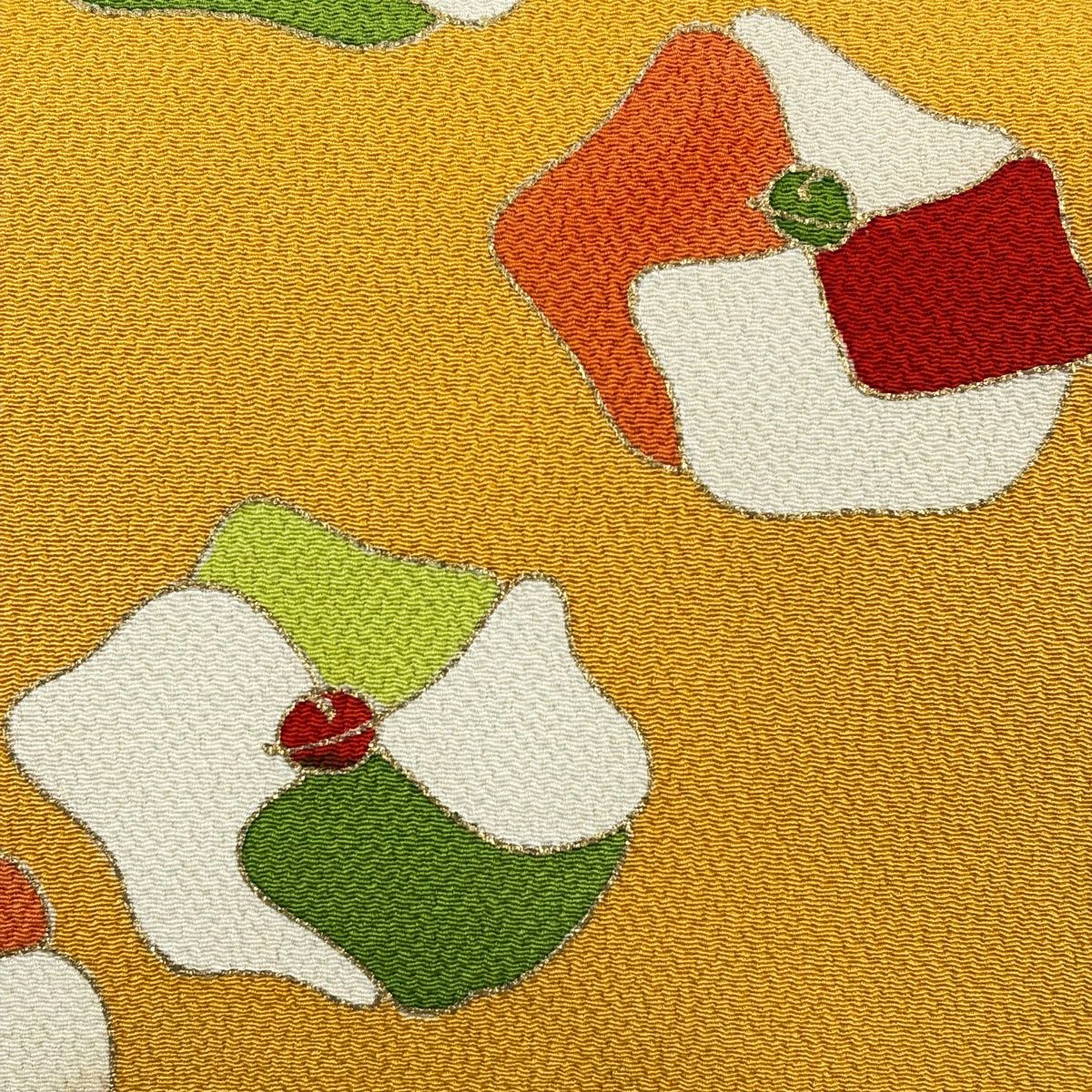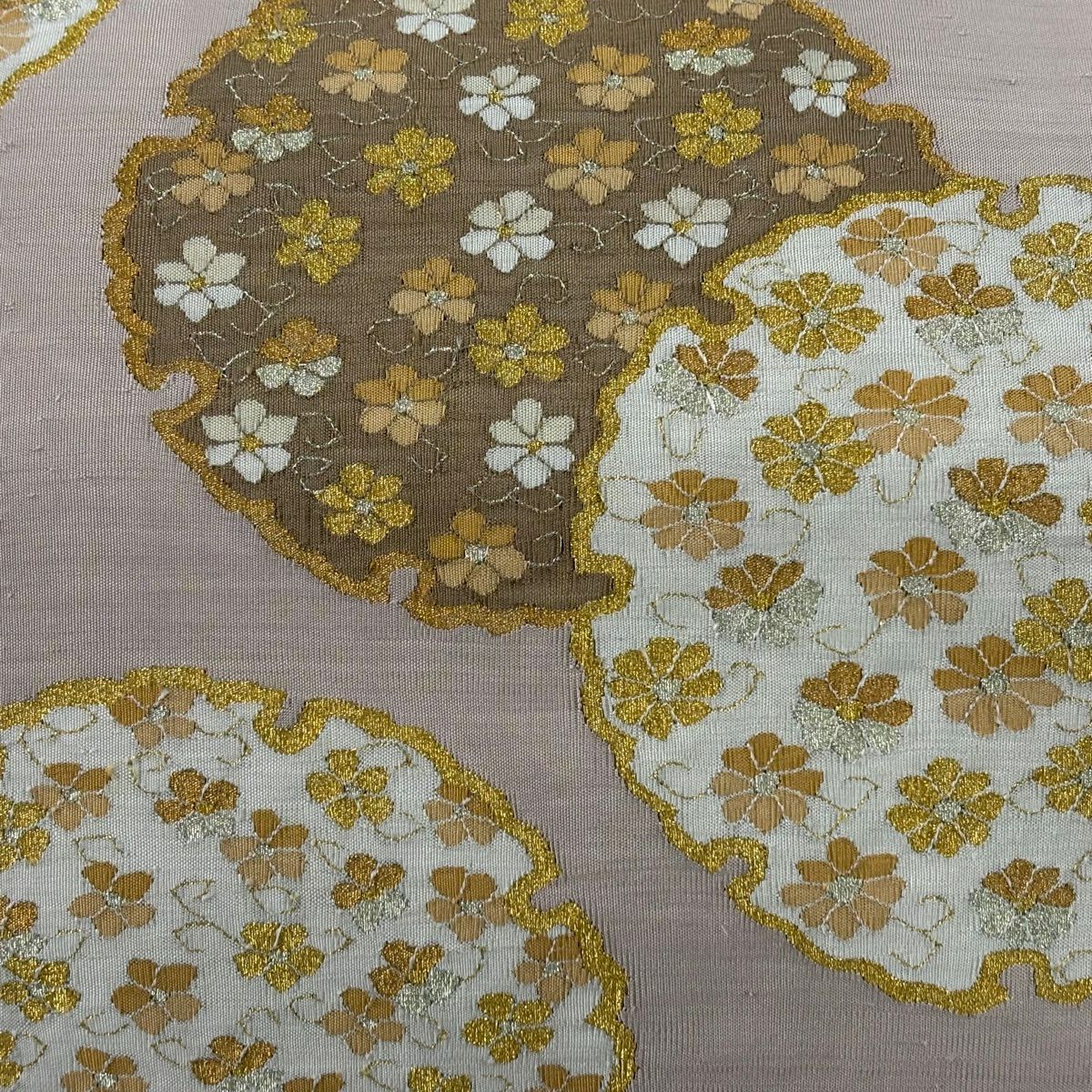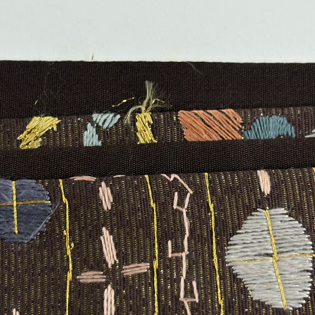 【美品】 袋帯 逸品 鏡裏文 草花 刺繍 金糸 金色 六通 正絹