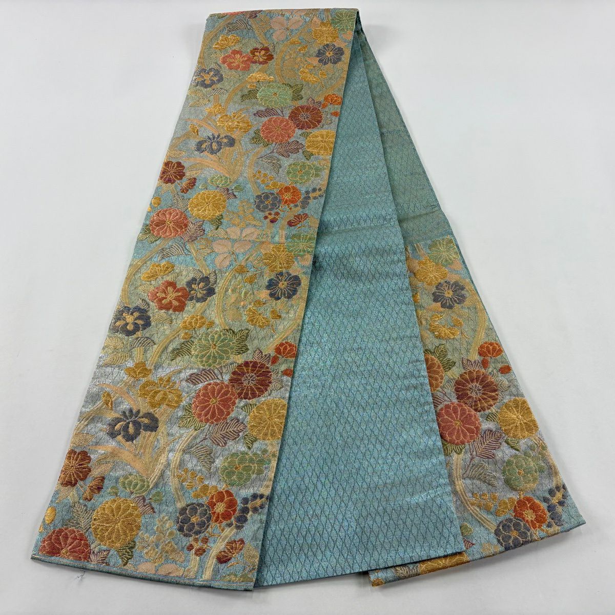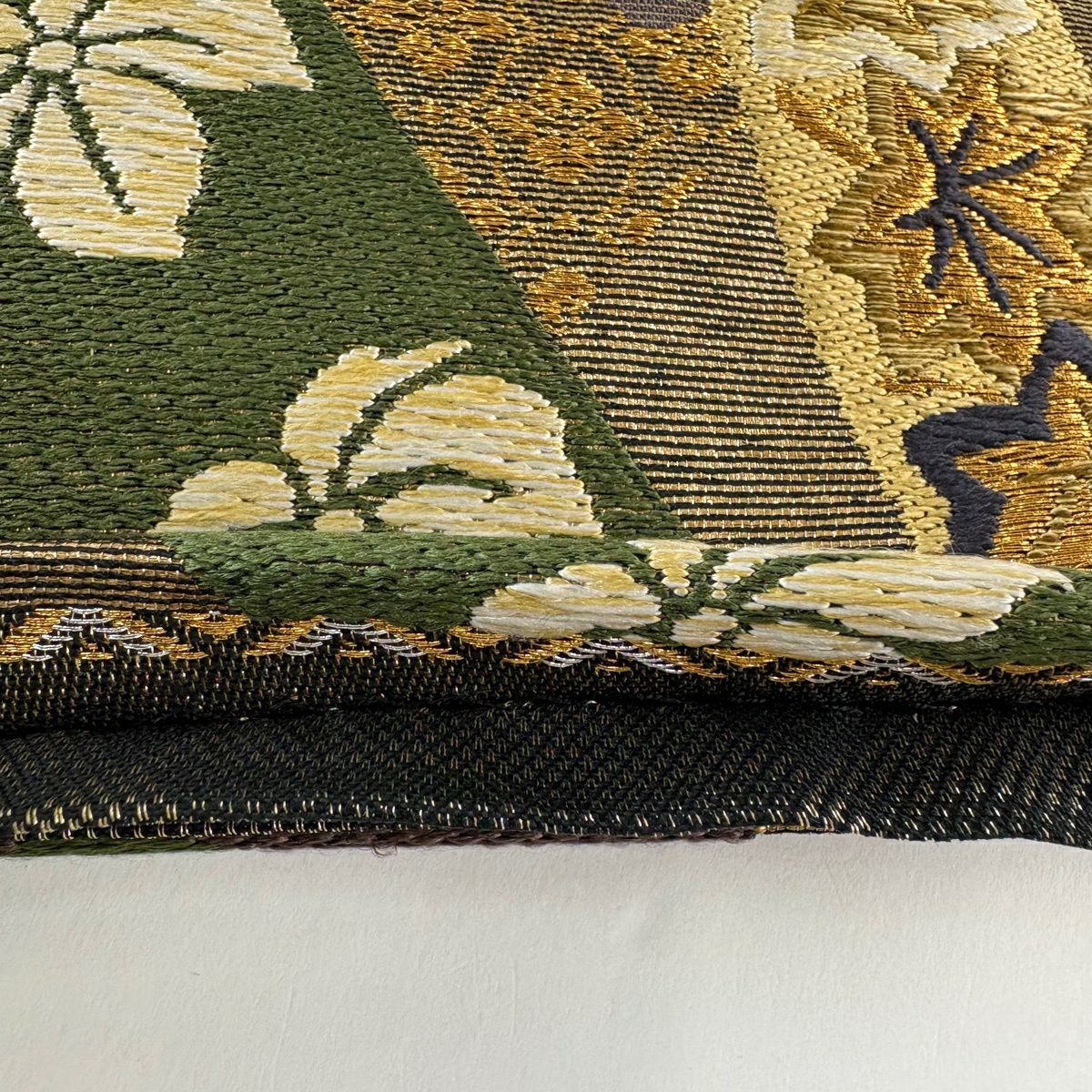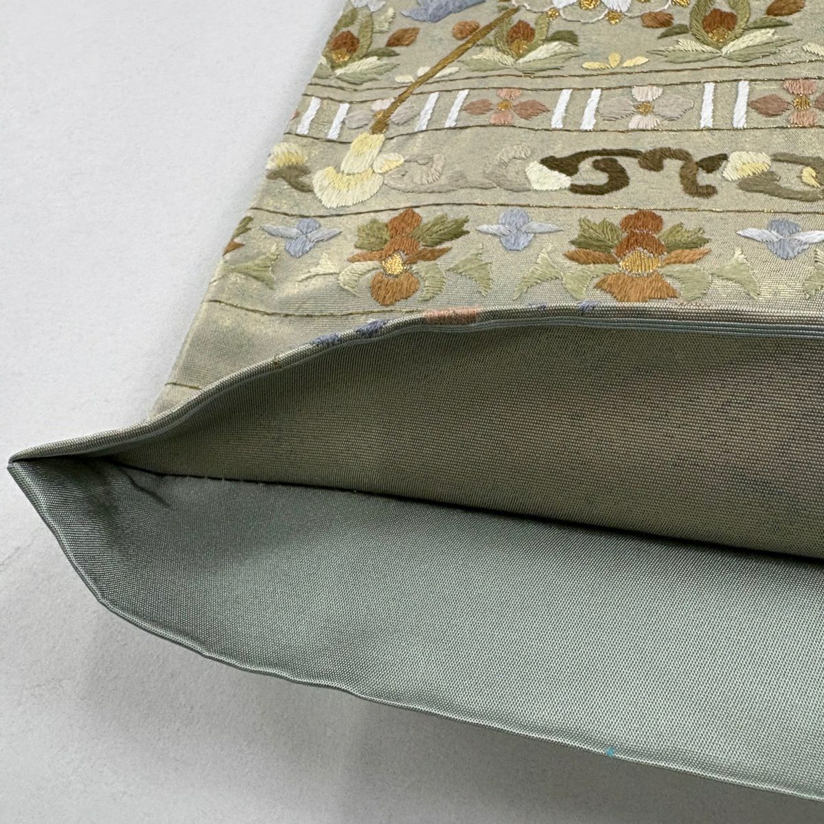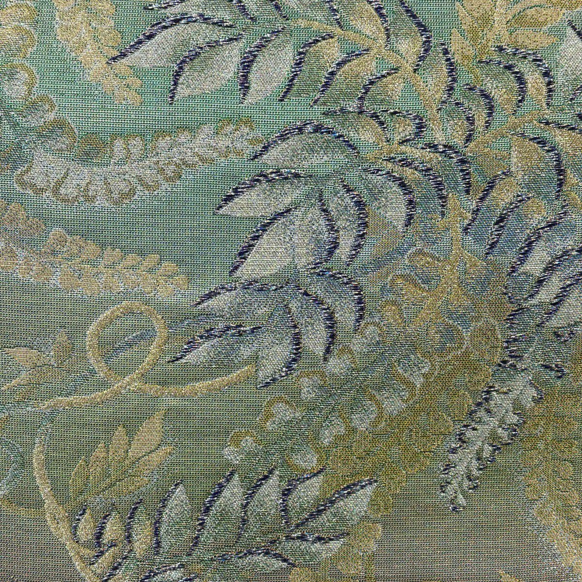 袋帯 逸品 蜀江文 草花 相良刺繍 金糸 薄緑 お太鼓柄 正絹