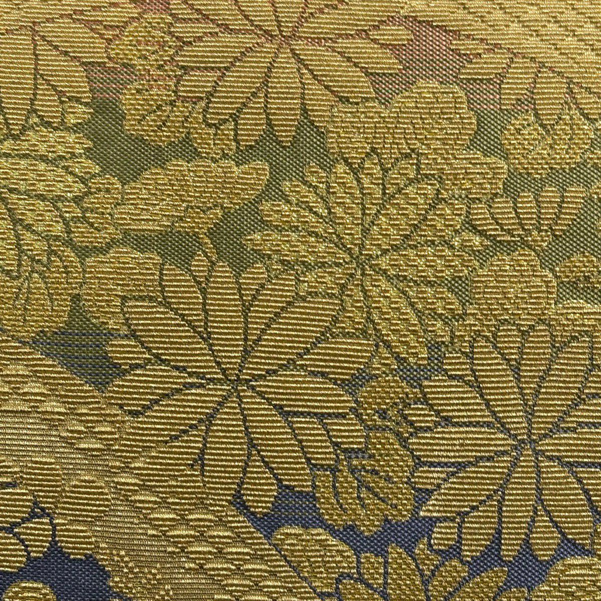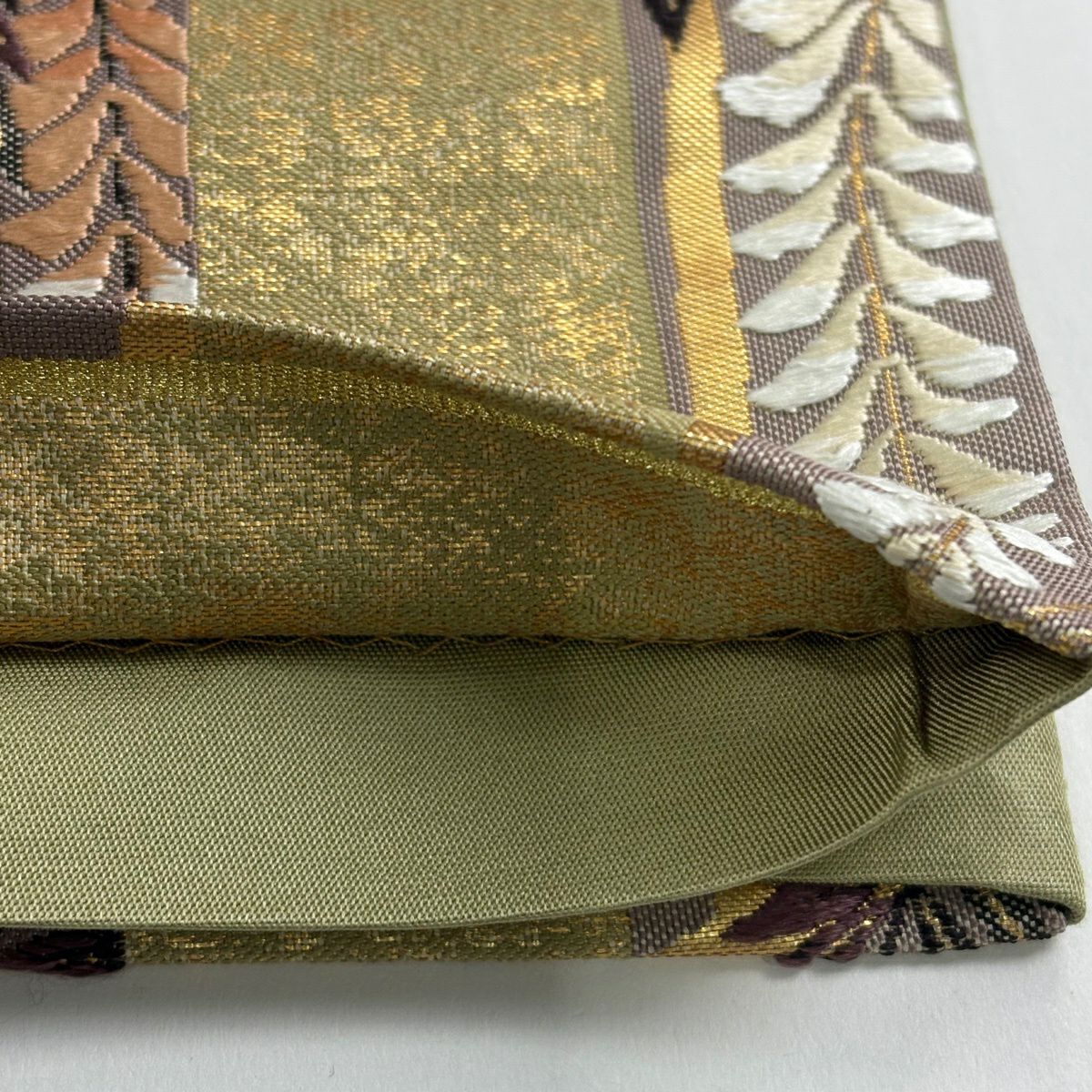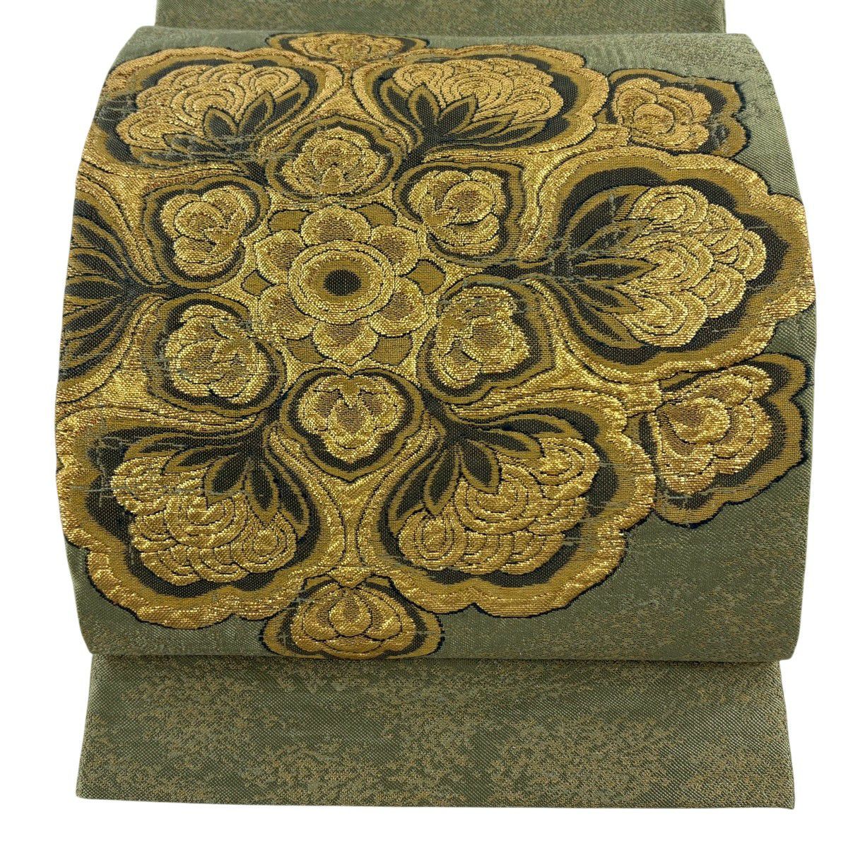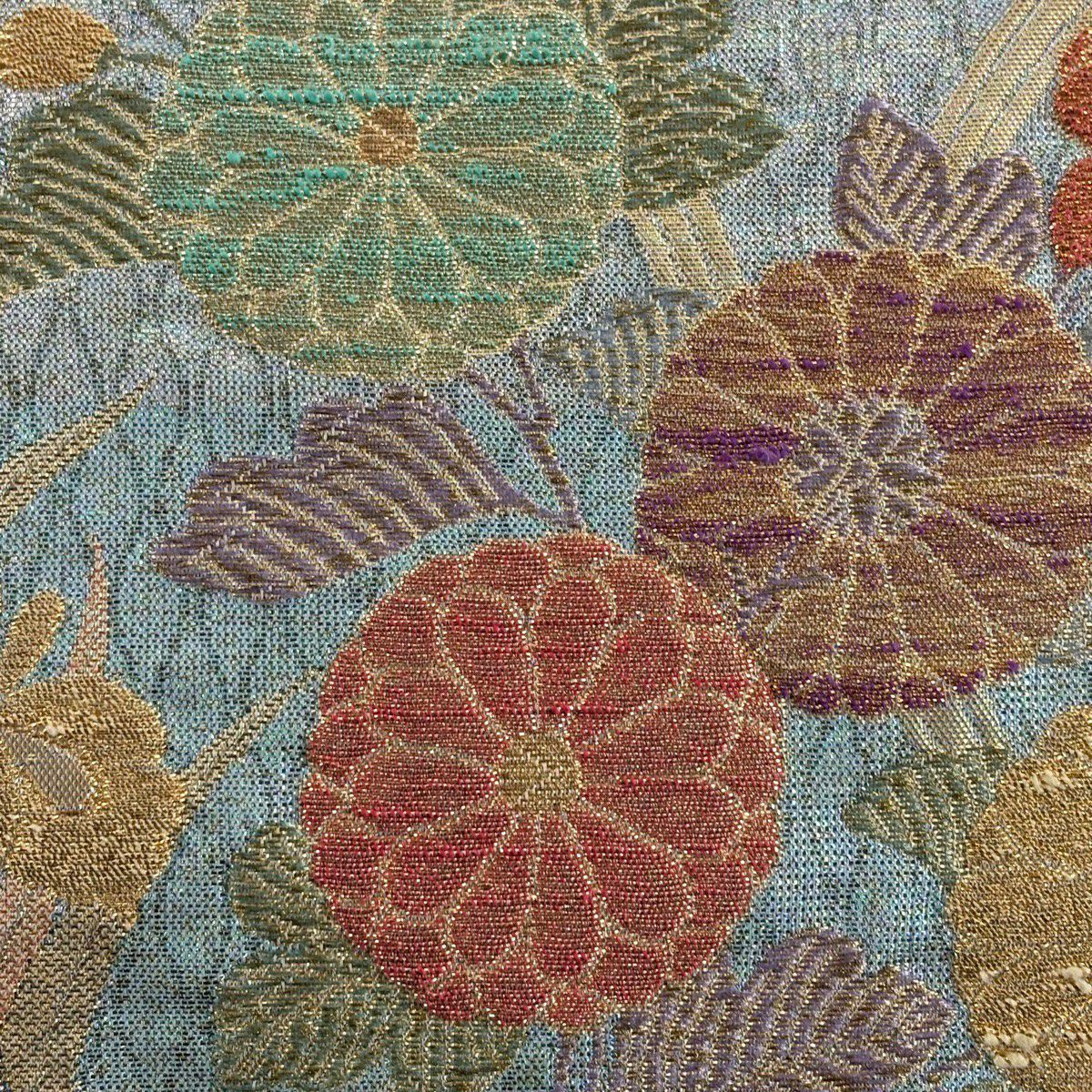 袋帯 逸品 蜀江文 草花 相良刺繍 金糸 薄緑 お太鼓柄 正絹