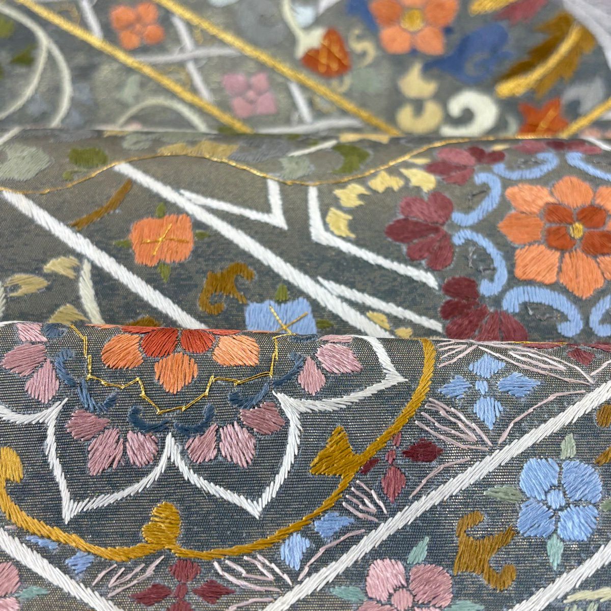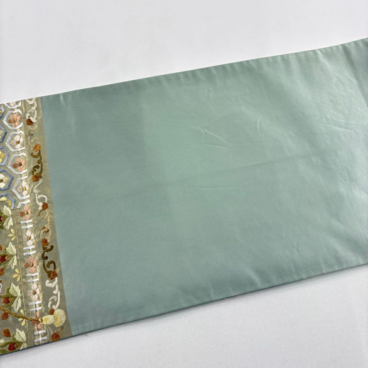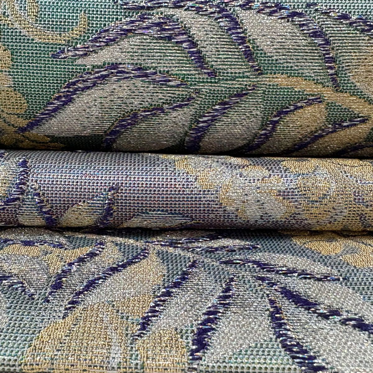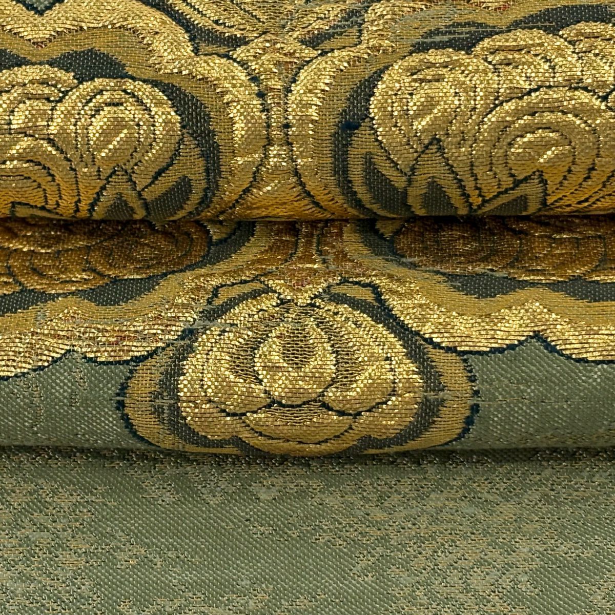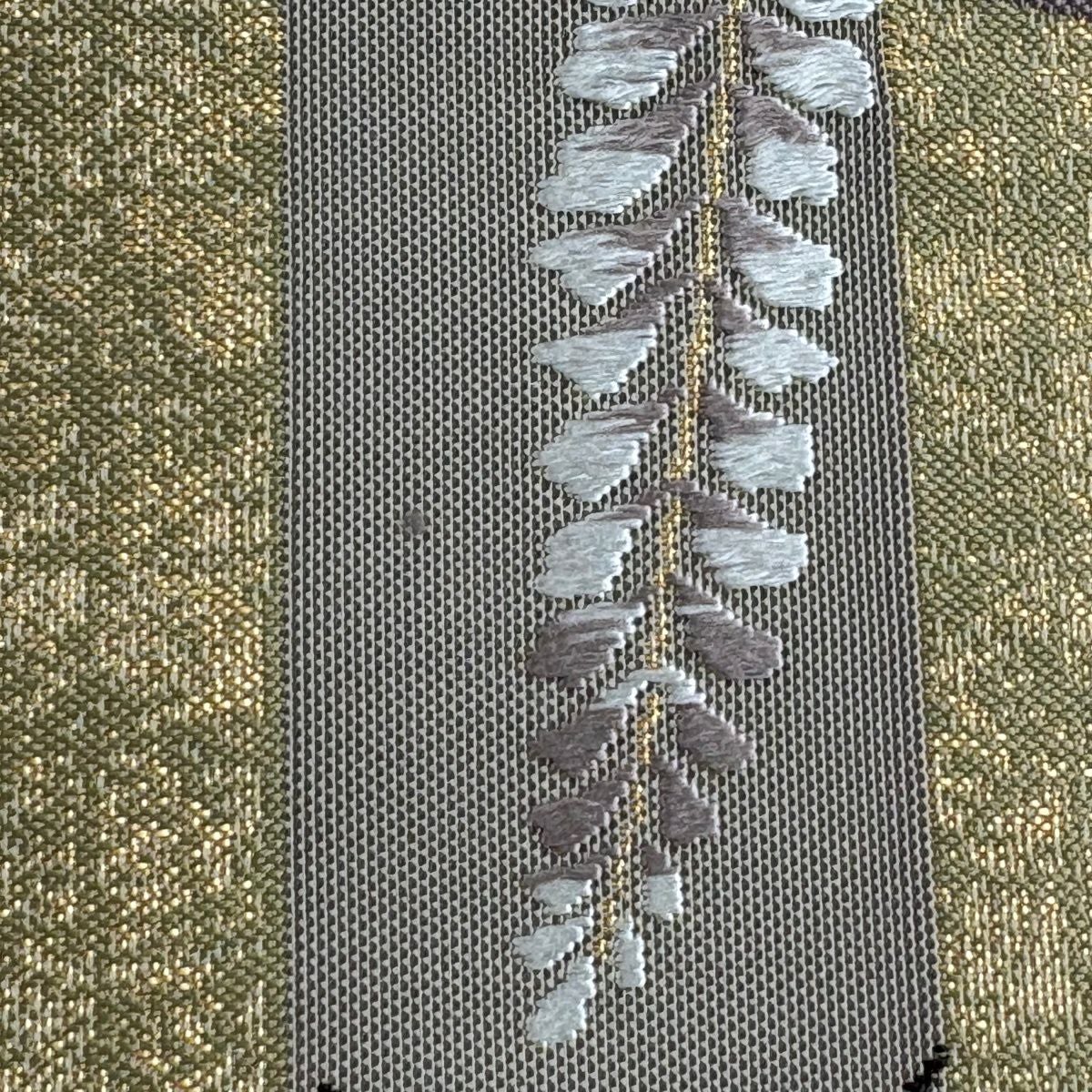 袋帯 逸品 蜀江文 草花 相良刺繍 金糸 薄緑 お太鼓柄 正絹