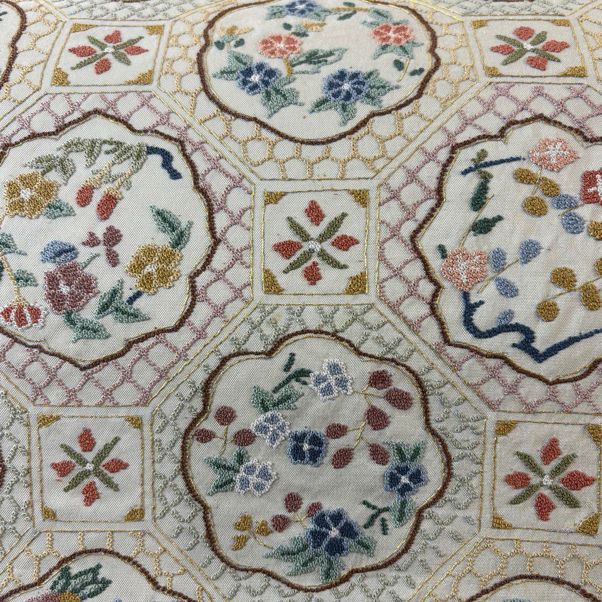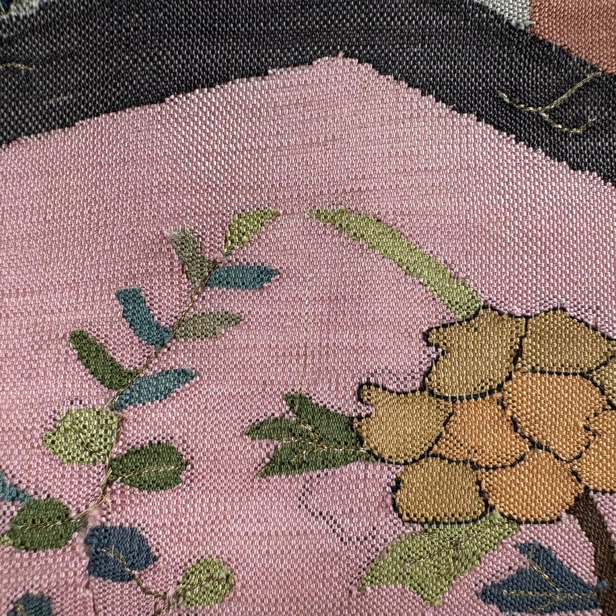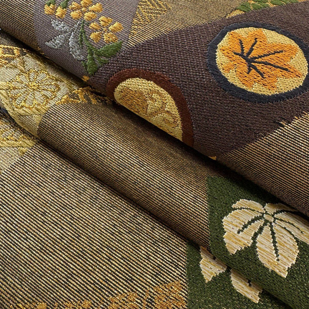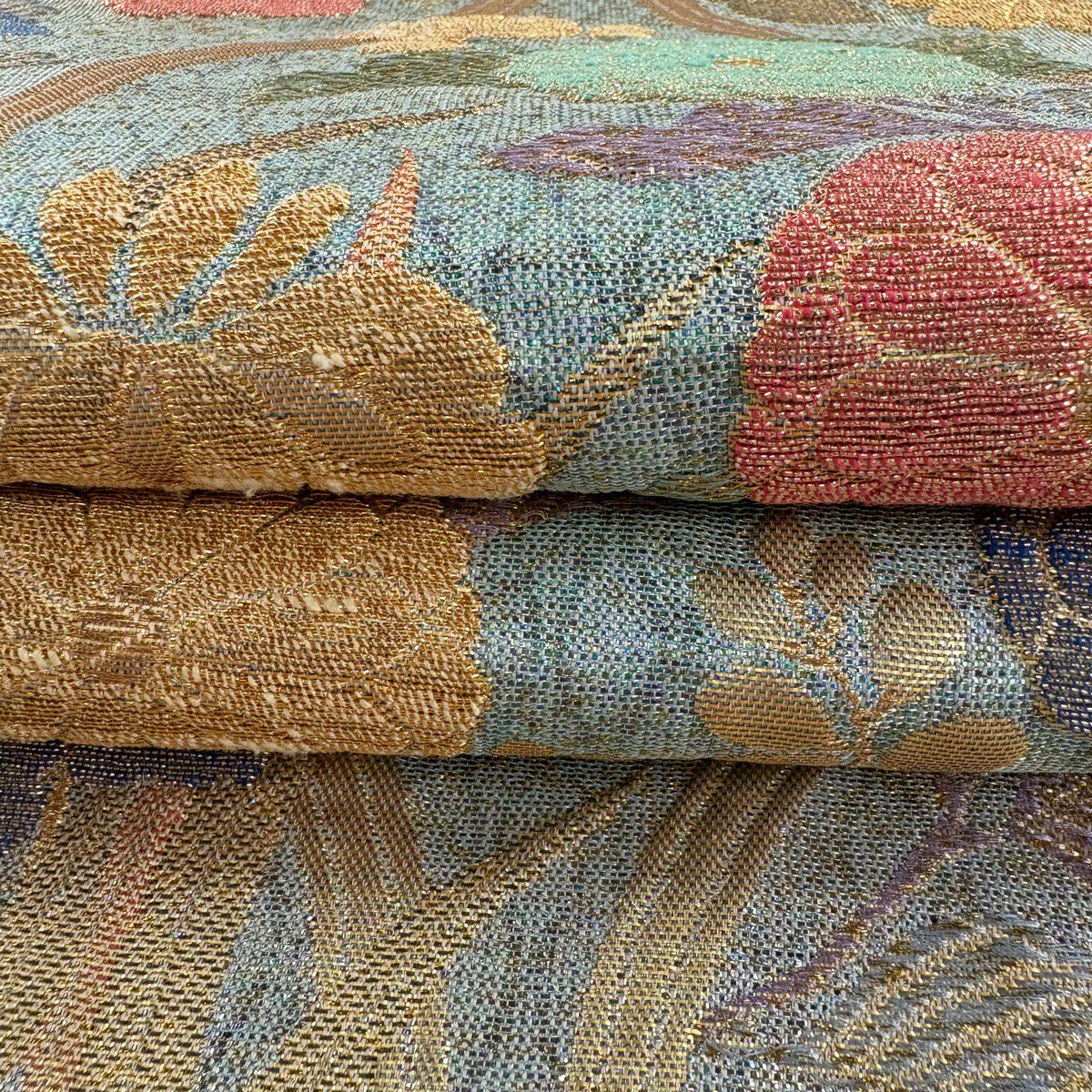袋帯 逸品 蜀江文 草花 相良刺繍 金糸 薄緑 お太鼓柄 正絹