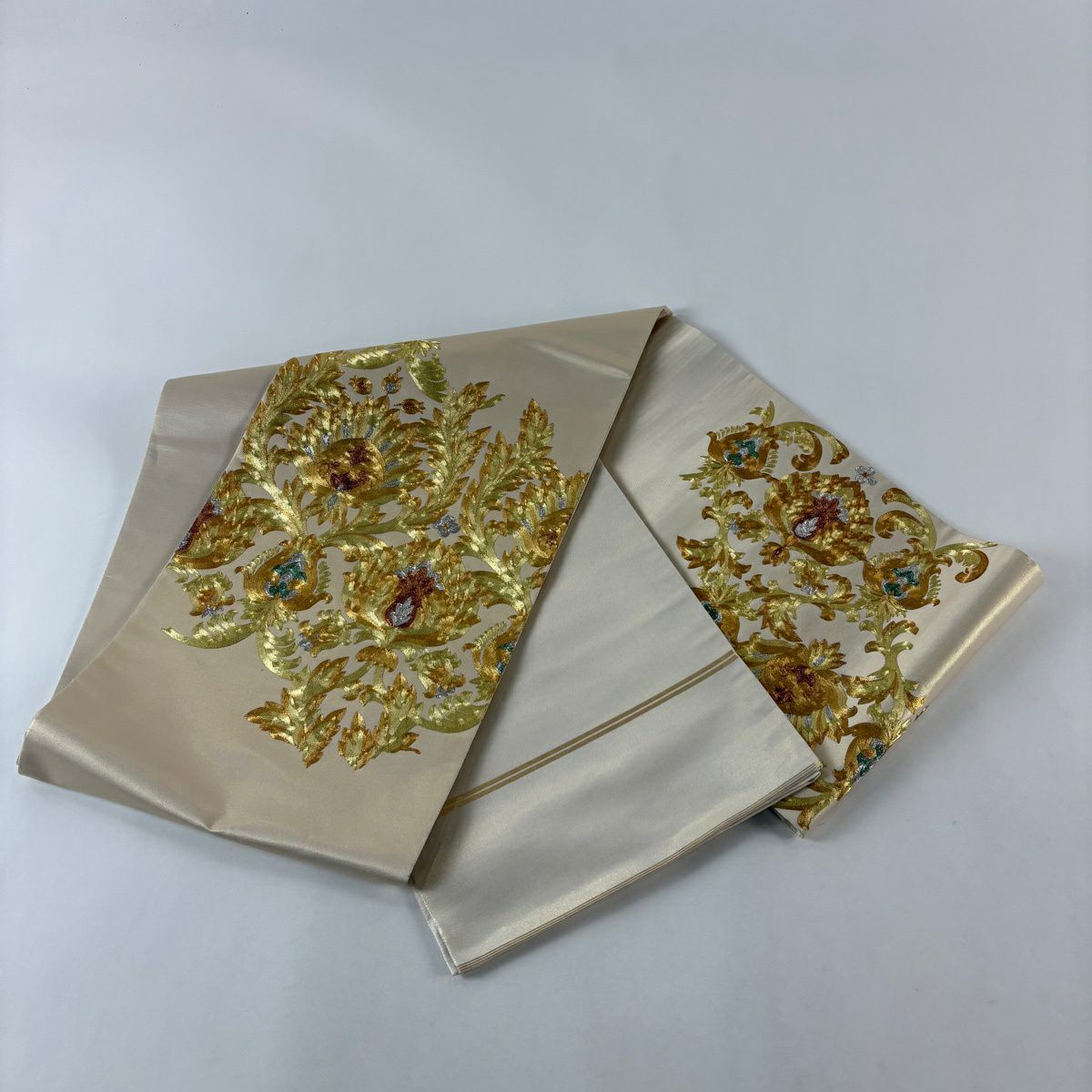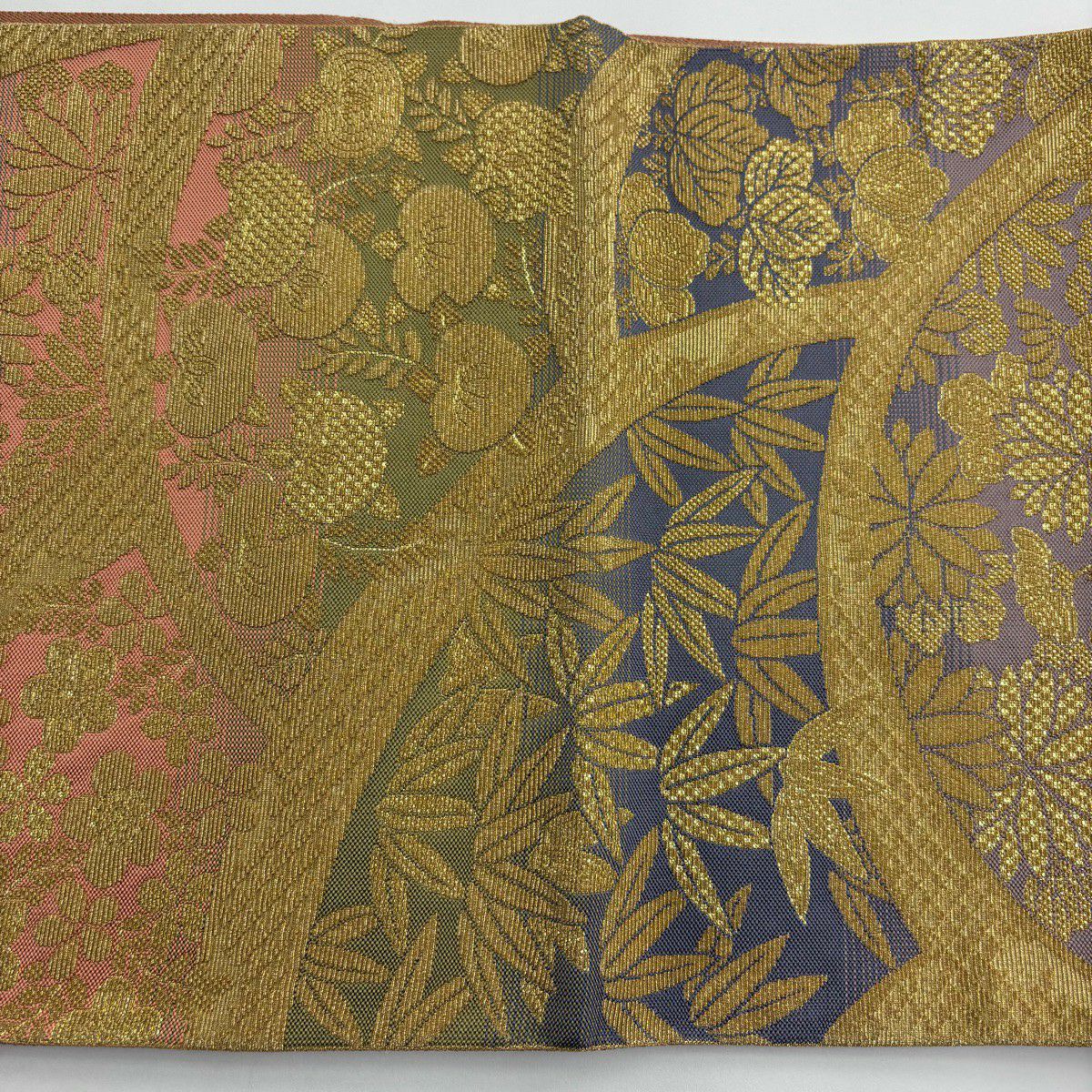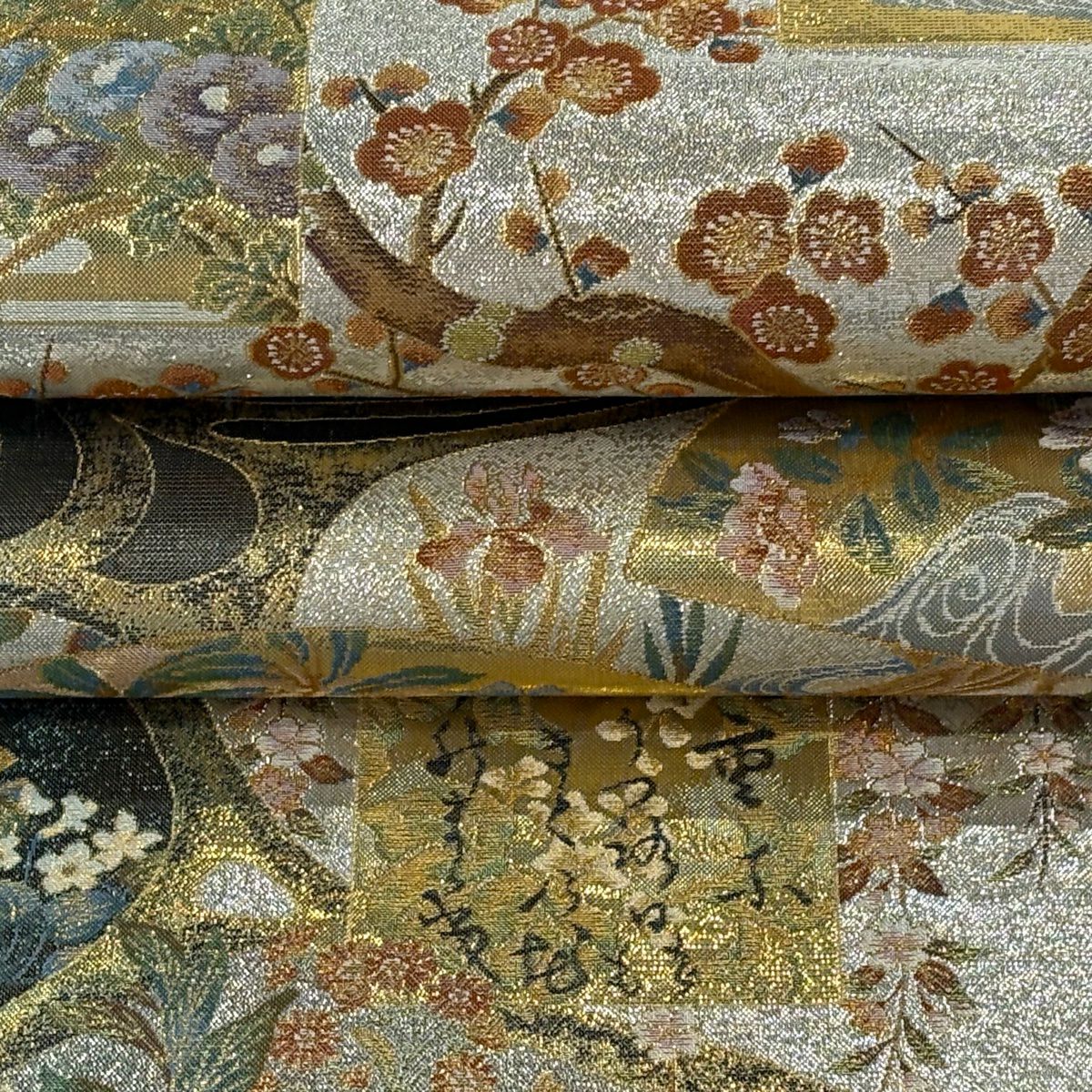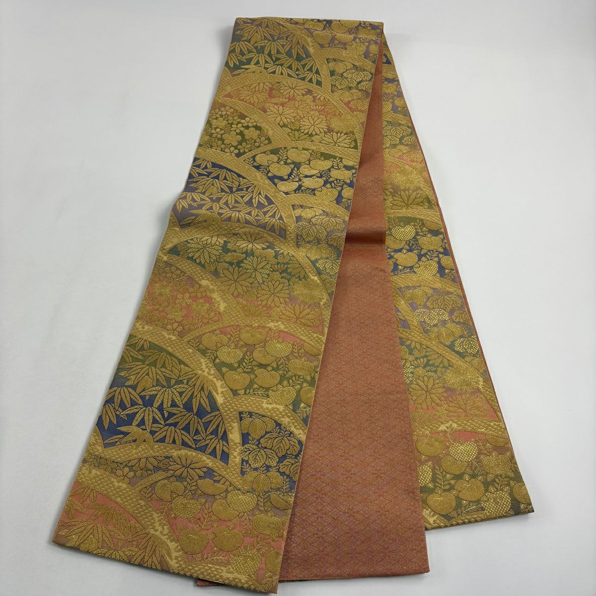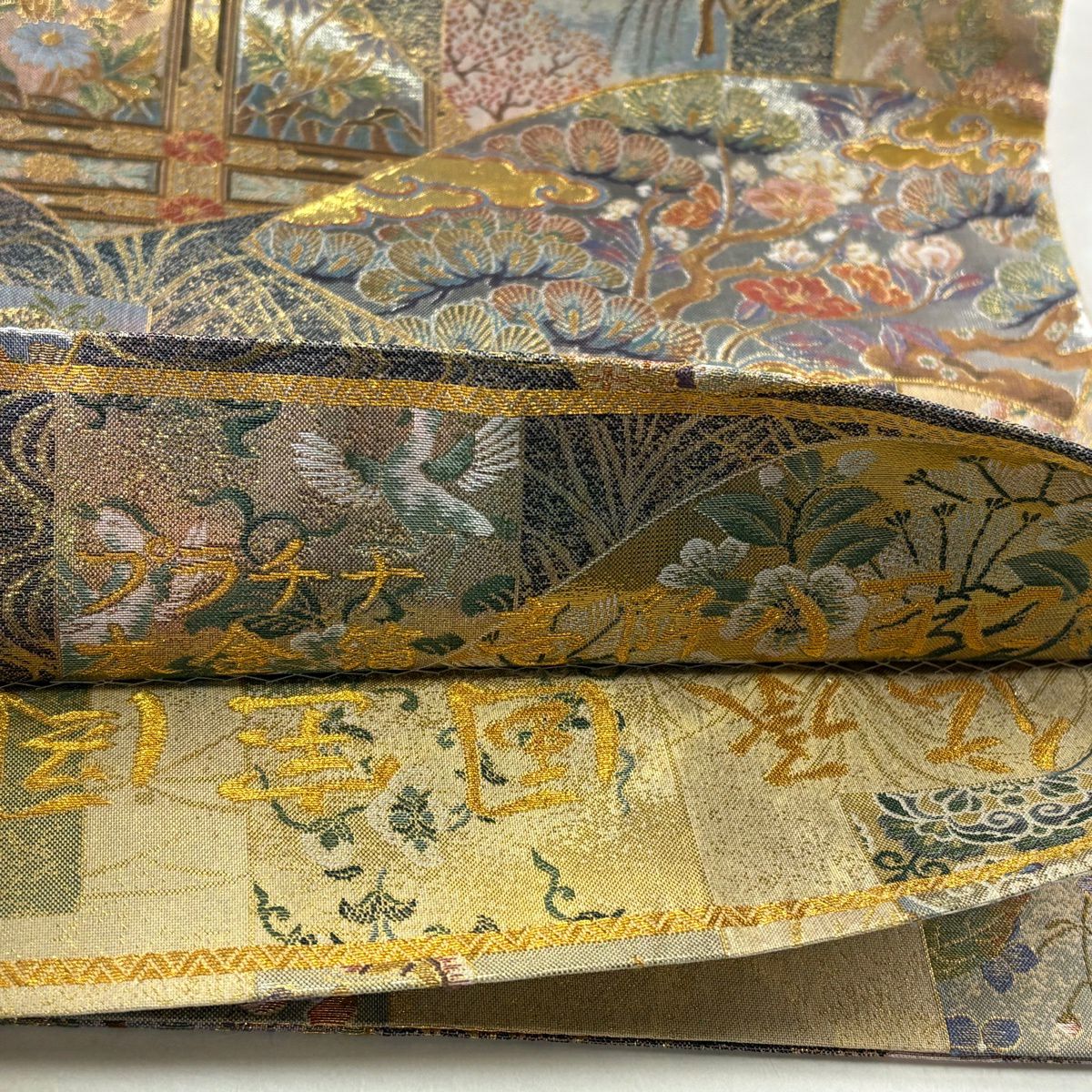 【美品】 丸帯 逸品 伝承国宝図 金糸 箔 金色 お太鼓柄 正絹