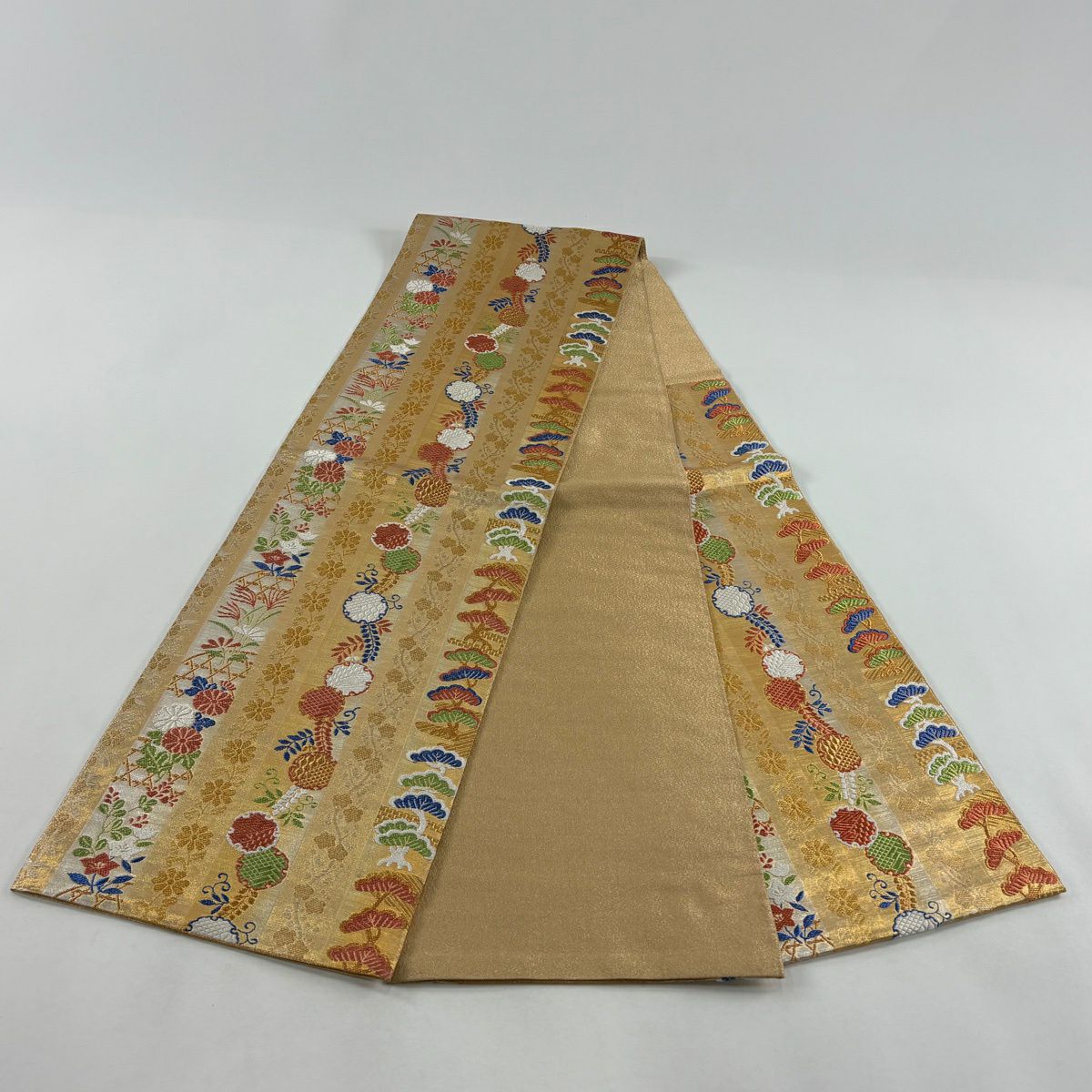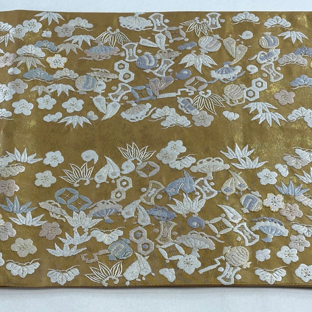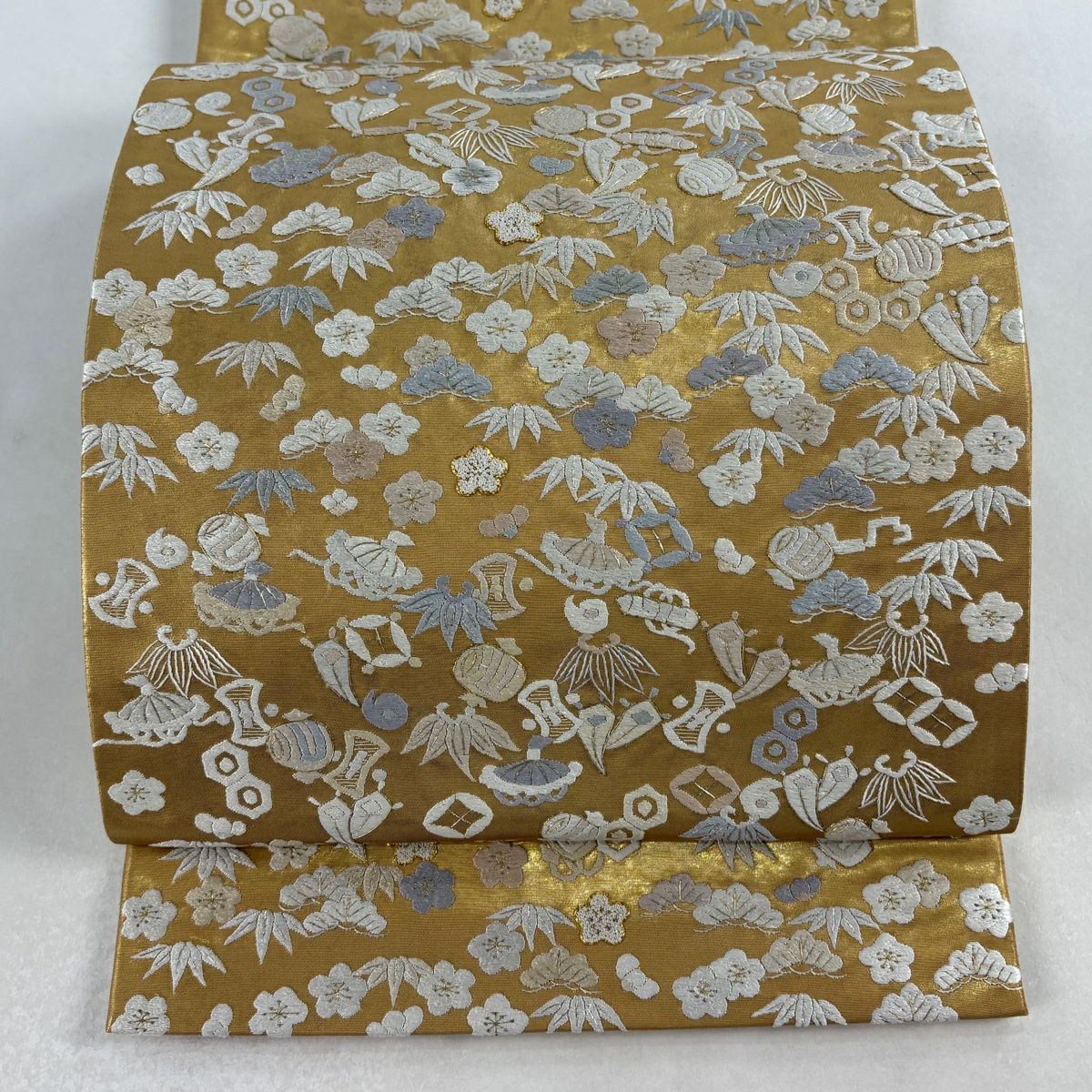袋帯 逸品 松竹梅 宝尽くし 金銀糸 刺繍 金色 お太鼓柄 正絹