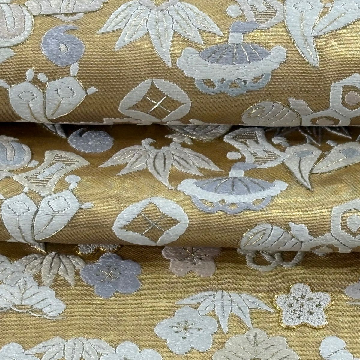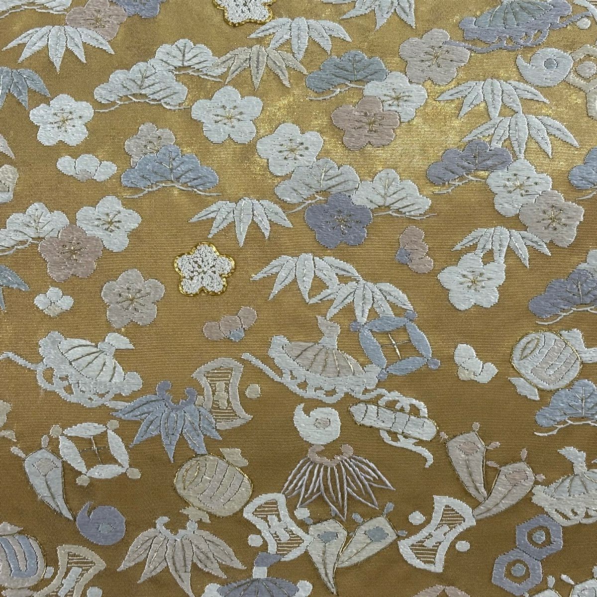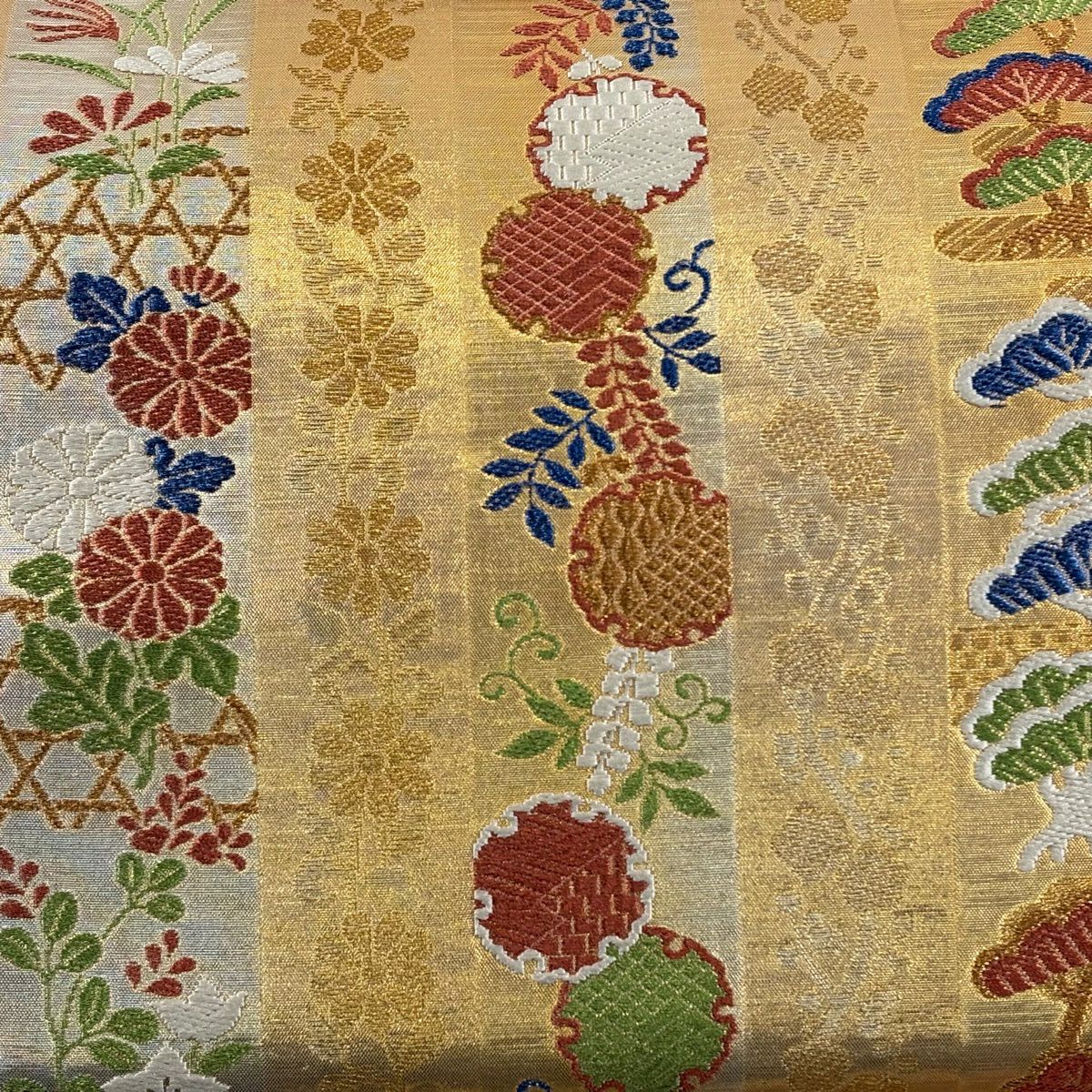 袋帯 逸品 松竹梅 宝尽くし 金銀糸 刺繍 金色 お太鼓柄 正絹