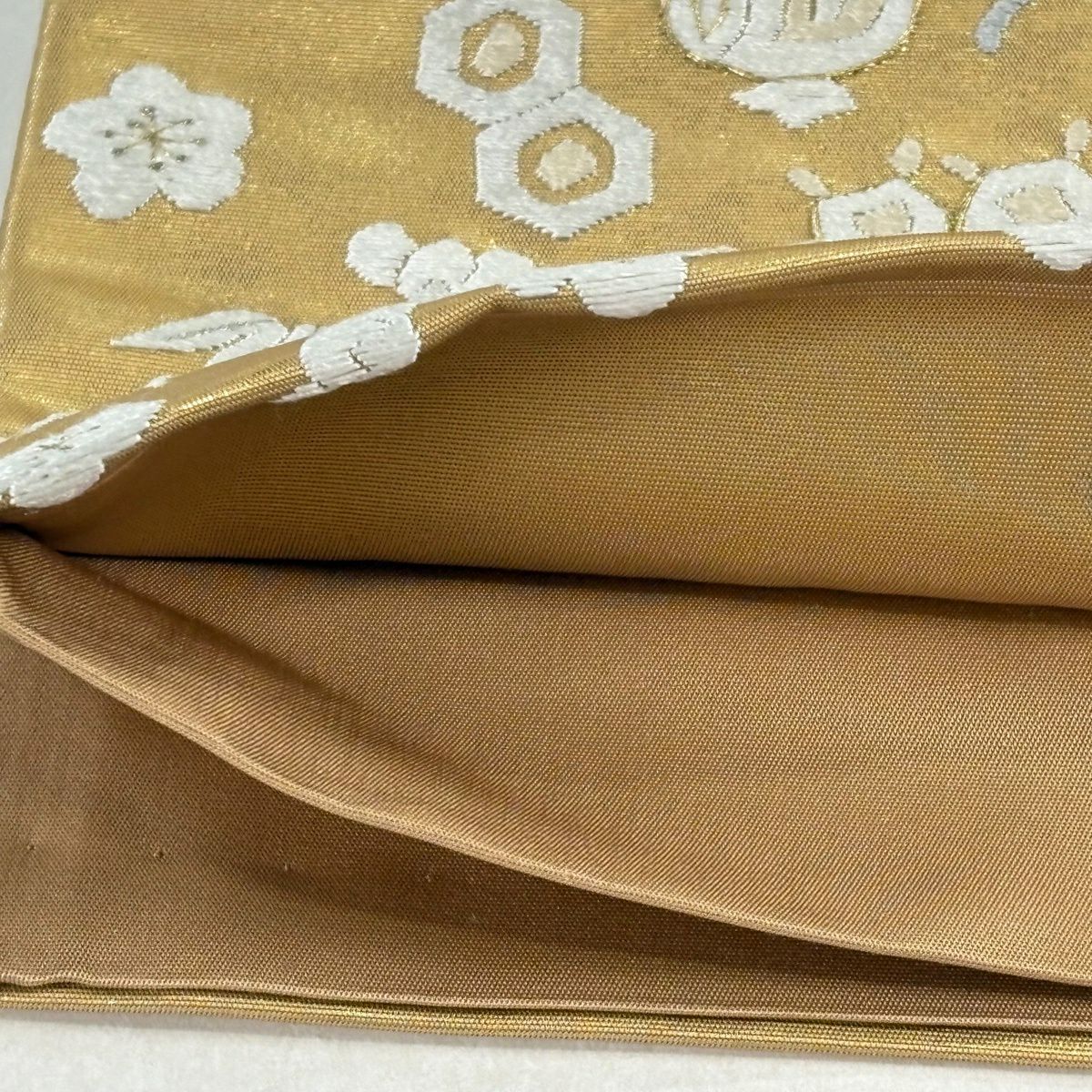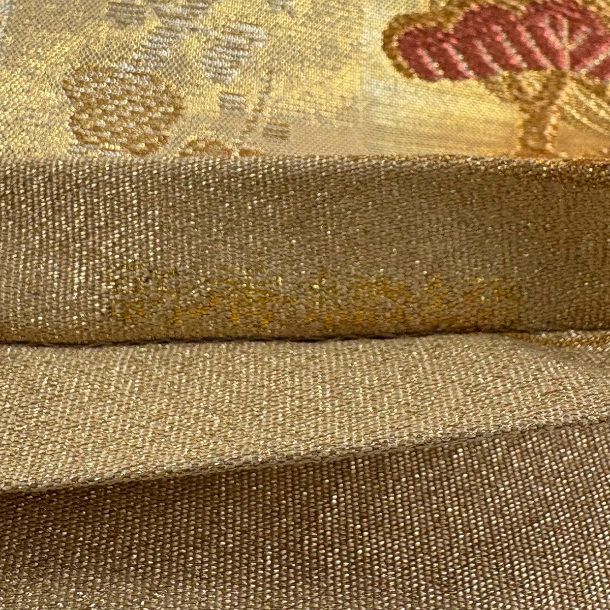 【美品】 袋帯 逸品 雪輪 松梅 金糸 ラメ糸 金色 六通 正絹