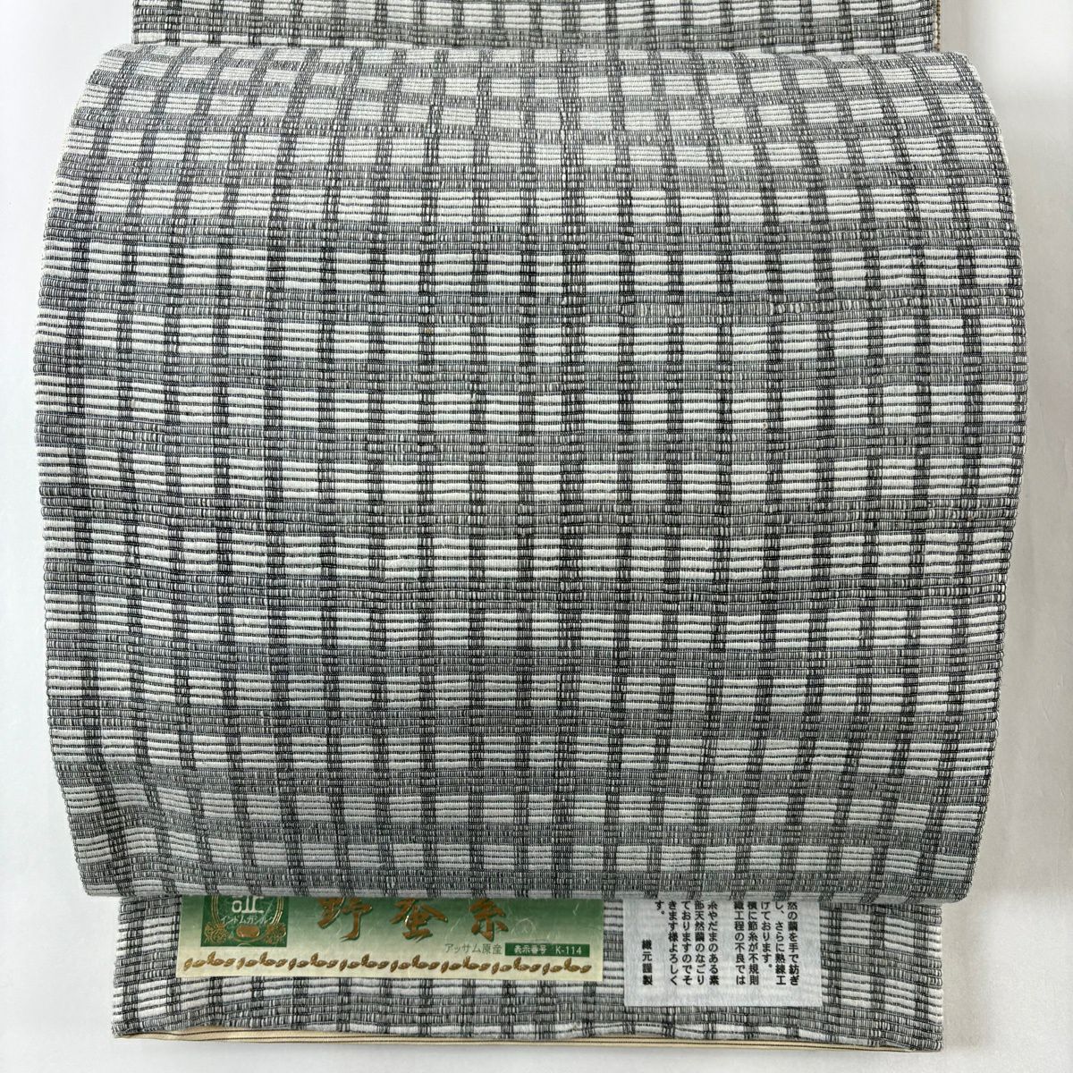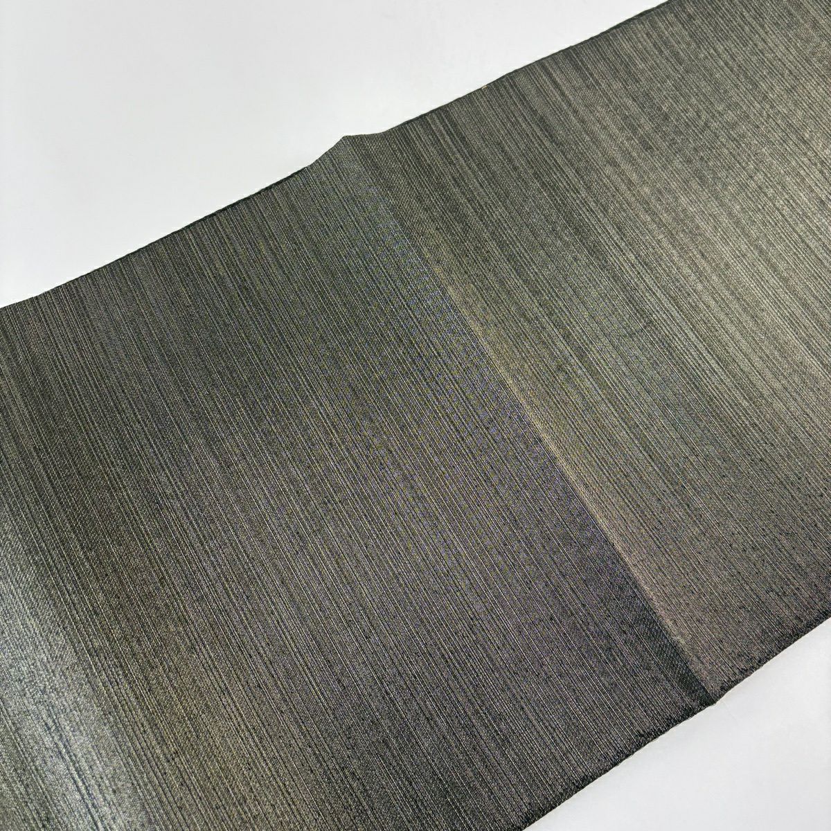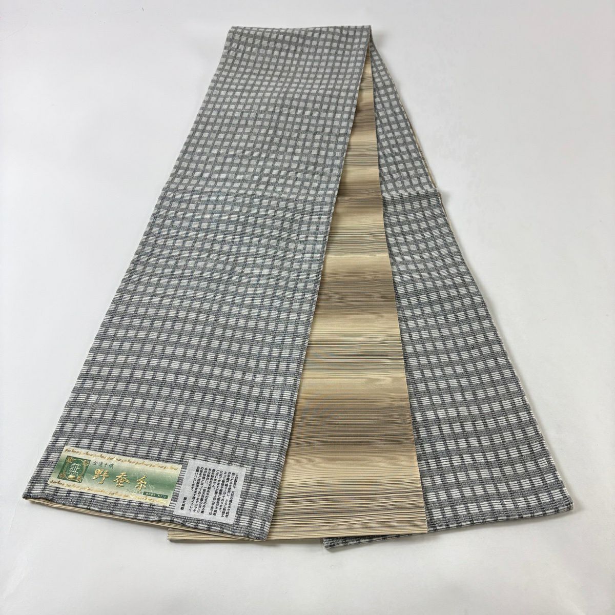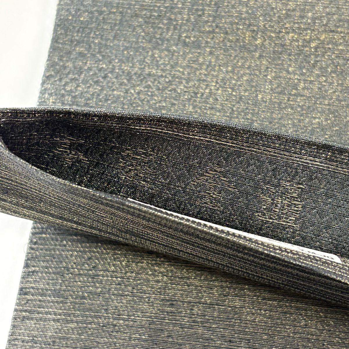 【美品】 袋帯 逸品 証紙あり 野蚕糸 格子 灰色 全通 正絹