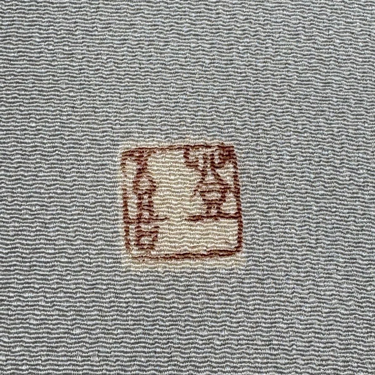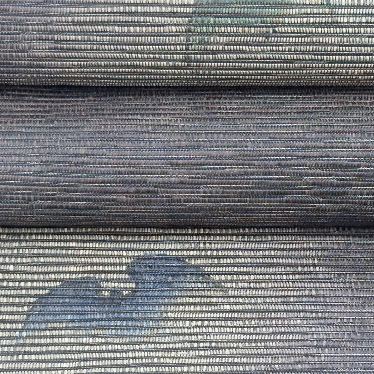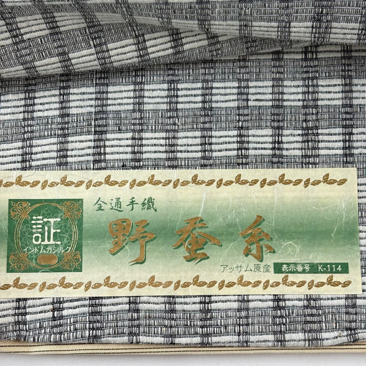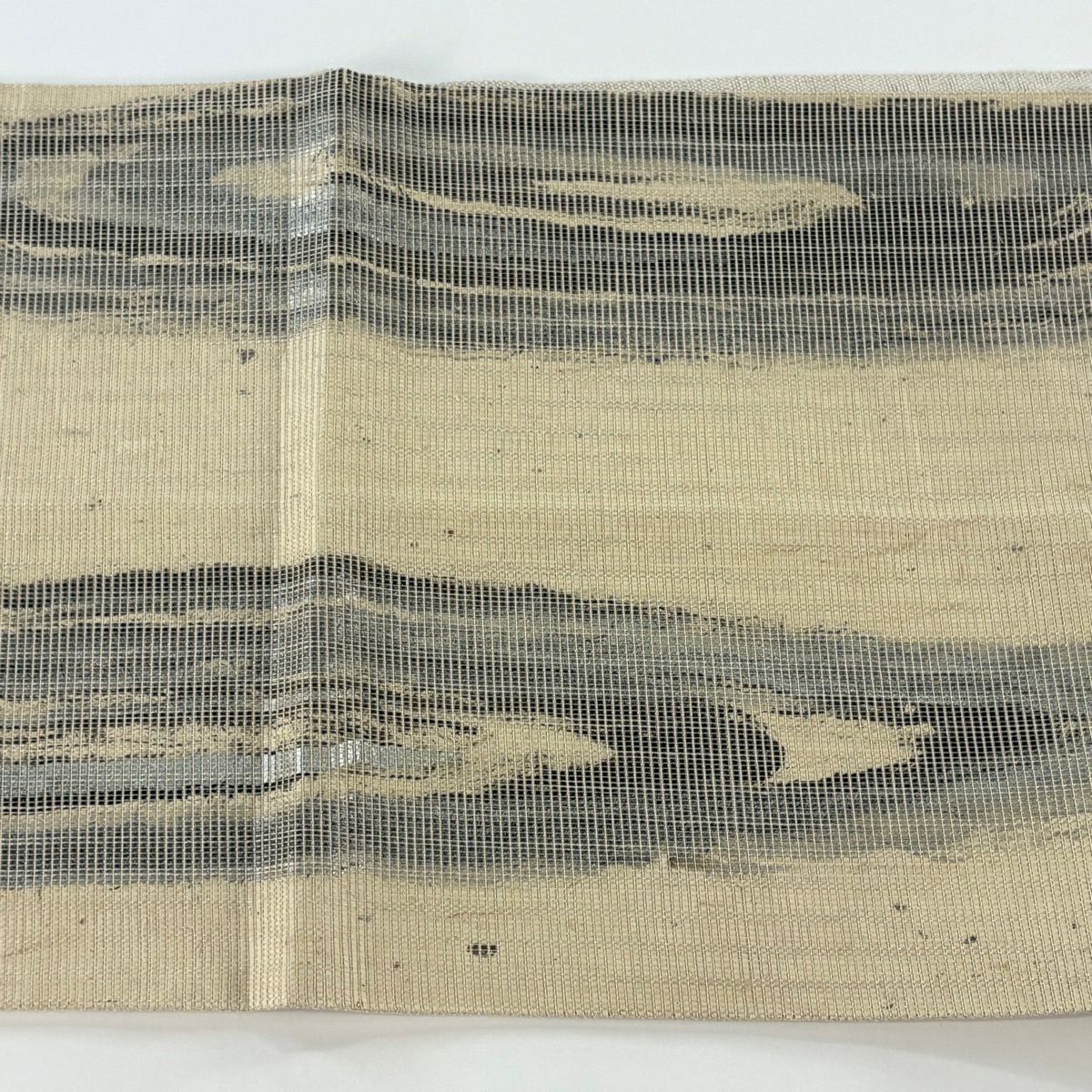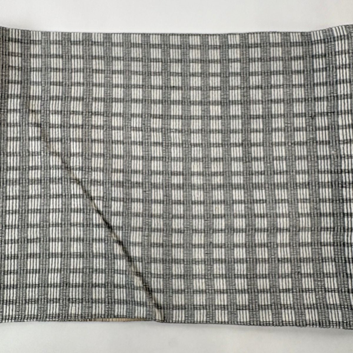 【美品】 袋帯 逸品 証紙あり 野蚕糸 格子 灰色 全通 正絹