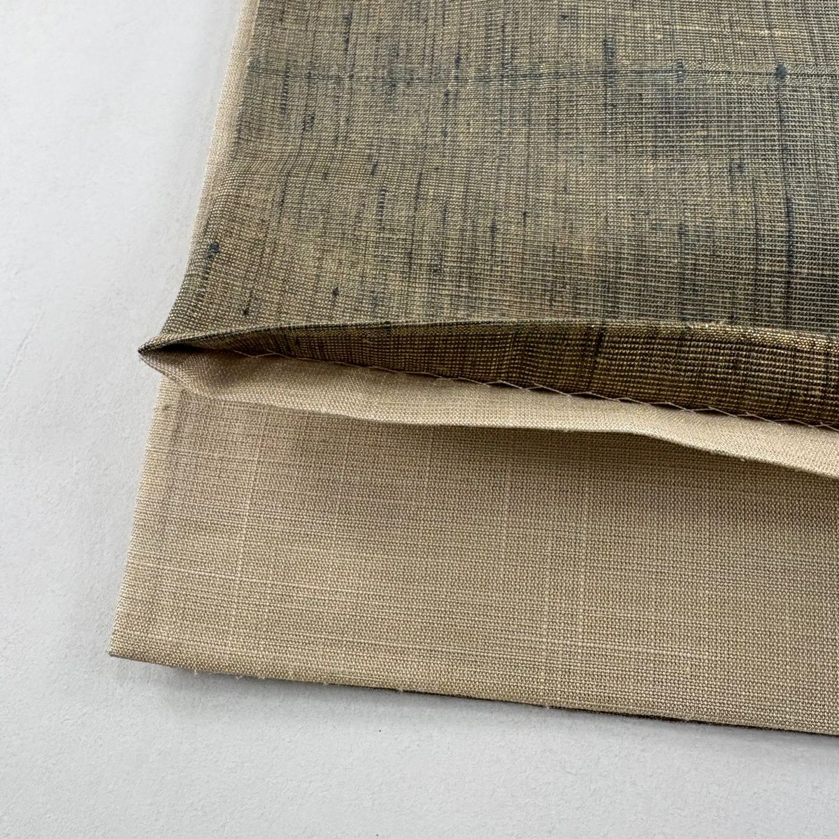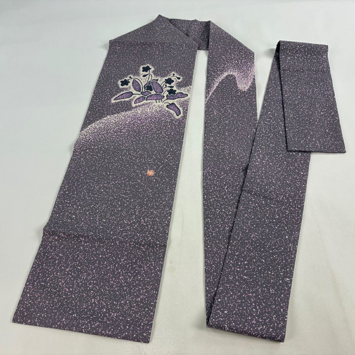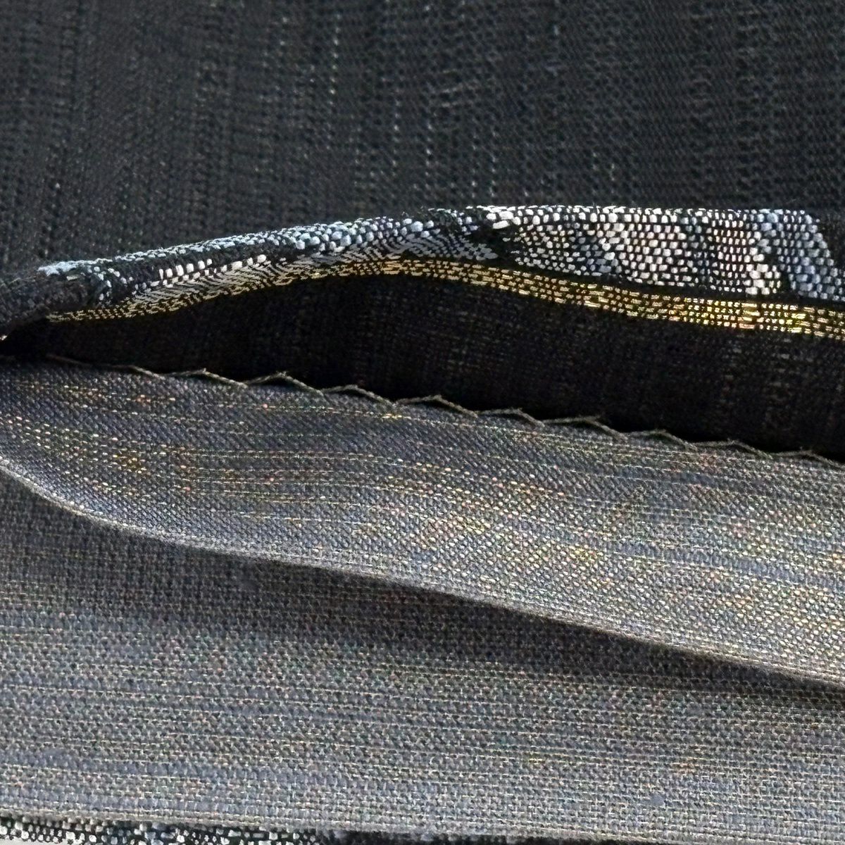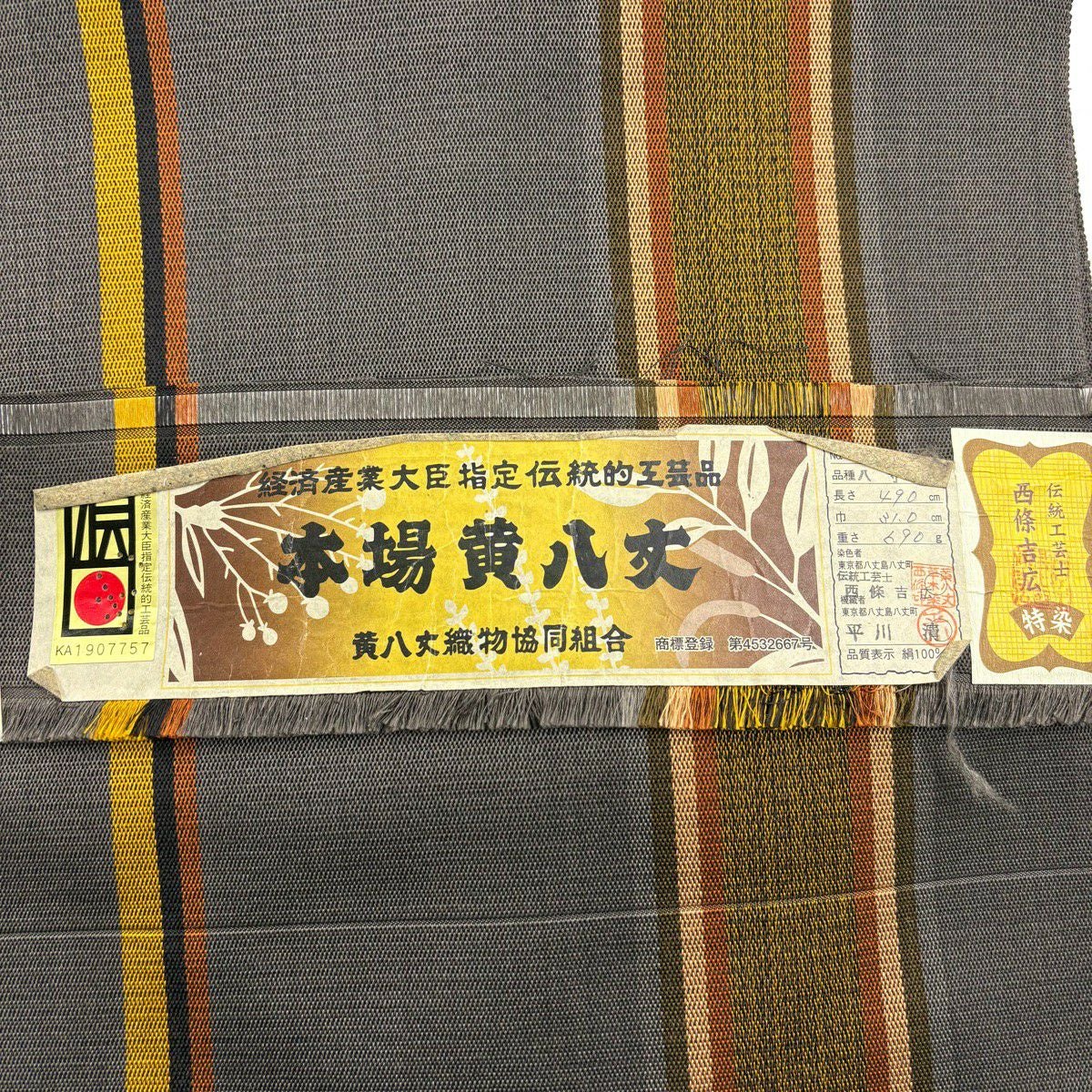 【美品】 袋帯 逸品 証紙あり 野蚕糸 格子 灰色 全通 正絹