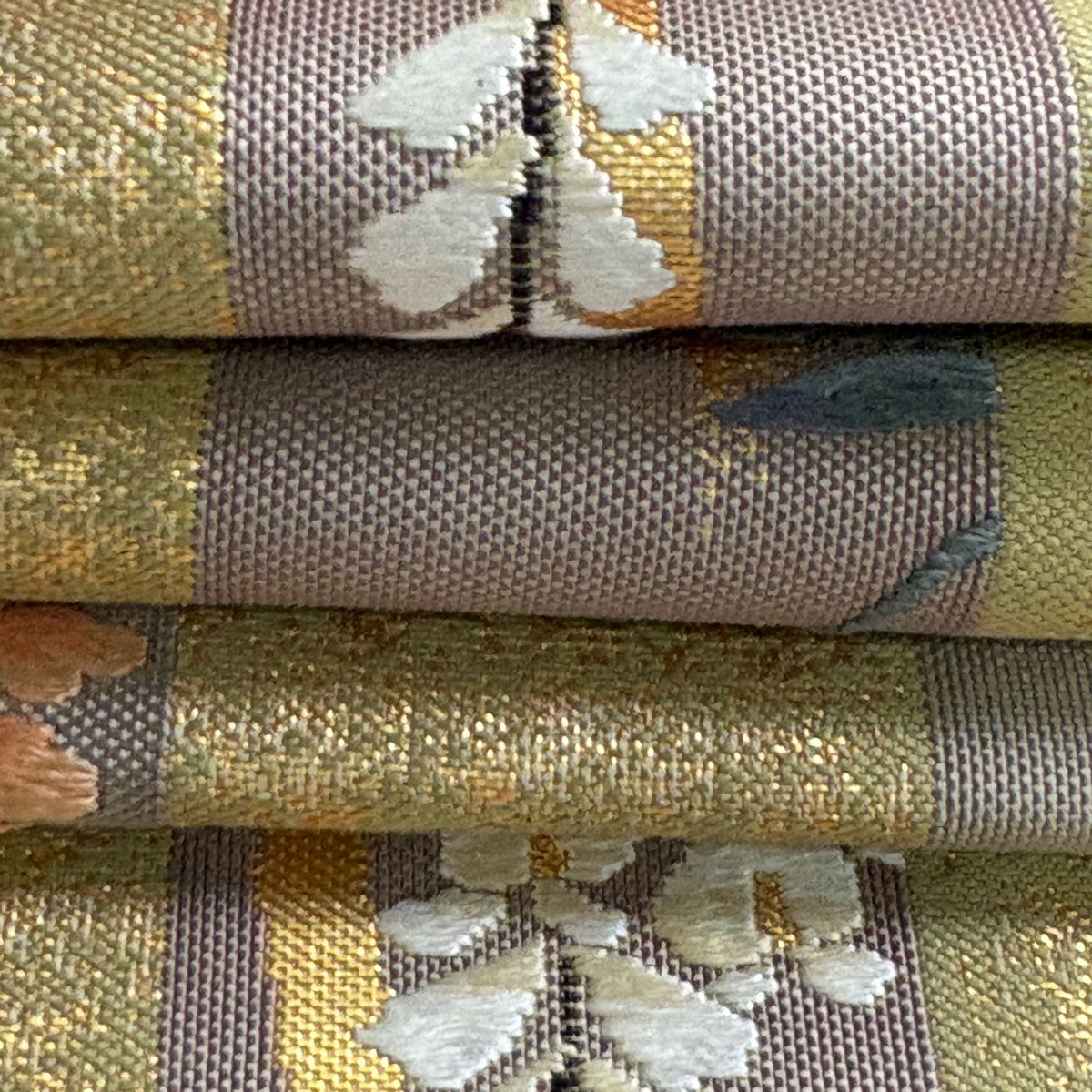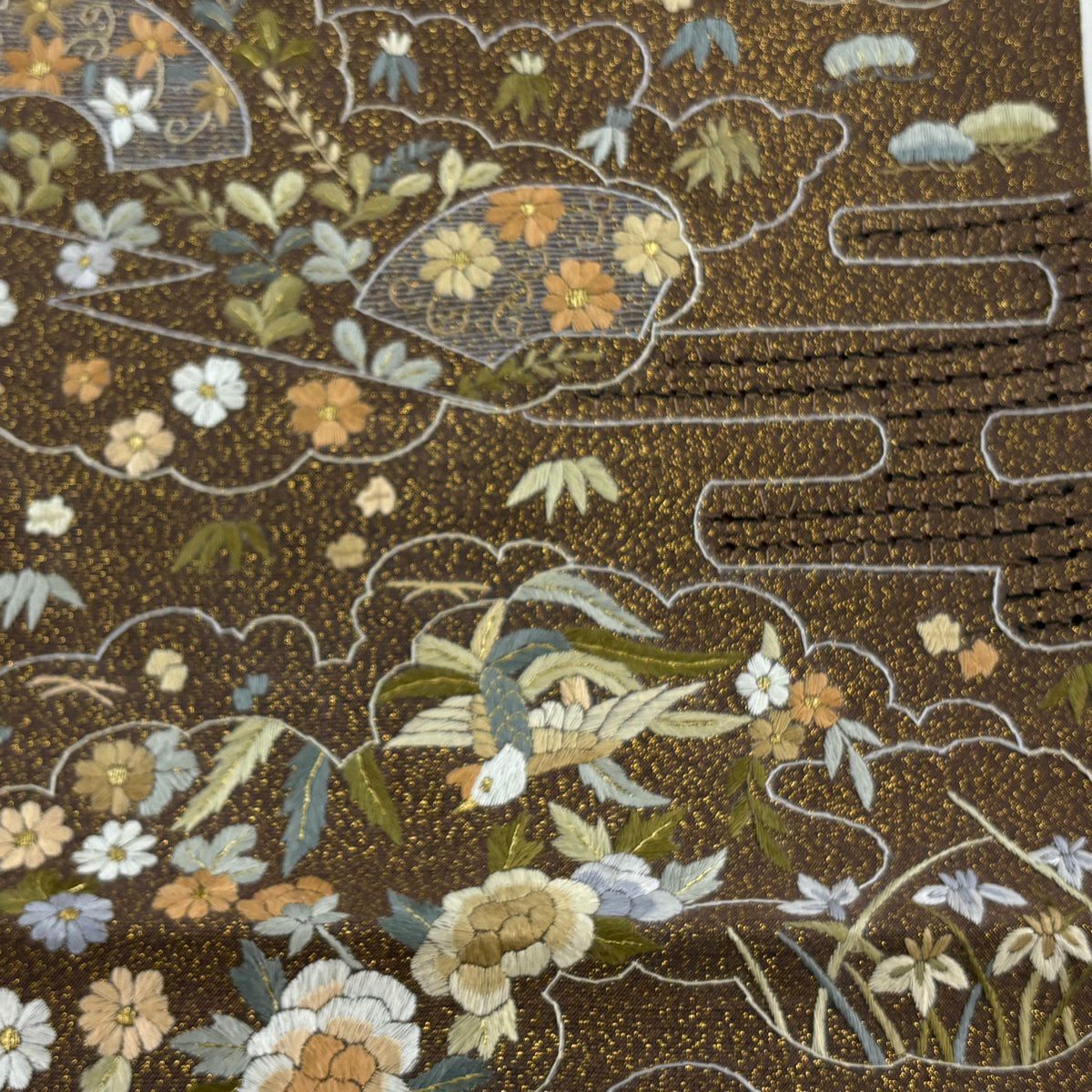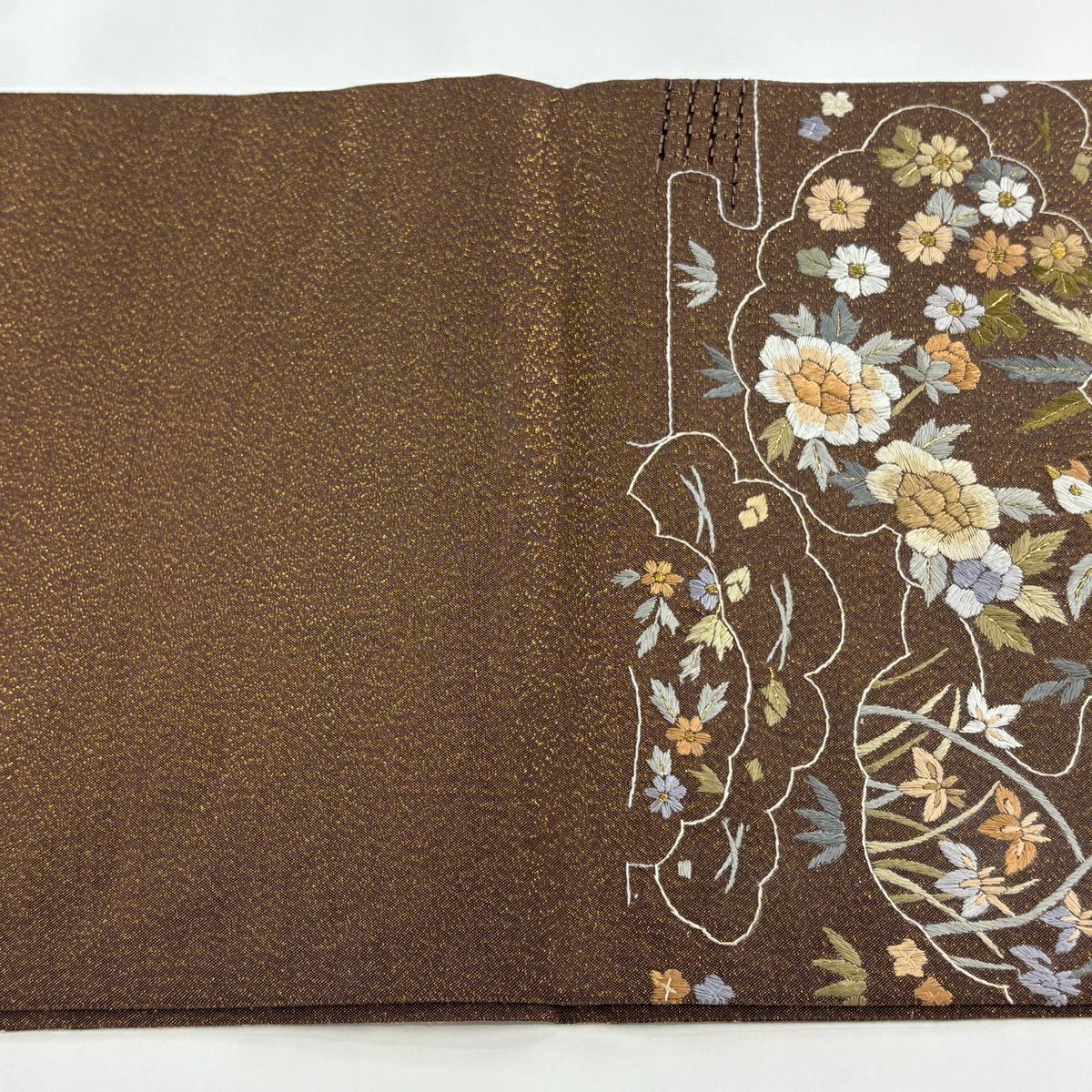 袋帯 逸品 関西仕立て 草花 金銀糸 刺繍 金色 お太鼓柄 正絹