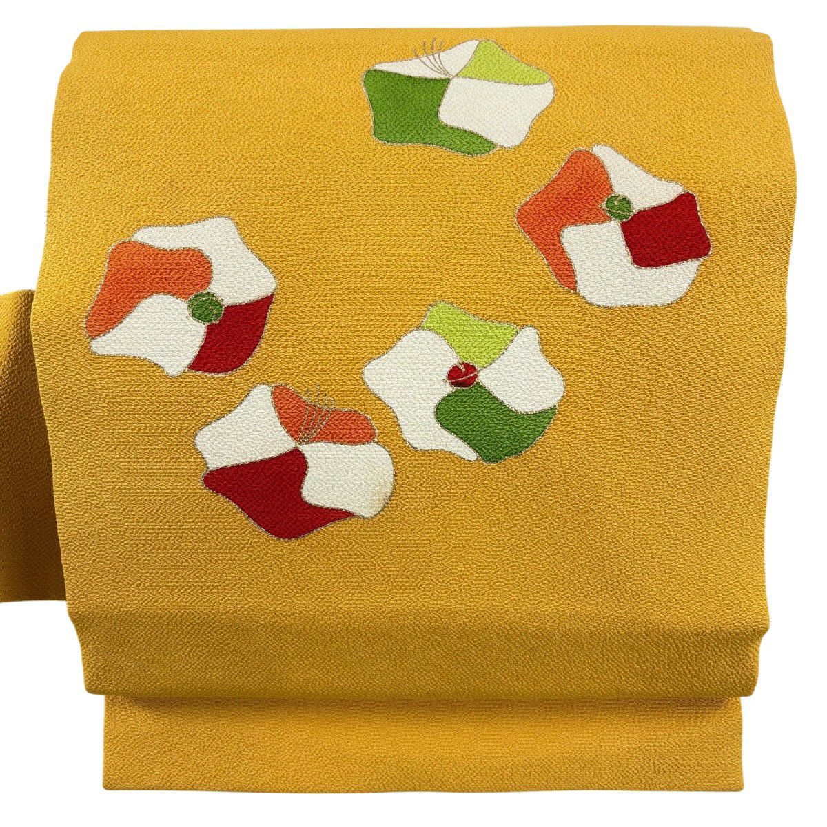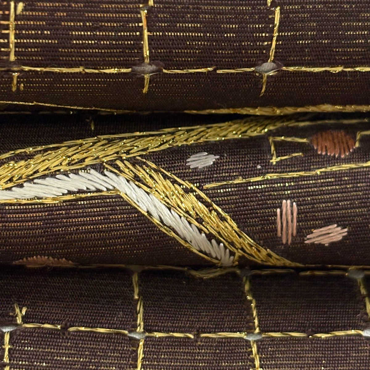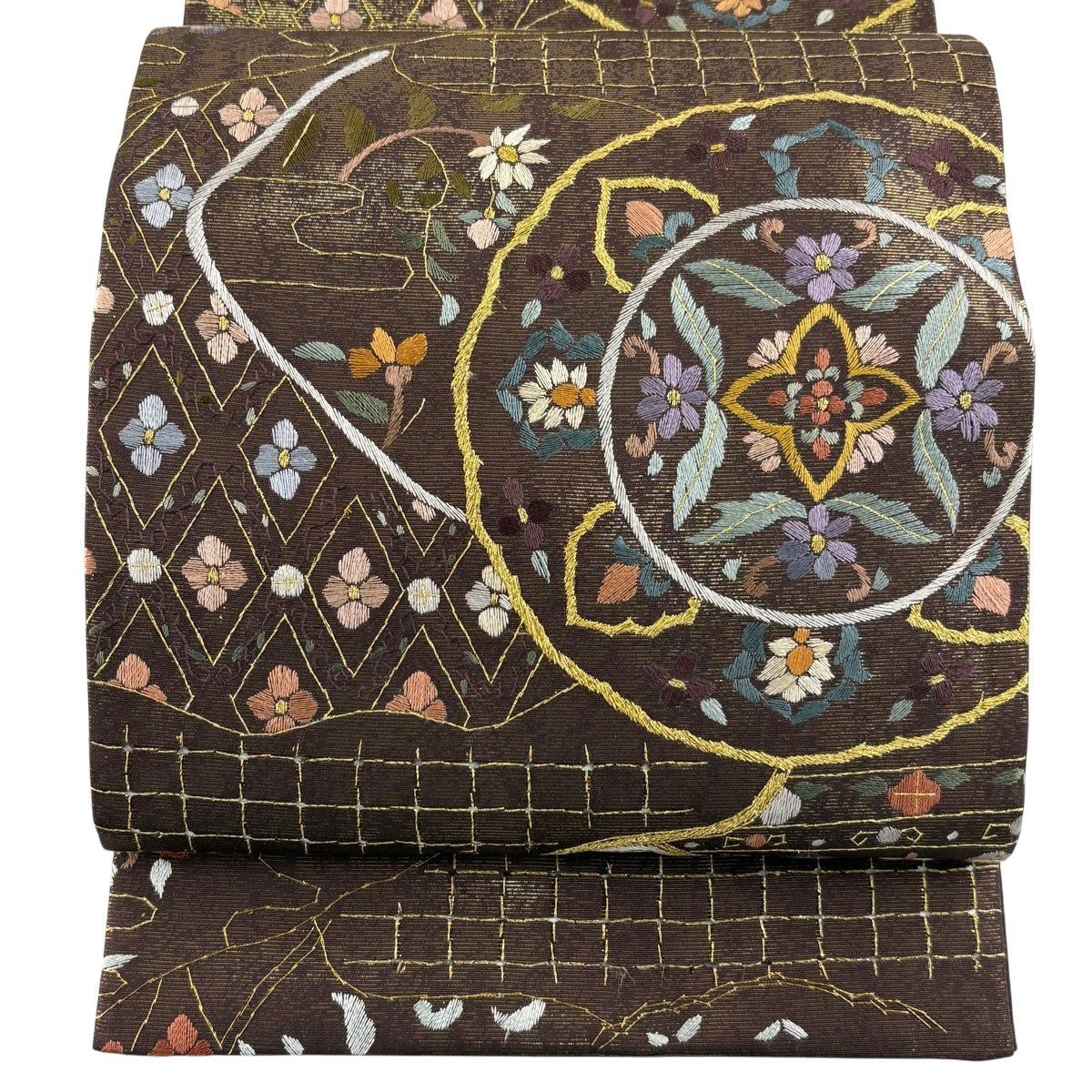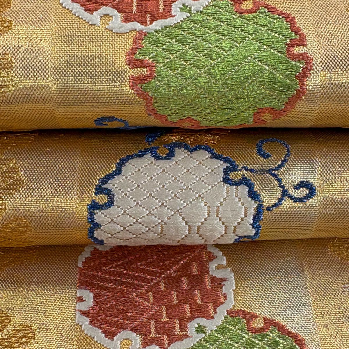 袋帯 逸品 関西仕立て 草花 金銀糸 刺繍 金色 お太鼓柄 正絹
