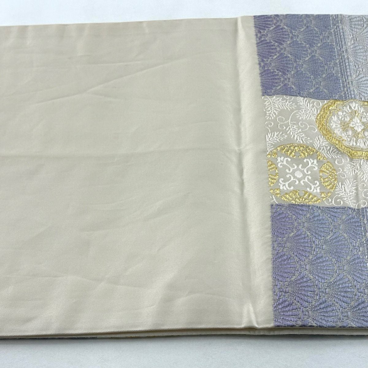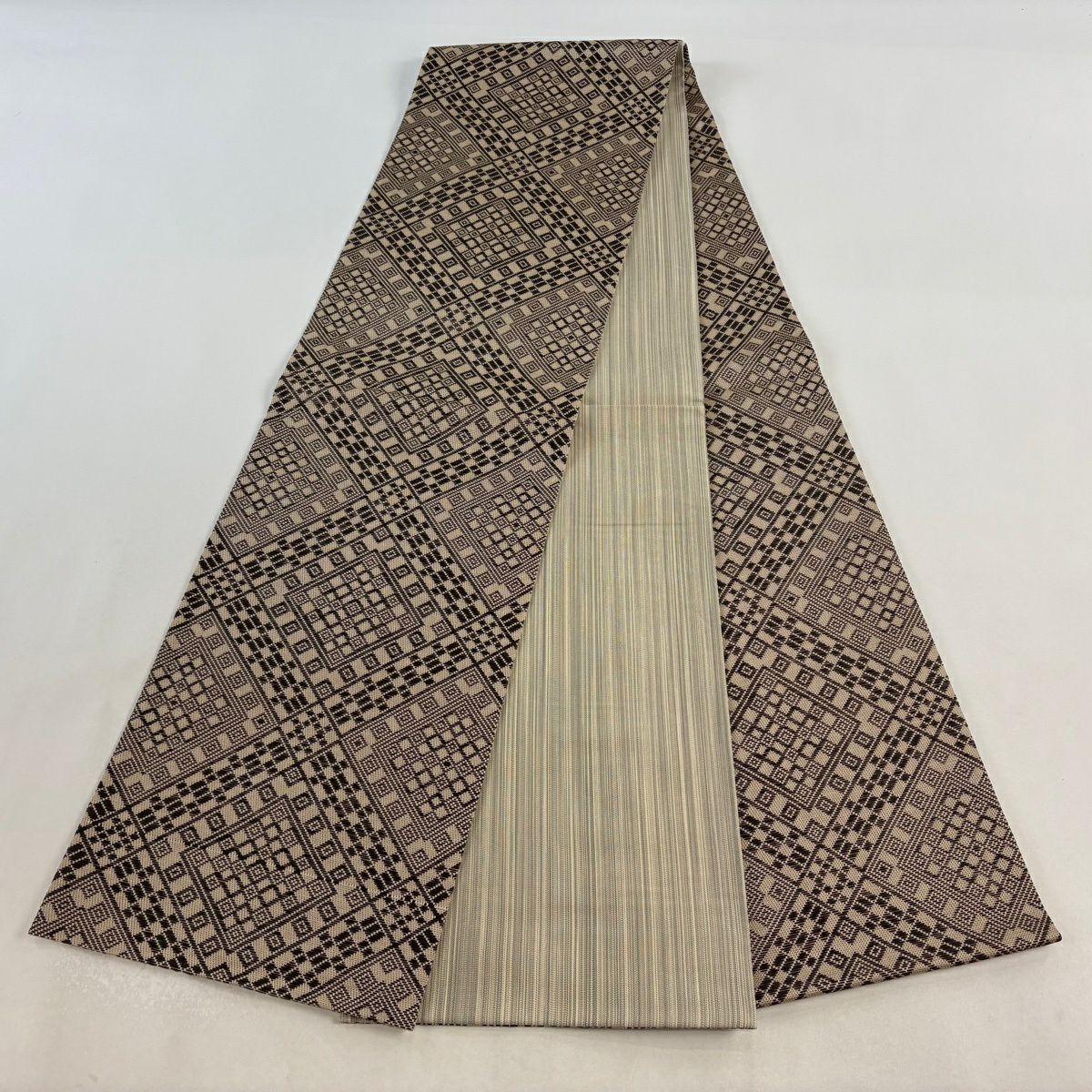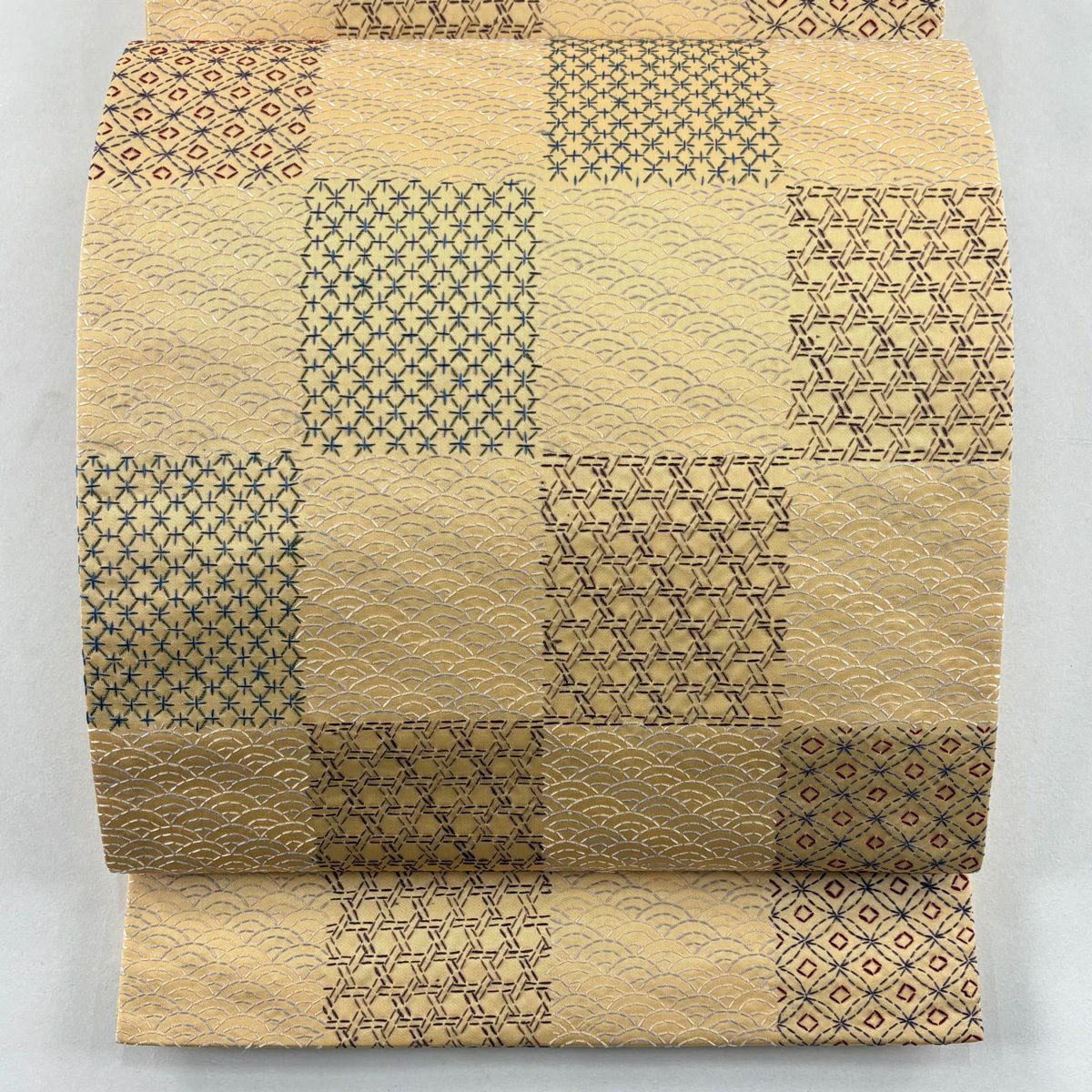 【美品】 袋帯 逸品 菱 幾何学模様 ベージュ 全通 正絹