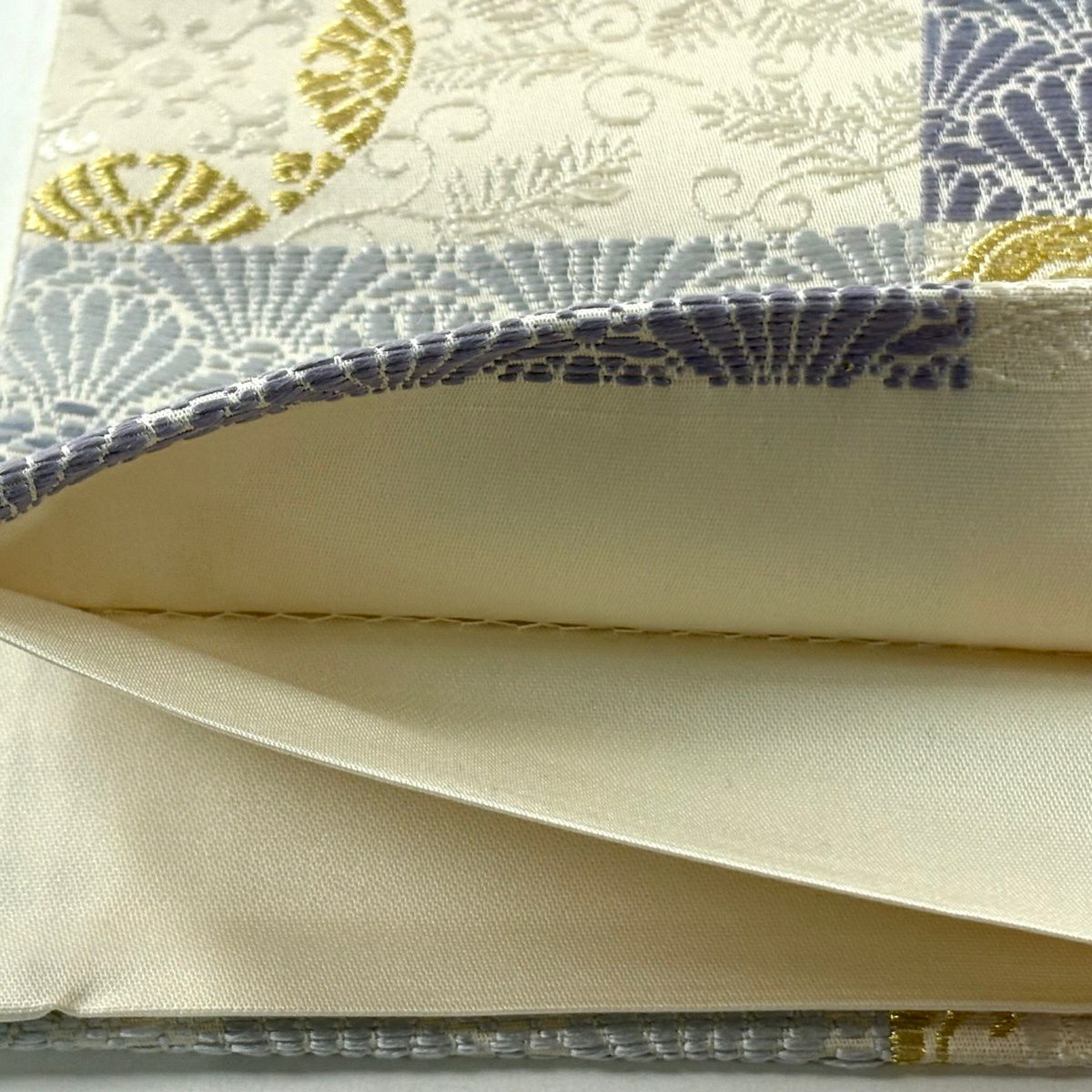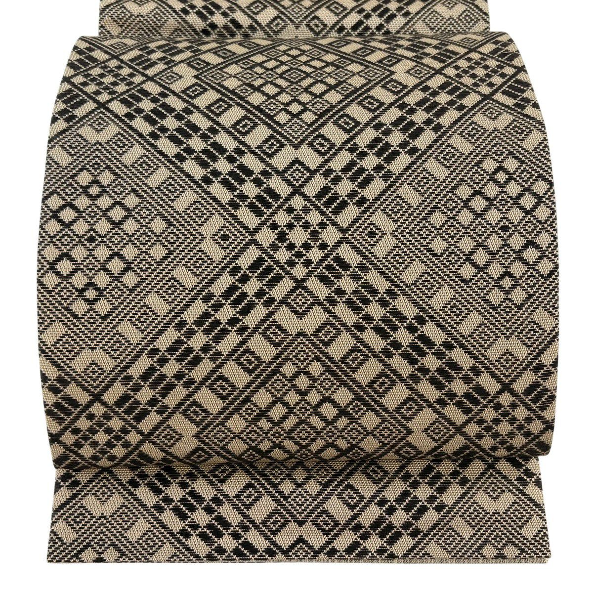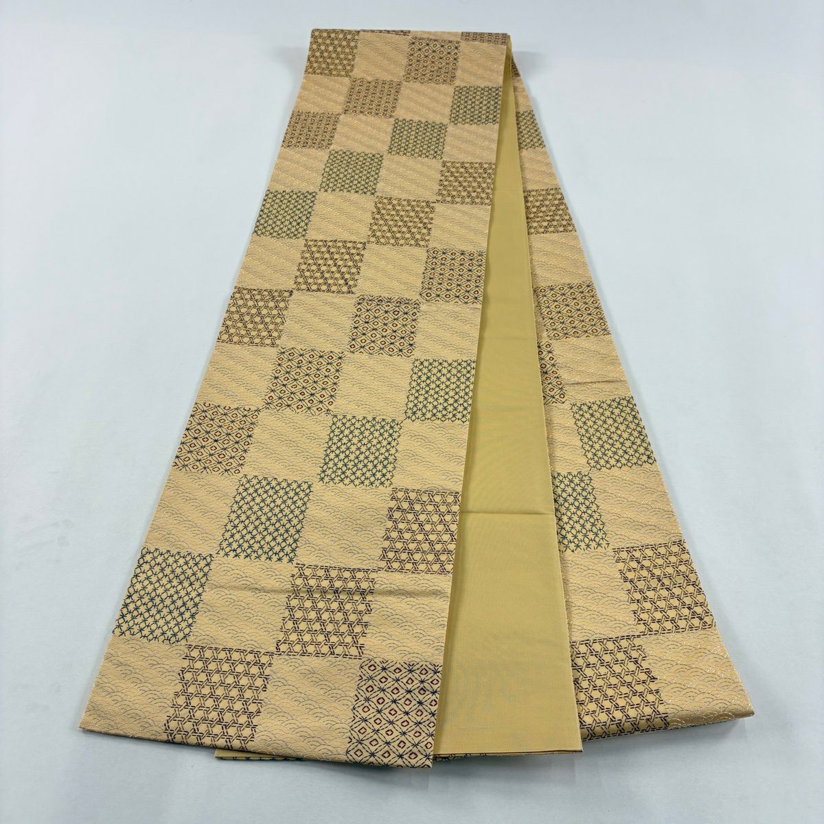 【美品】 袋帯 逸品 菱 幾何学模様 ベージュ 全通 正絹