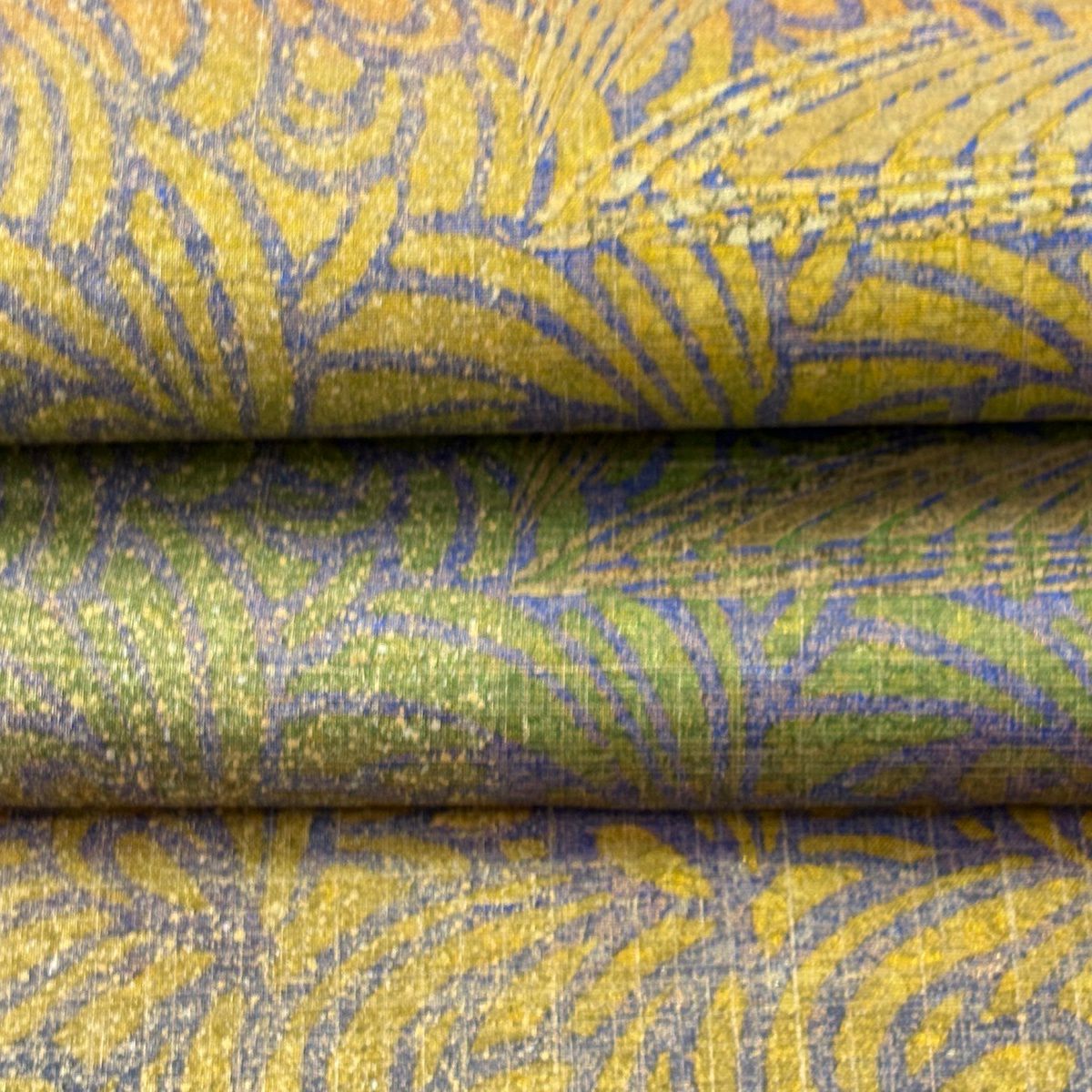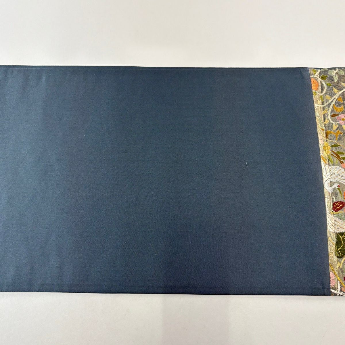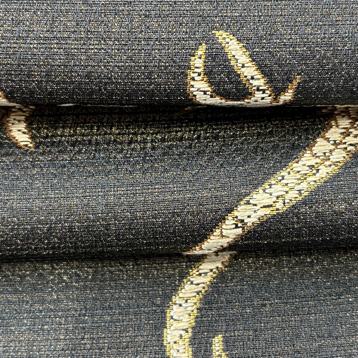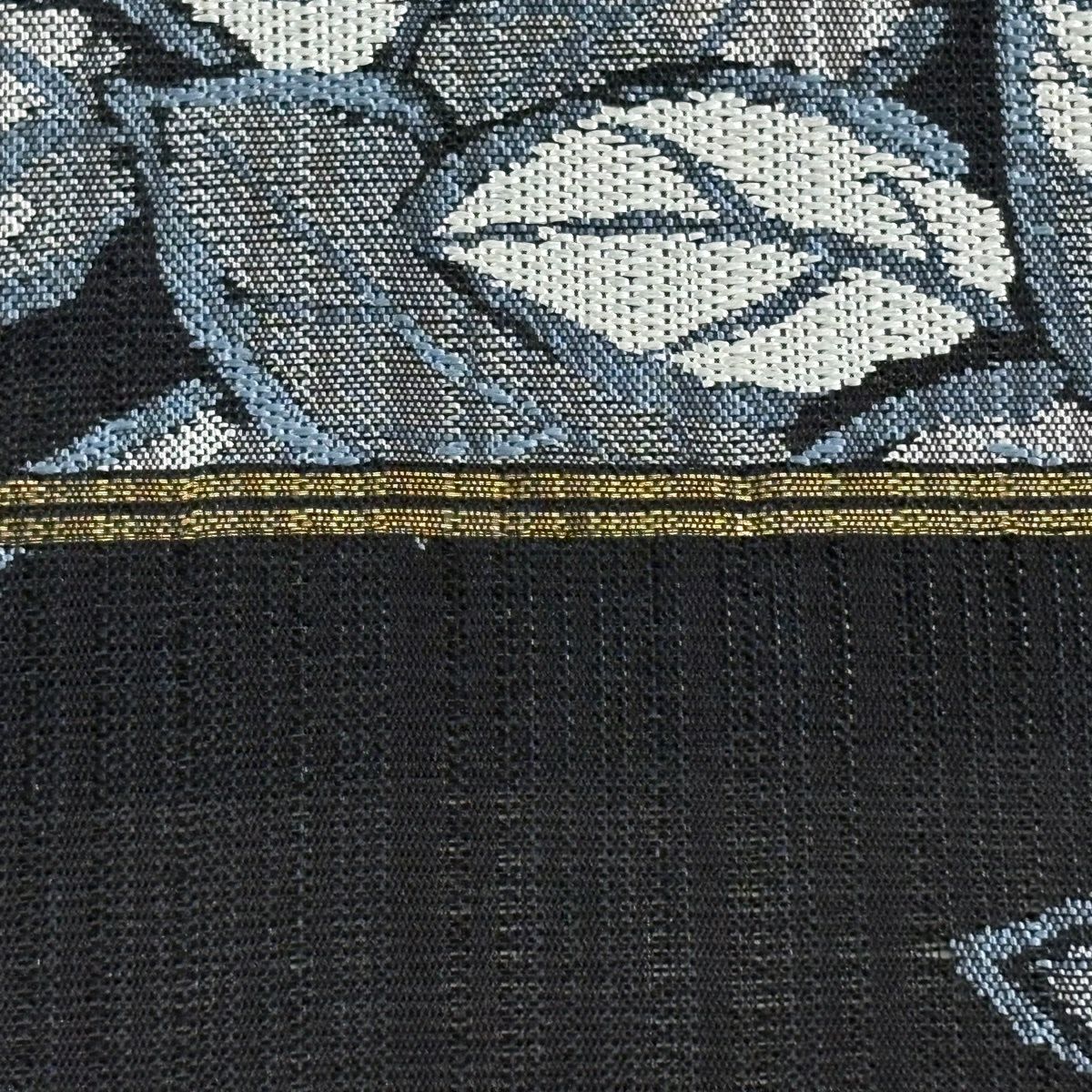 【美品】 袋帯 逸品 草花 唐草 金糸 箔 青灰色 六通 正絹