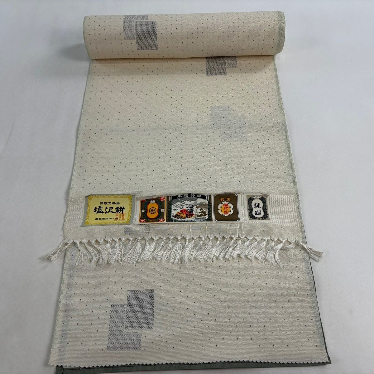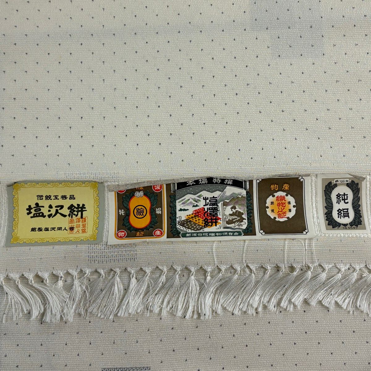 反物 逸品 塩沢紬 証紙有り 塩沢絣 蚊絣 亀甲絣 クリーム 正絹