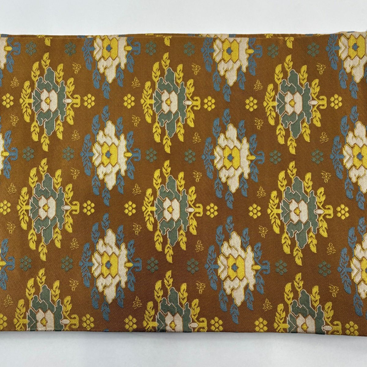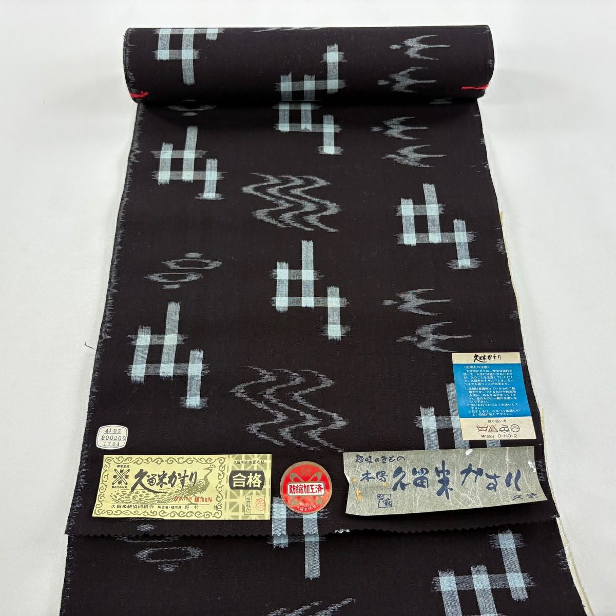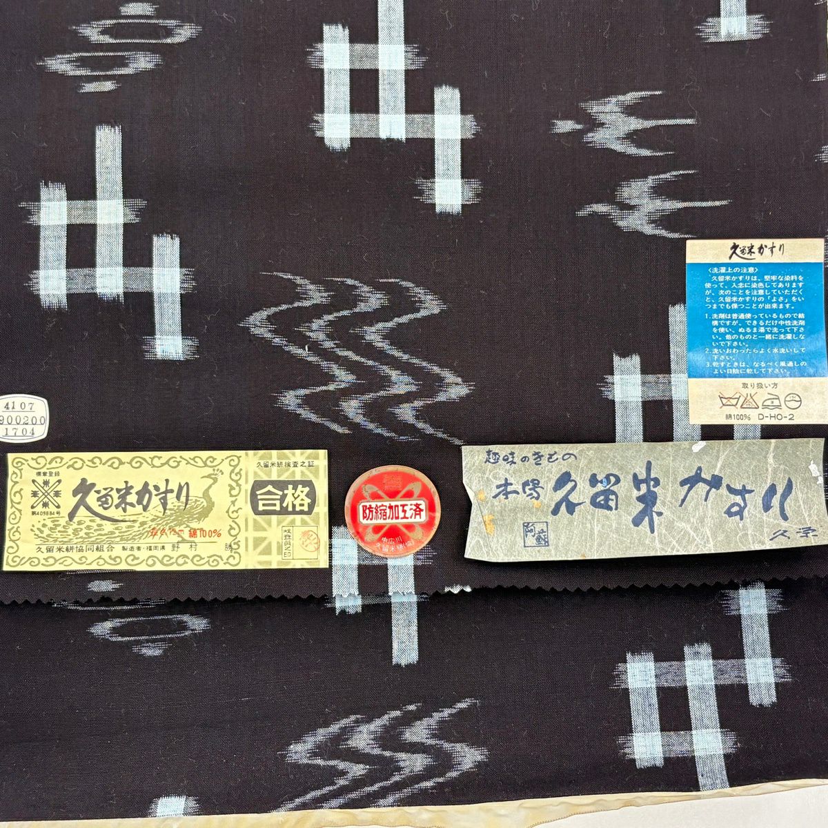 反物 逸品 紬 証紙有り 久留米かすり 流水 絣柄 焦茶色 綿