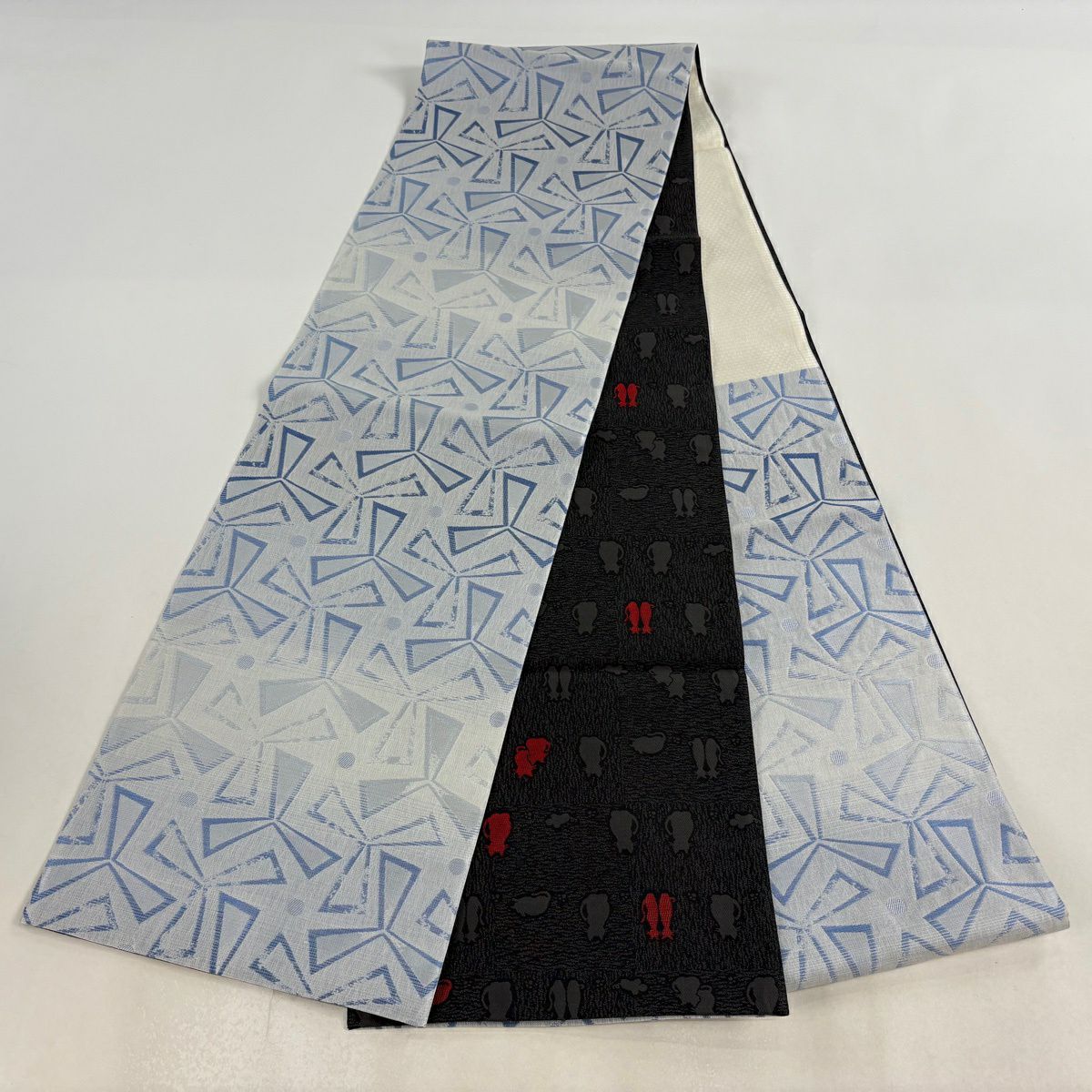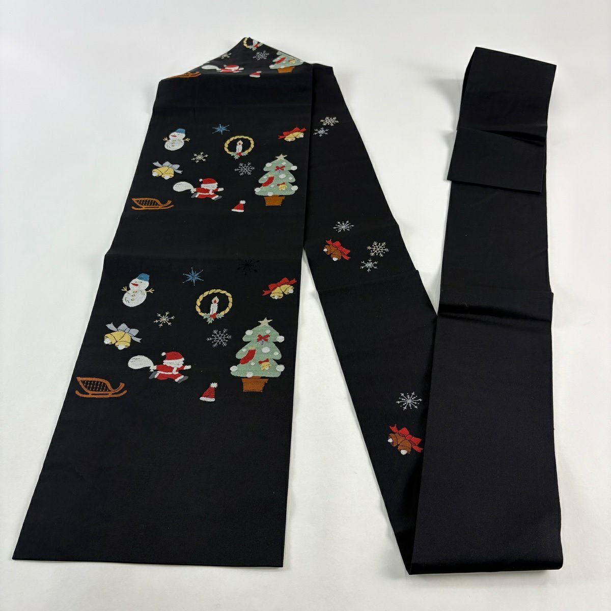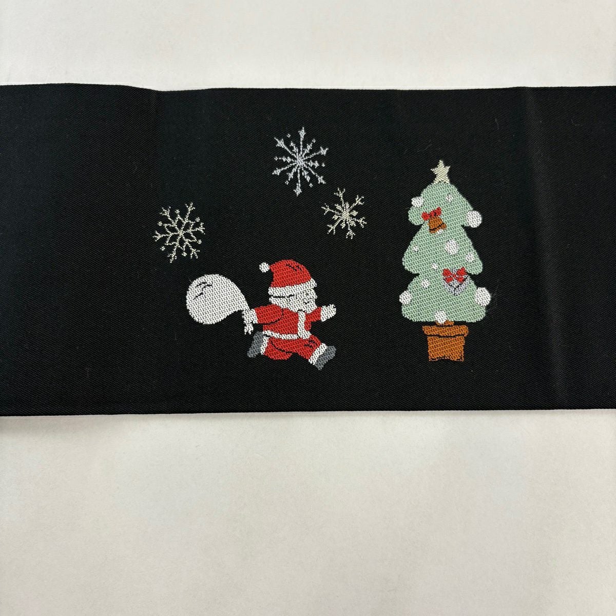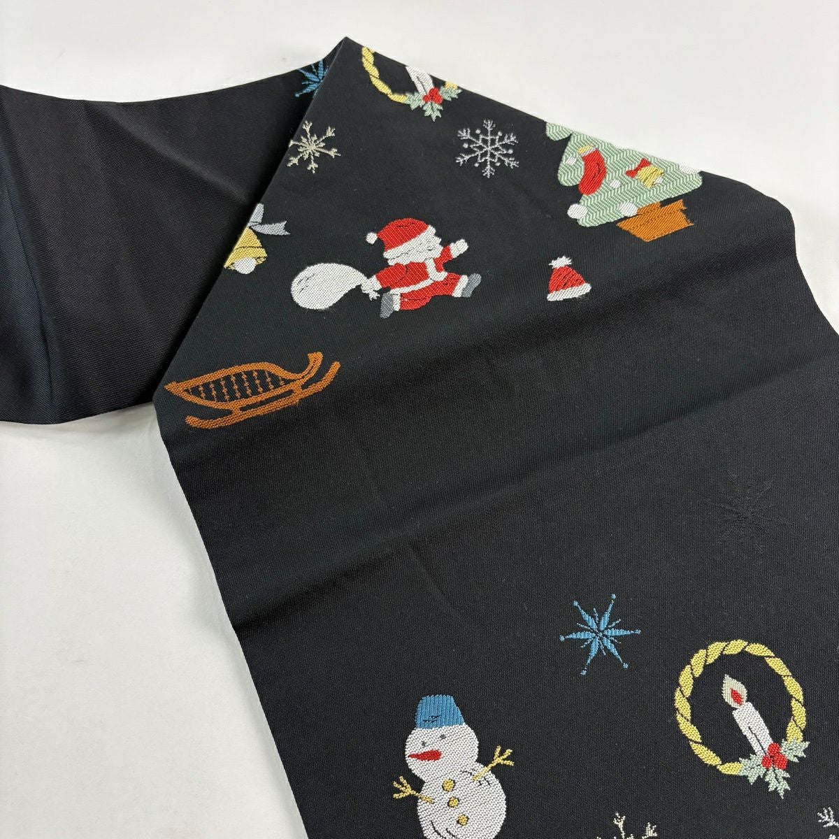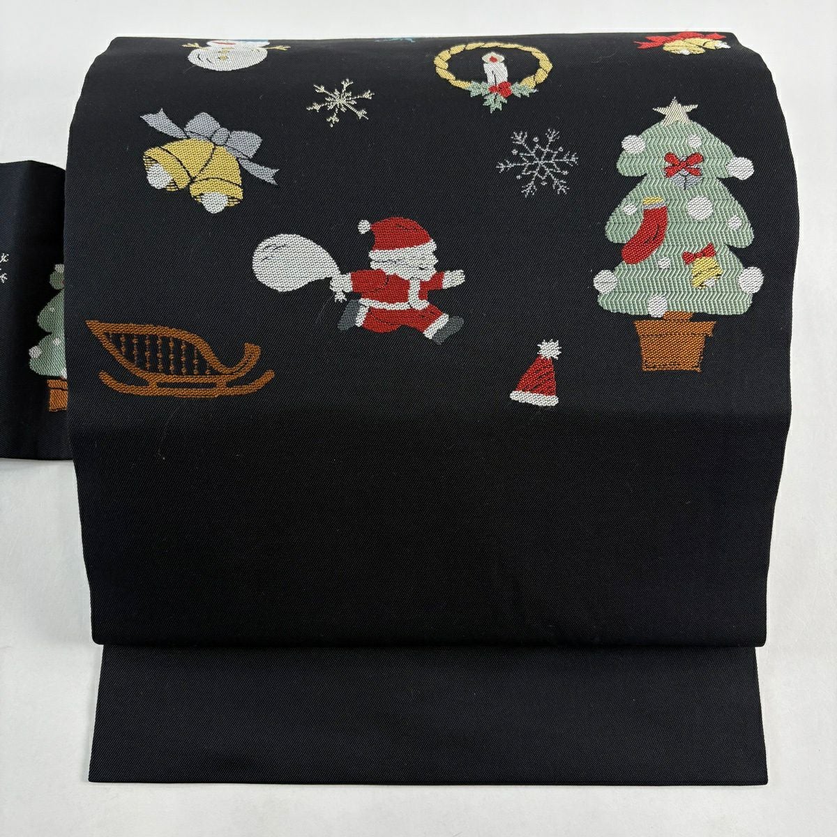 【美品】 名古屋帯 逸品 クリスマス サンタクロース 黒 正絹
