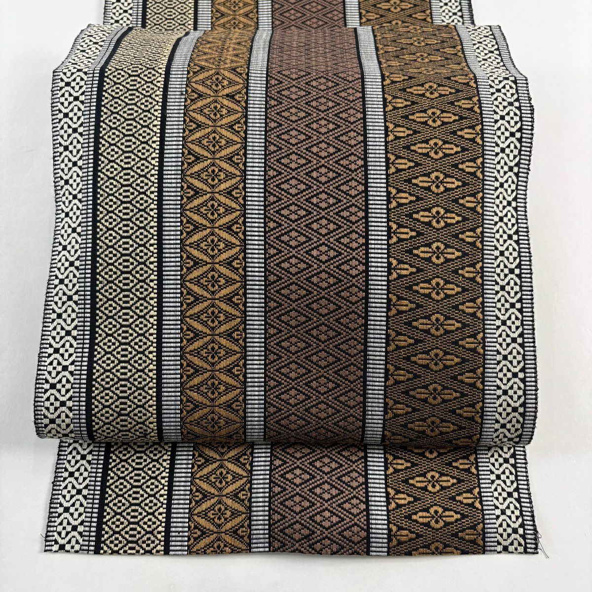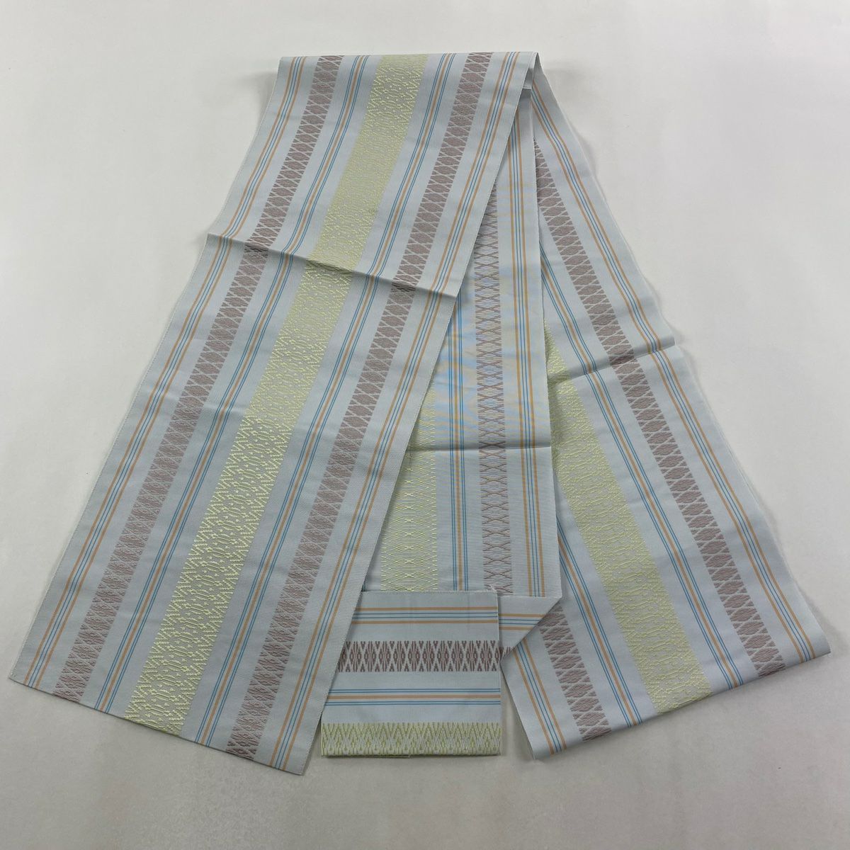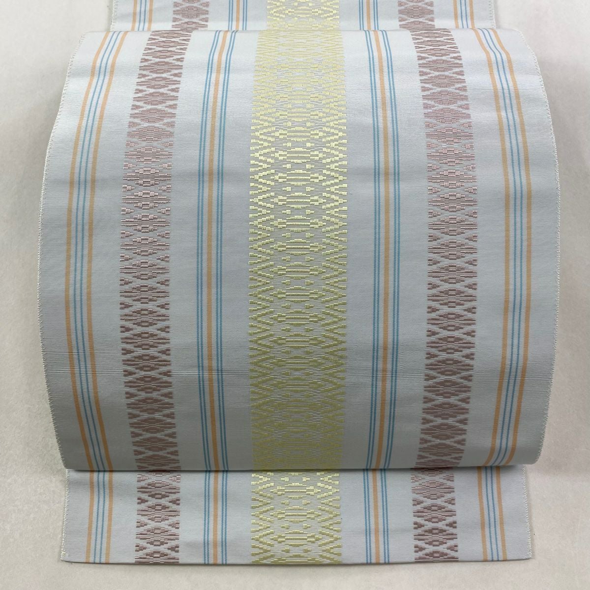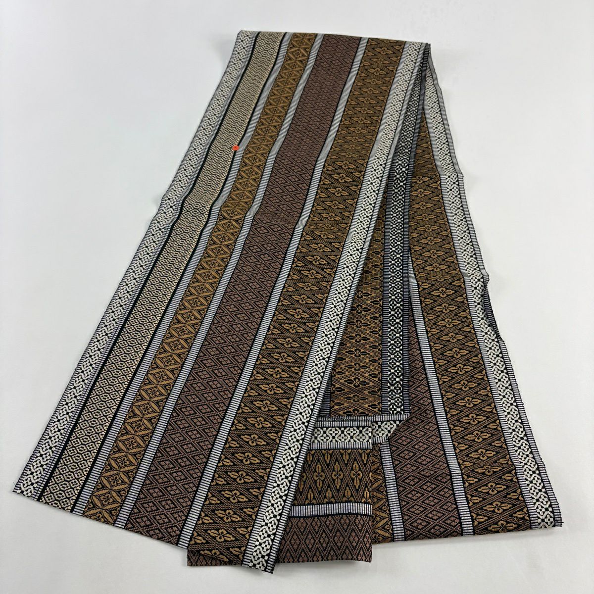 名古屋帯 逸品 八寸名古屋帯 松葉仕立て 有職文様 縞 薄茶色 正絹