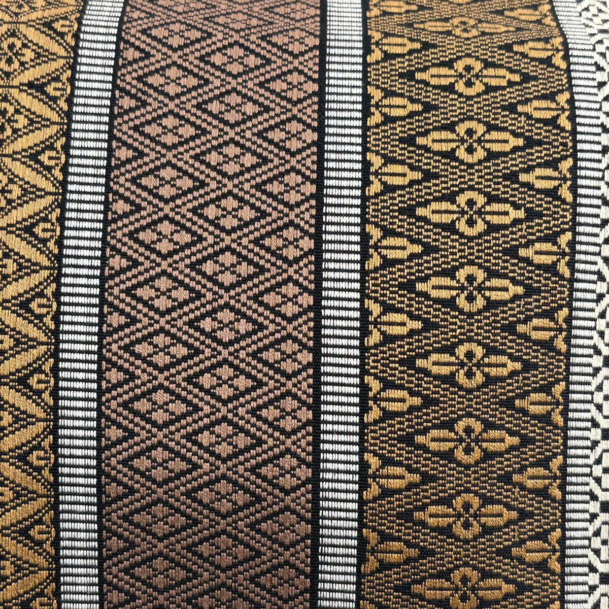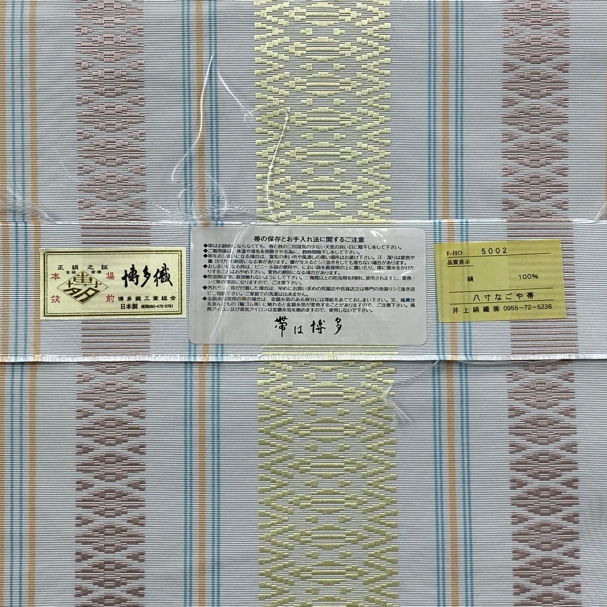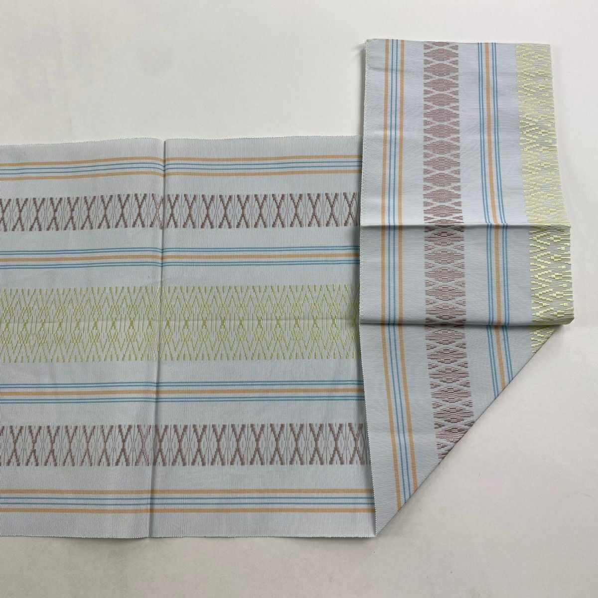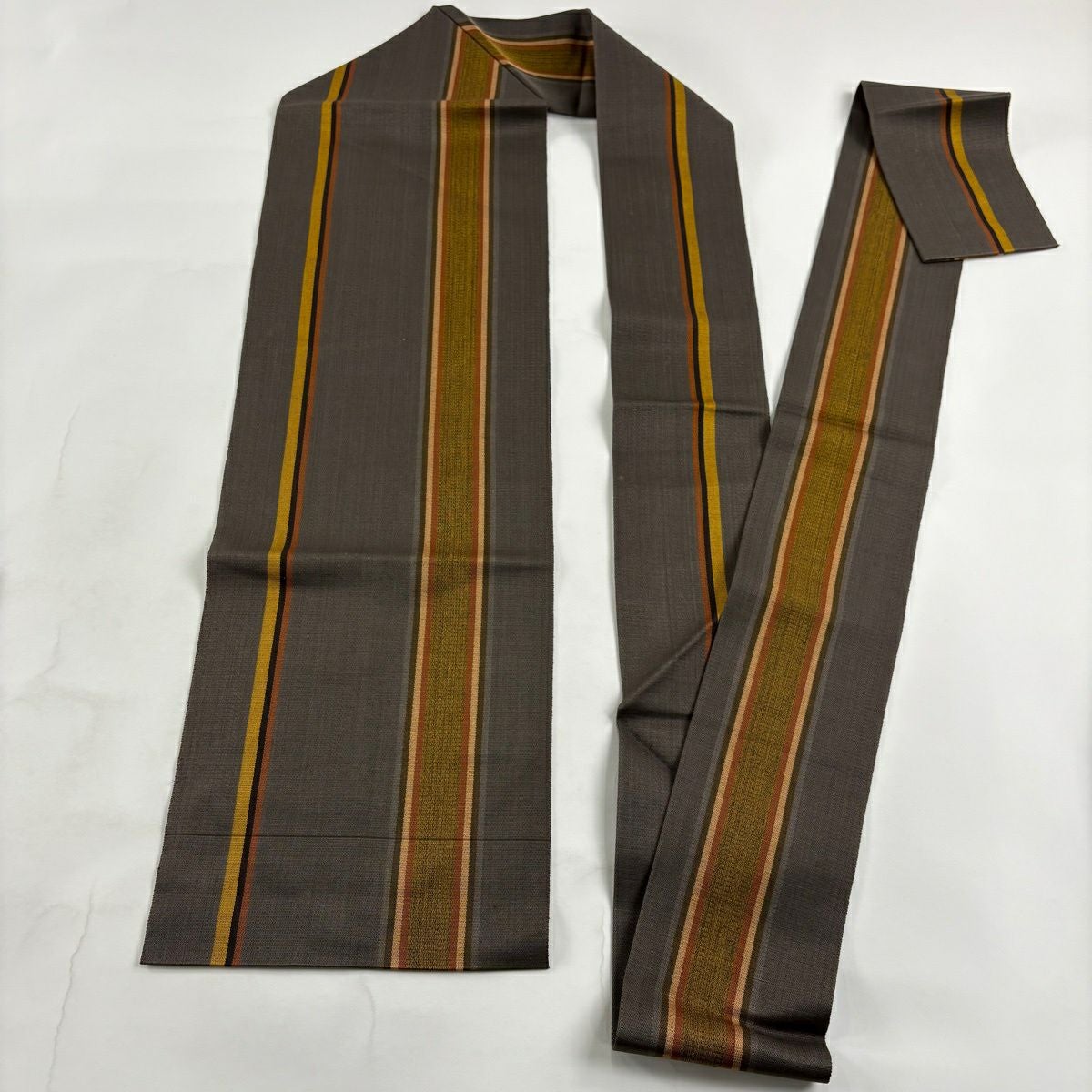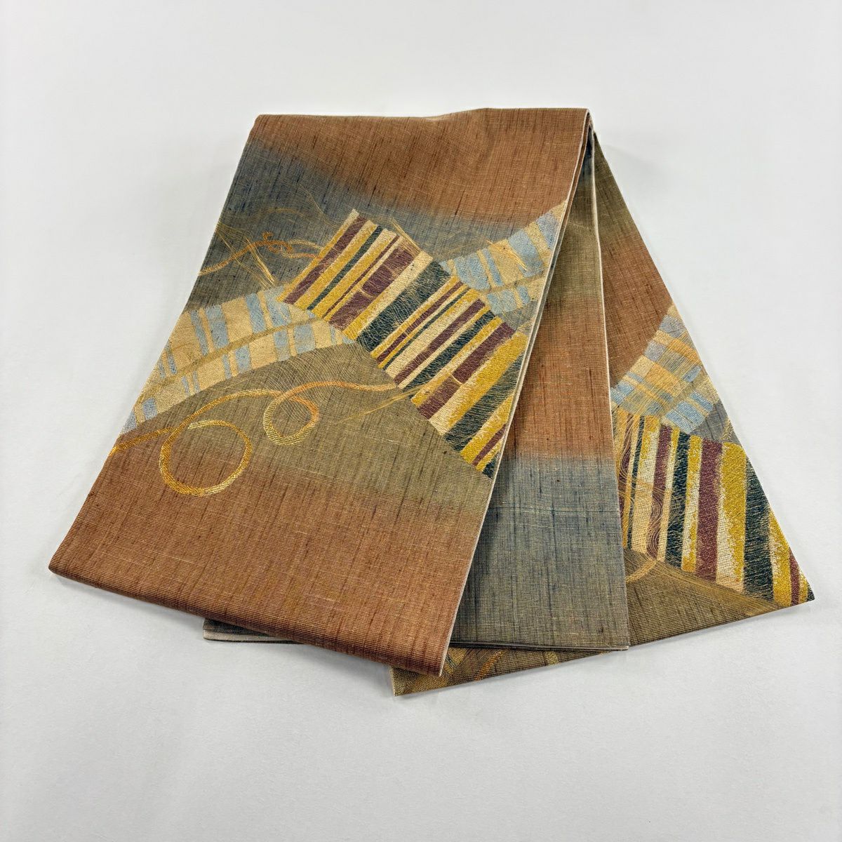 名古屋帯 逸品 八寸名古屋帯 松葉仕立て 有職文様 縞 薄茶色 正絹