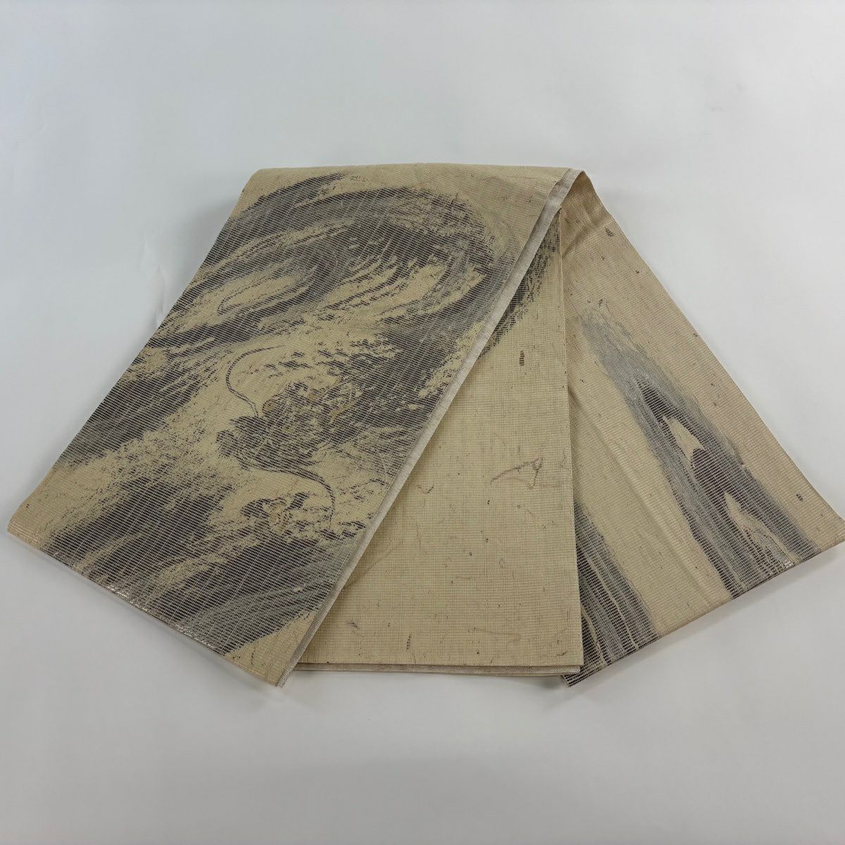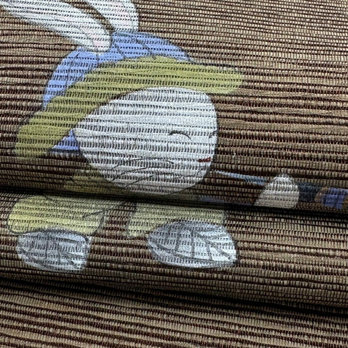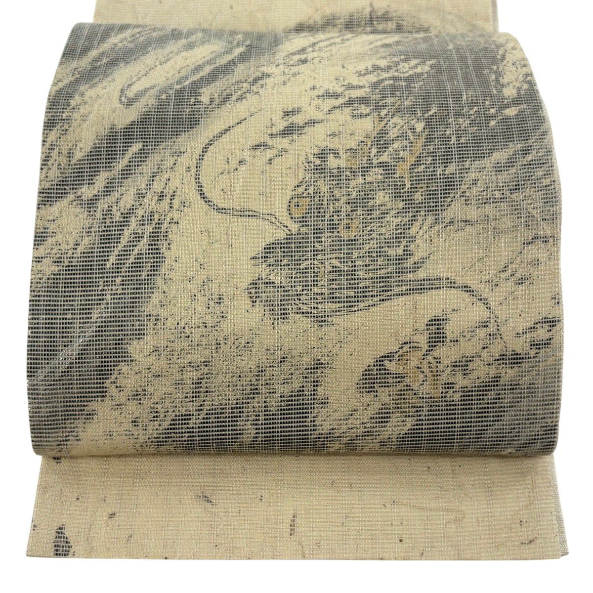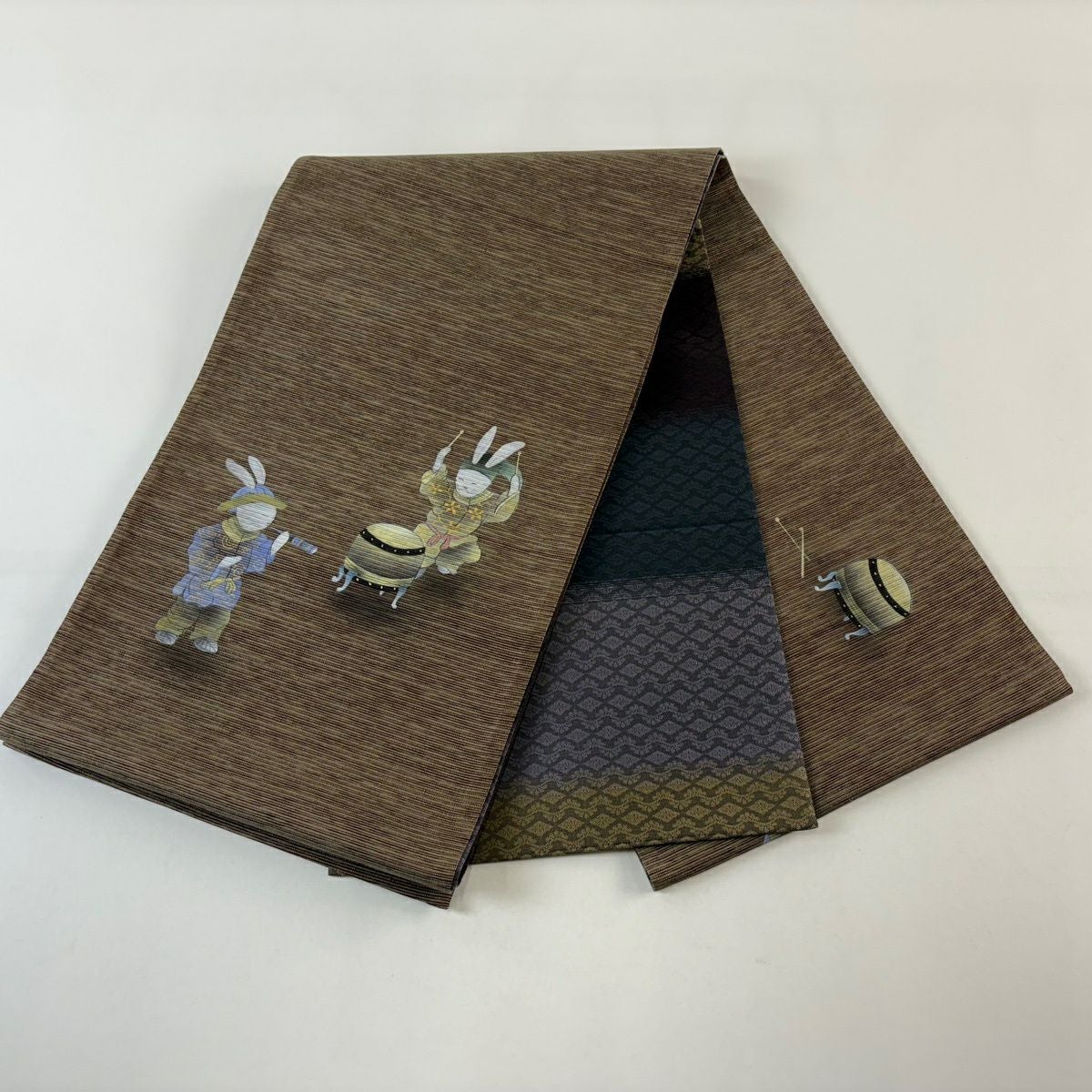 【美品】 名古屋帯 逸品 落款あり 鳥獣戯画 箔 薄茶色 正絹