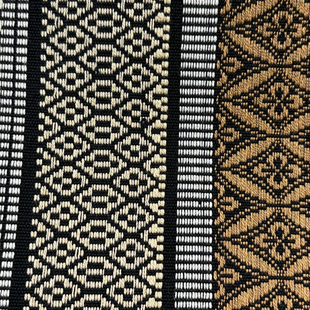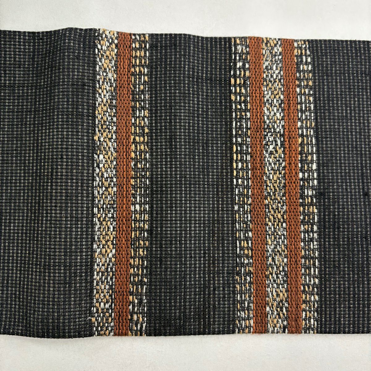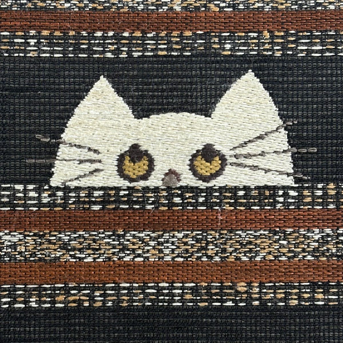 【美品】 名古屋帯 逸品 夏帯 猫 縞 刺繍 金彩 黒灰 正絹