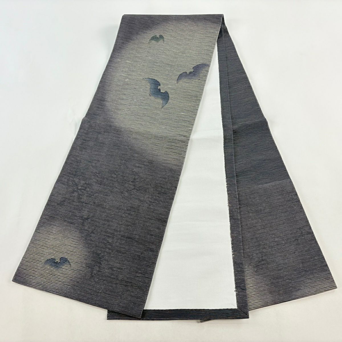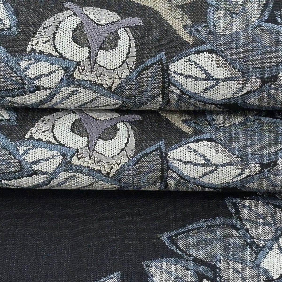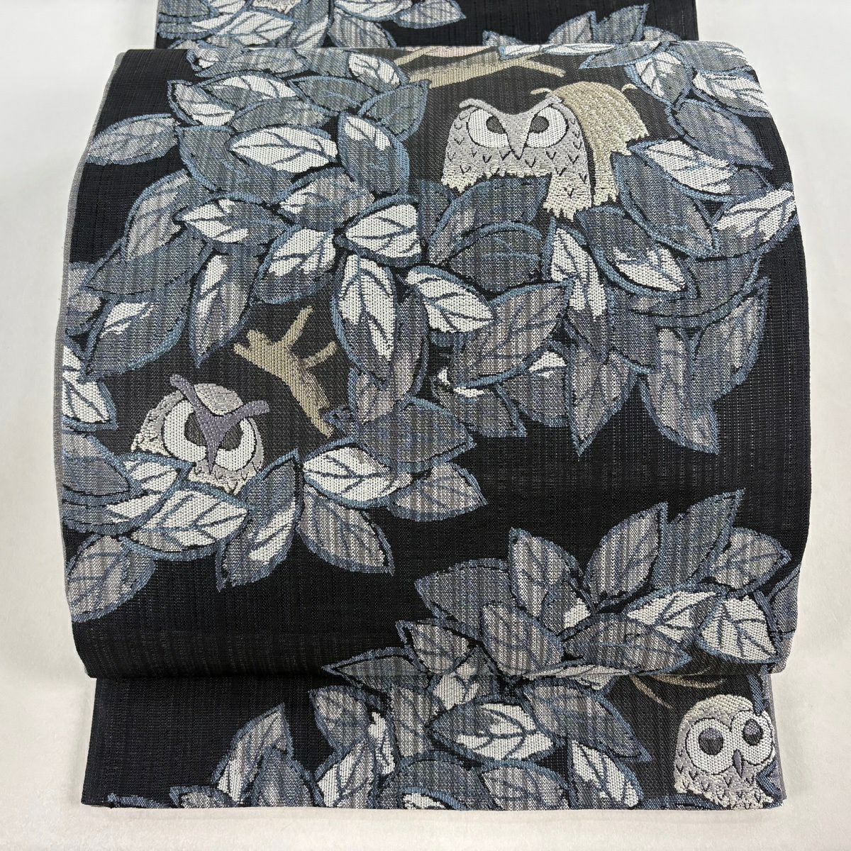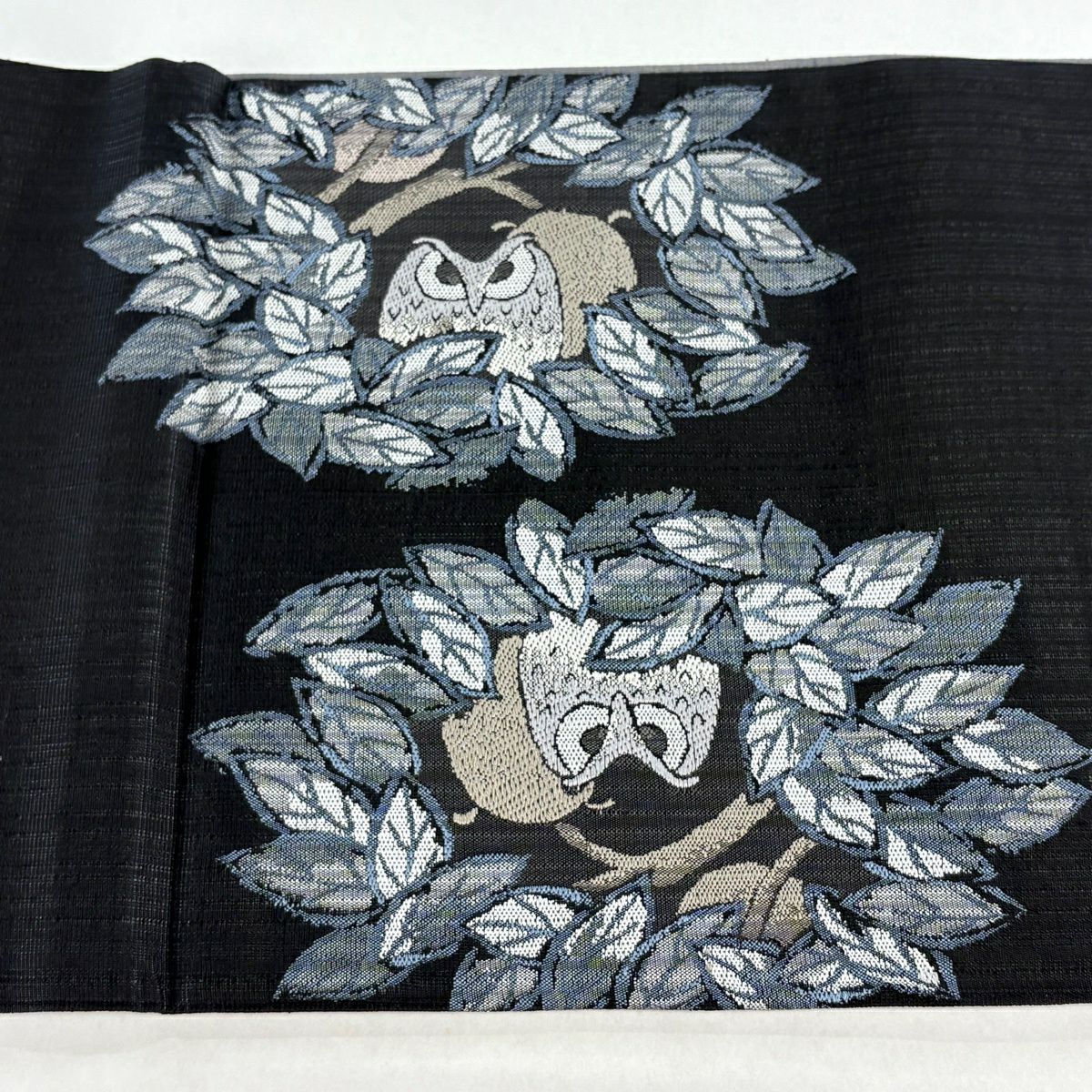 【美品】 袋帯 逸品 フクロウ 枝葉 箔 墨色 お太鼓柄 正絹