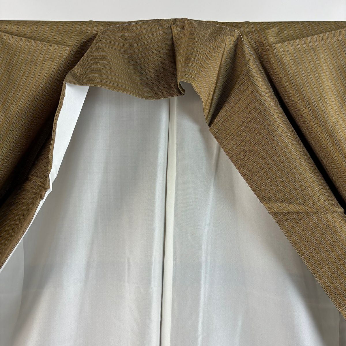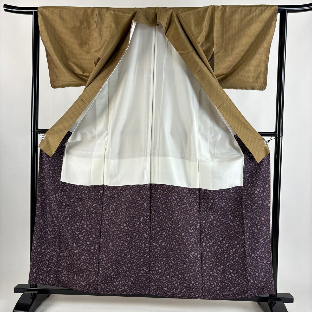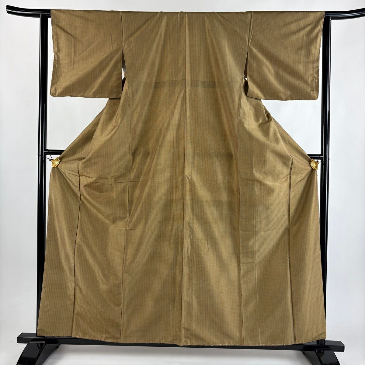 紬 身丈160cm 裄丈62cm S 袷 格子 茶色 正絹 逸品