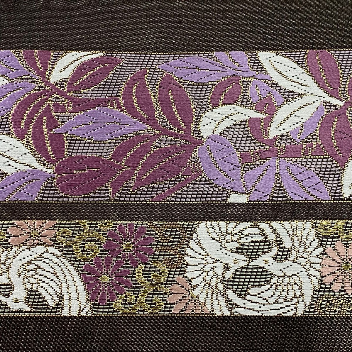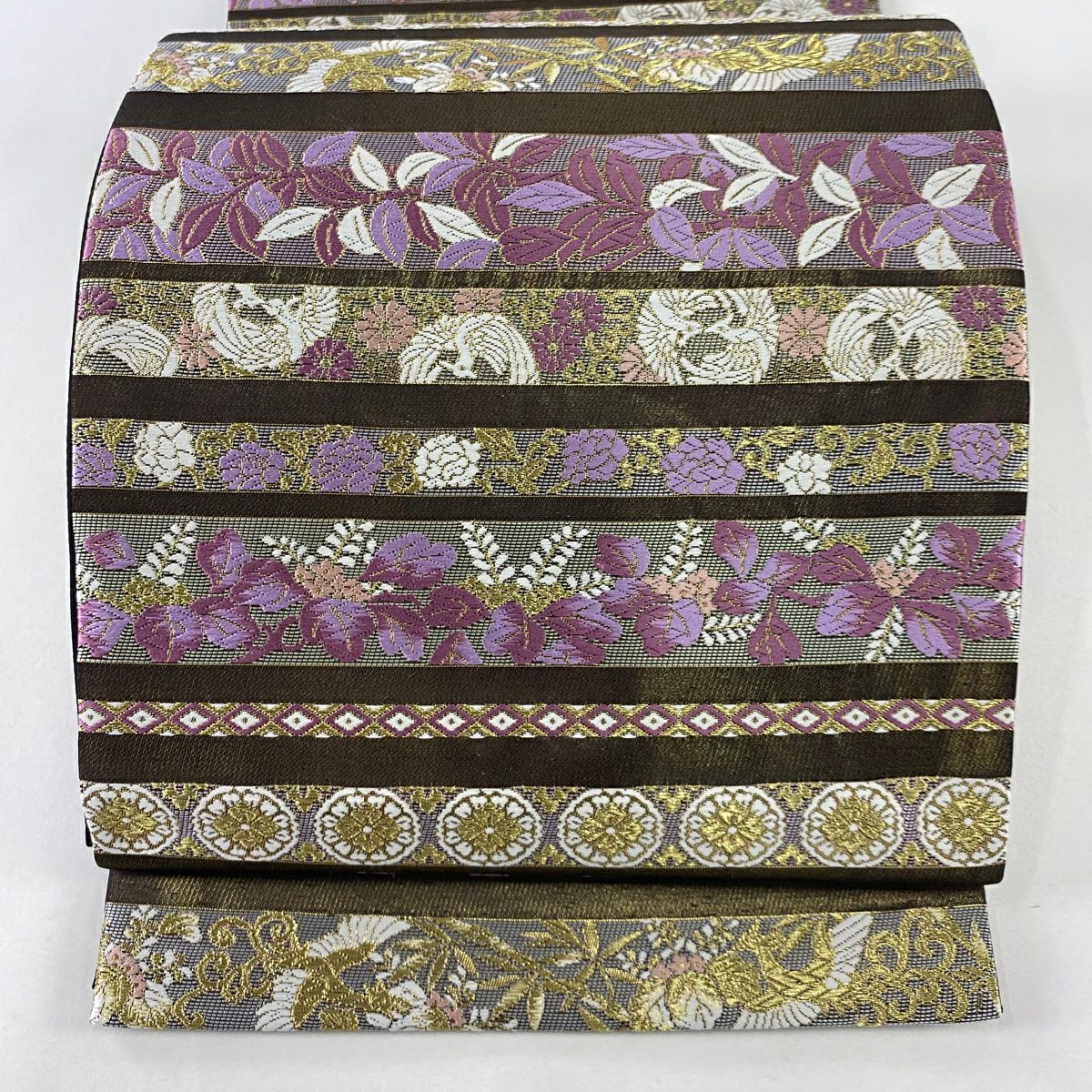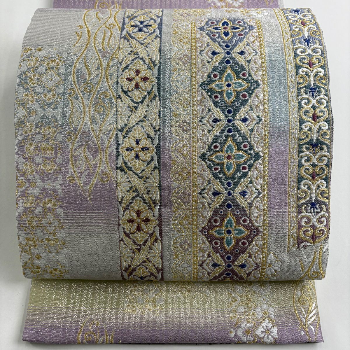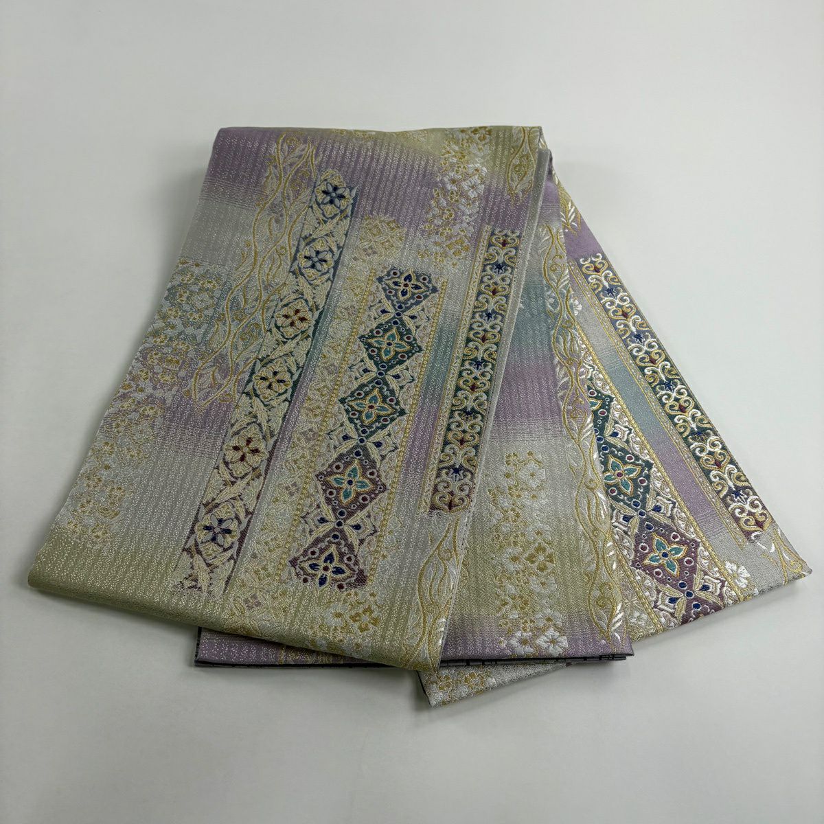 【美品】 袋帯 逸品 草花 有職文様 金銀糸 薄紫 お太鼓柄 正絹