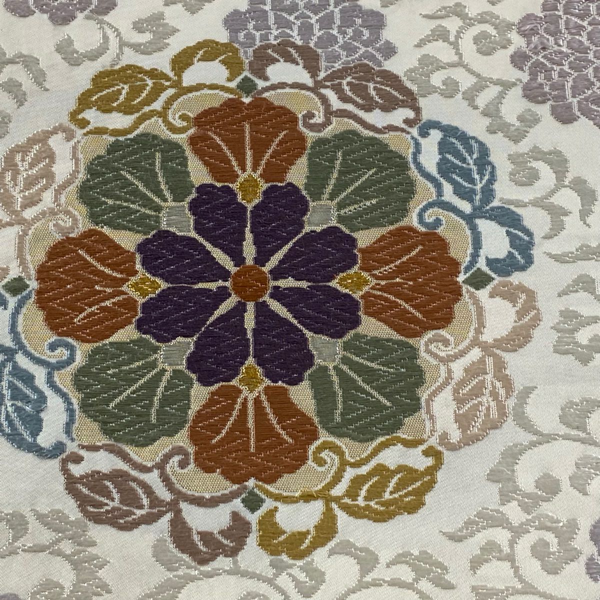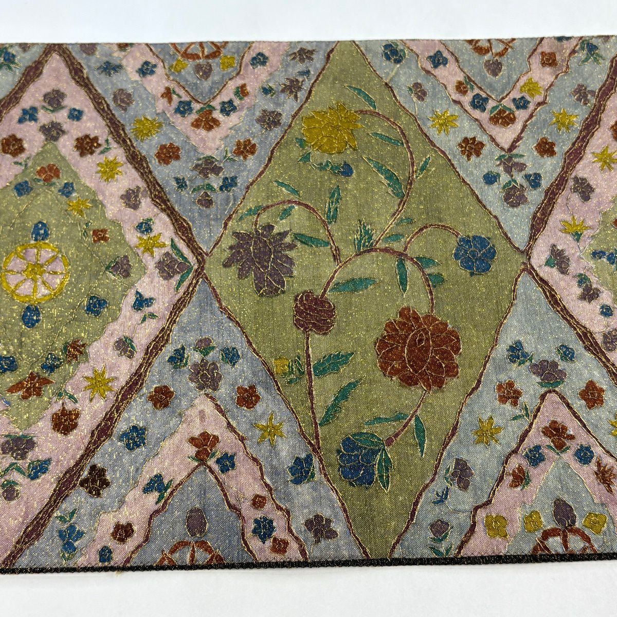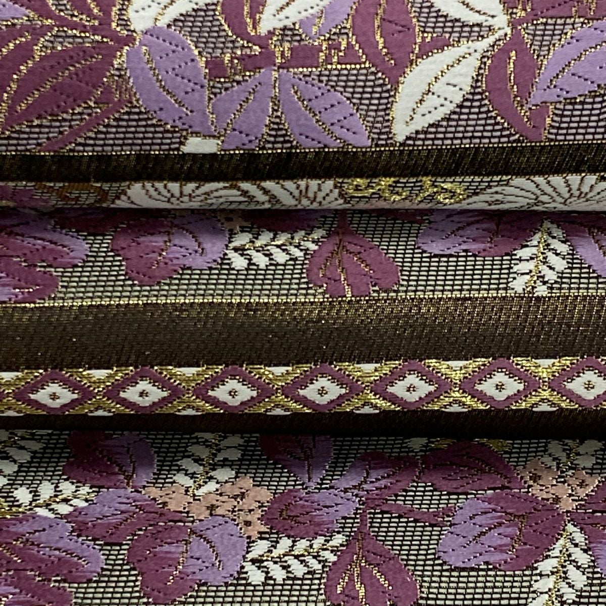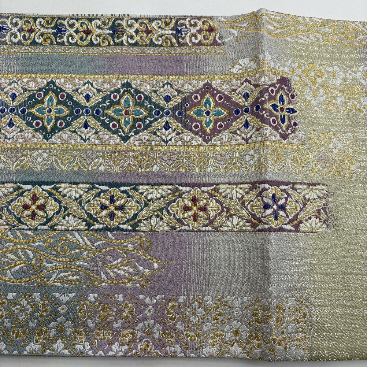 【美品】 袋帯 逸品 草花 有職文様 金銀糸 薄紫 お太鼓柄 正絹