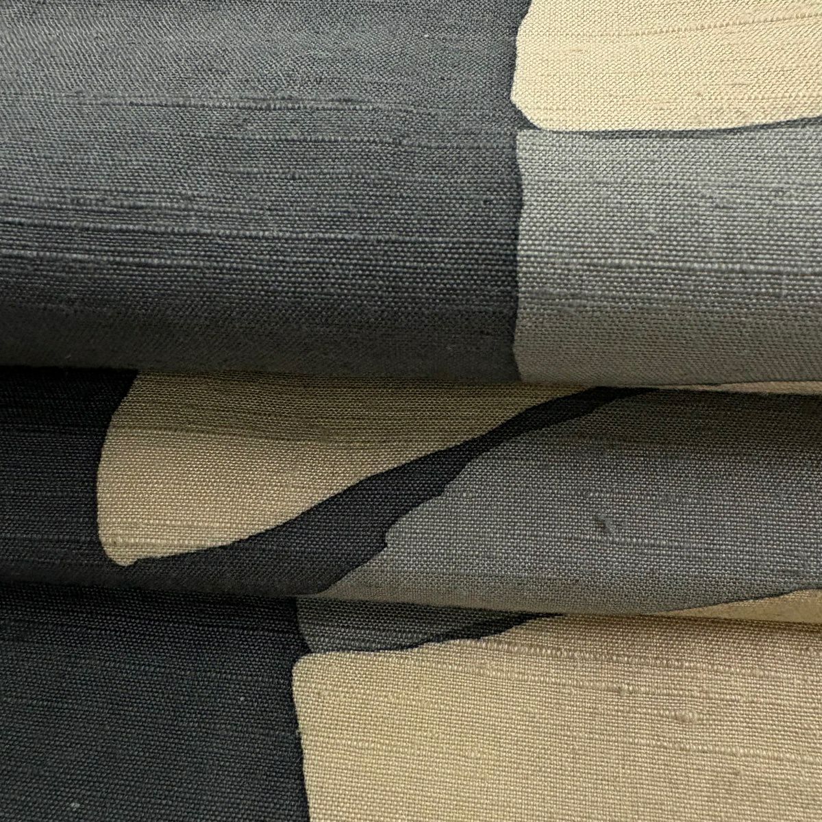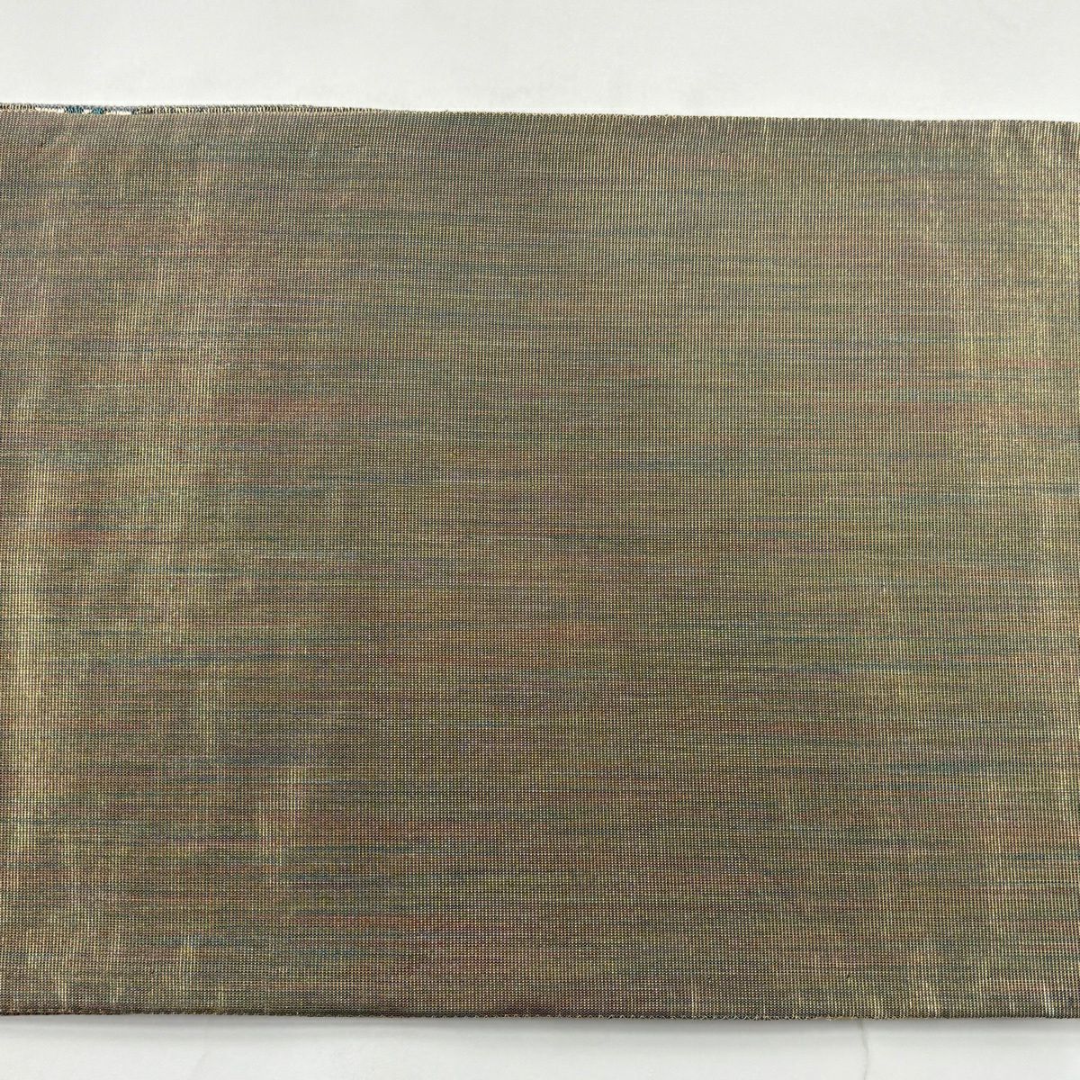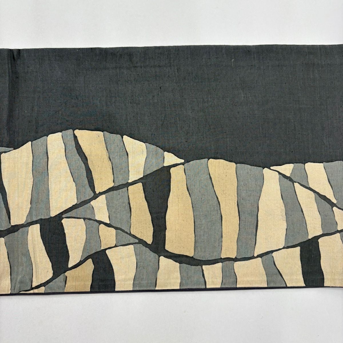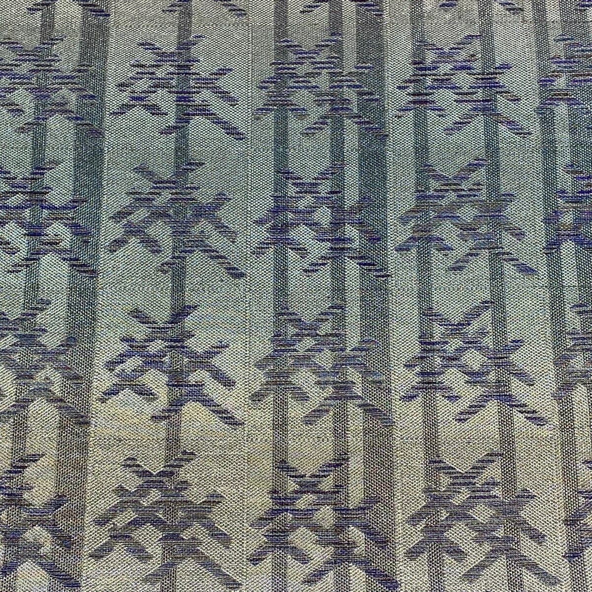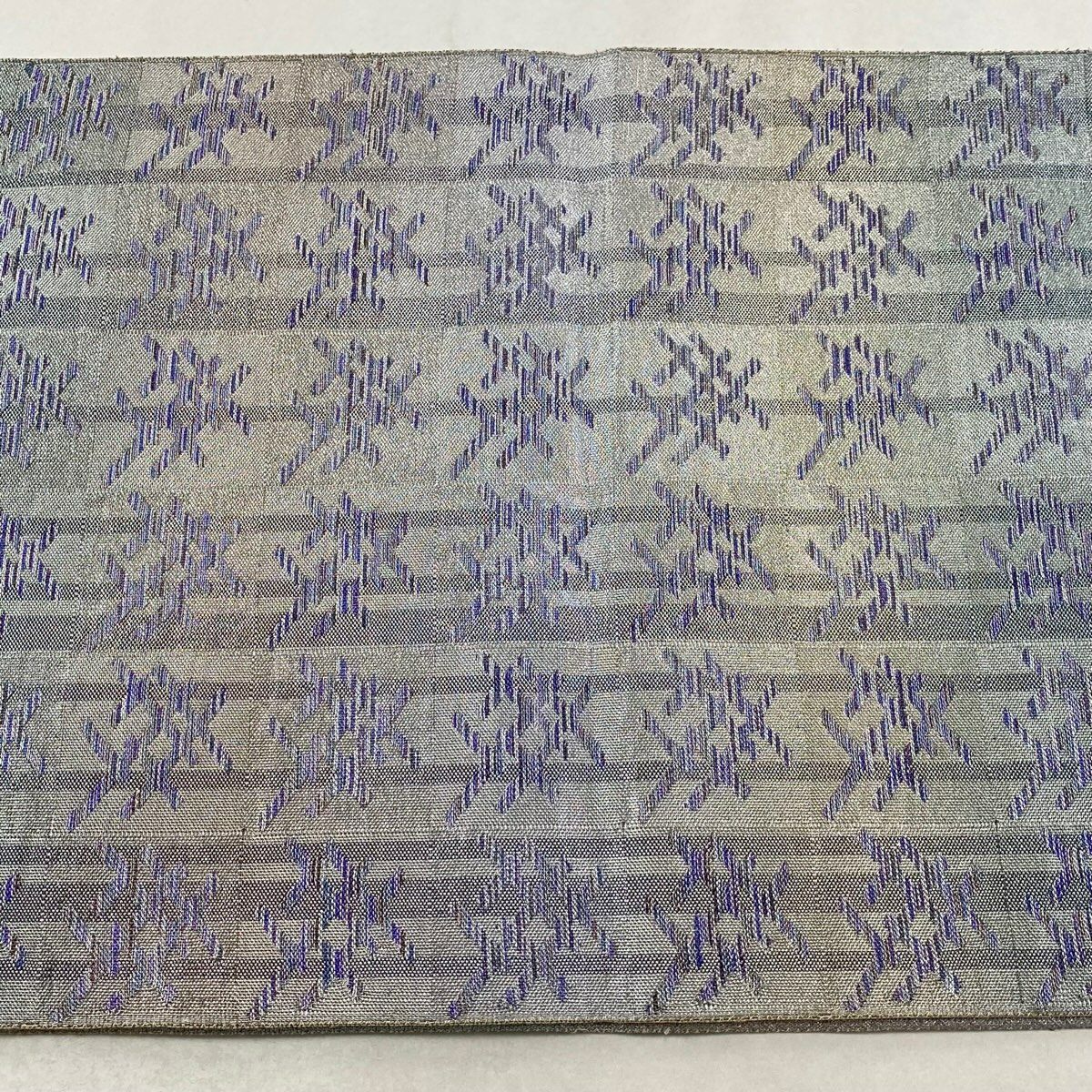 袋名古屋帯 逸品 洛楽人 落款あり 紬地 縞 幾何学 青灰色 正絹