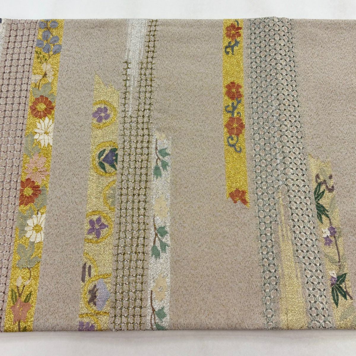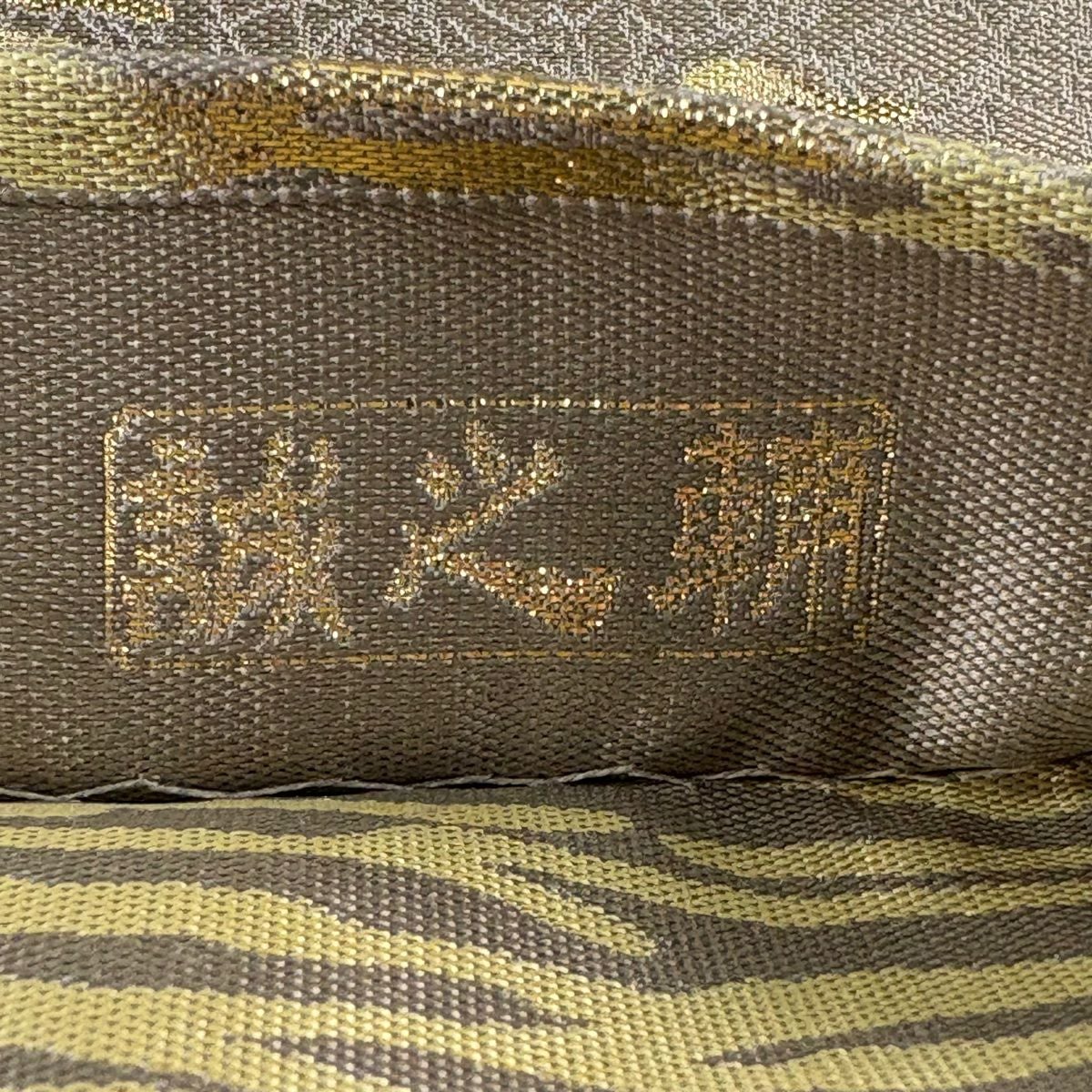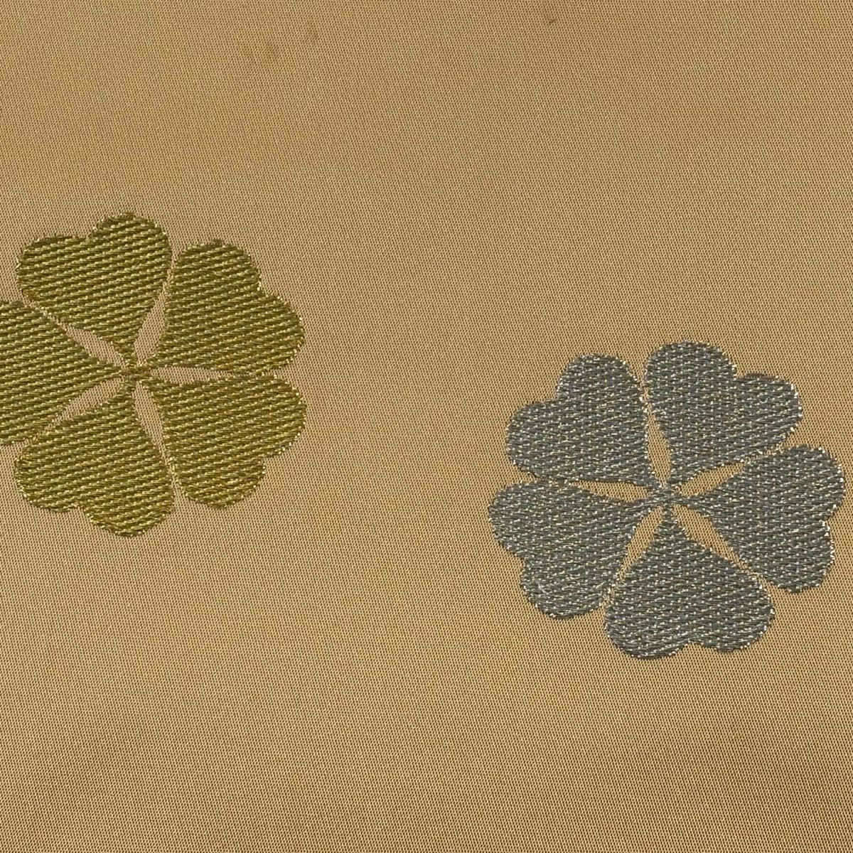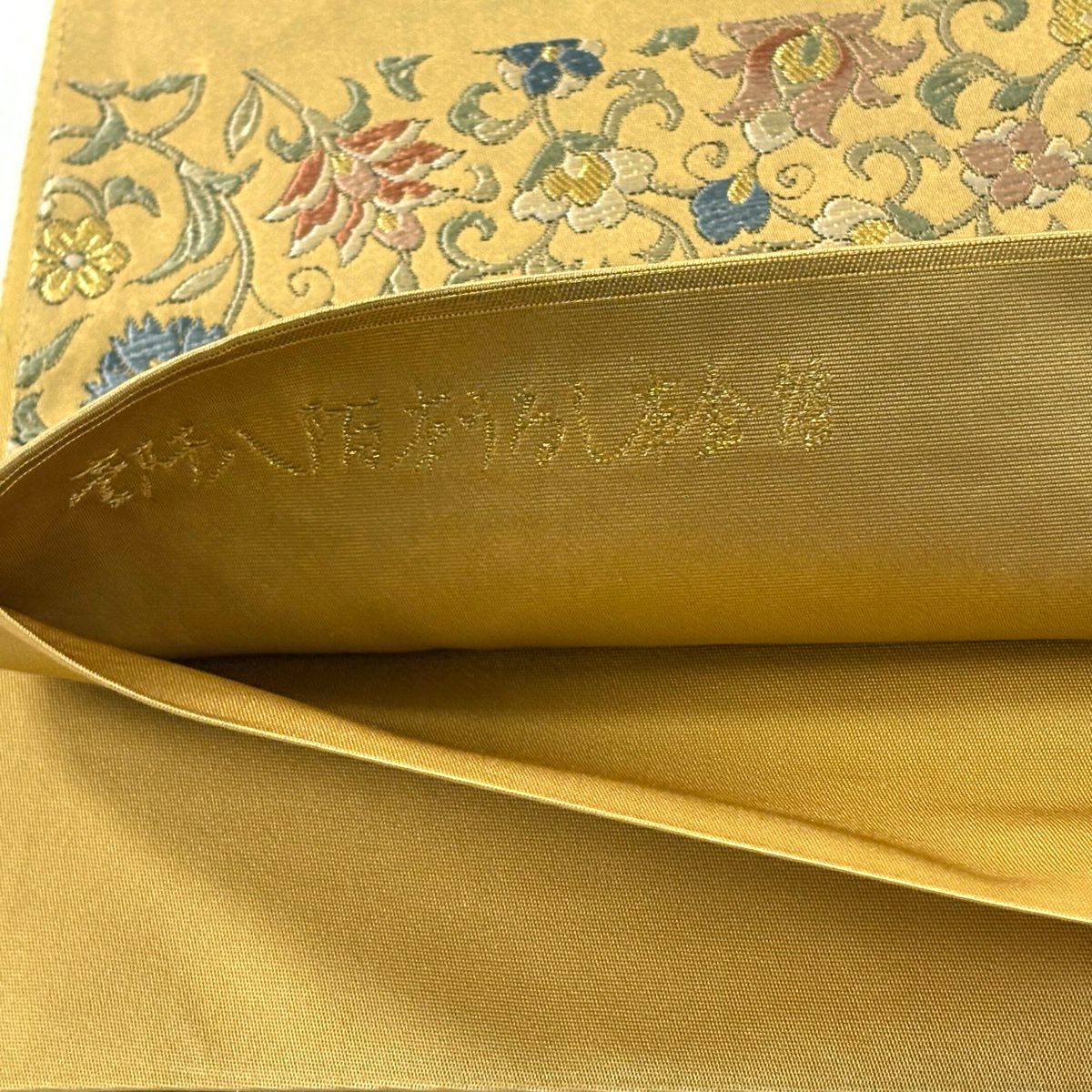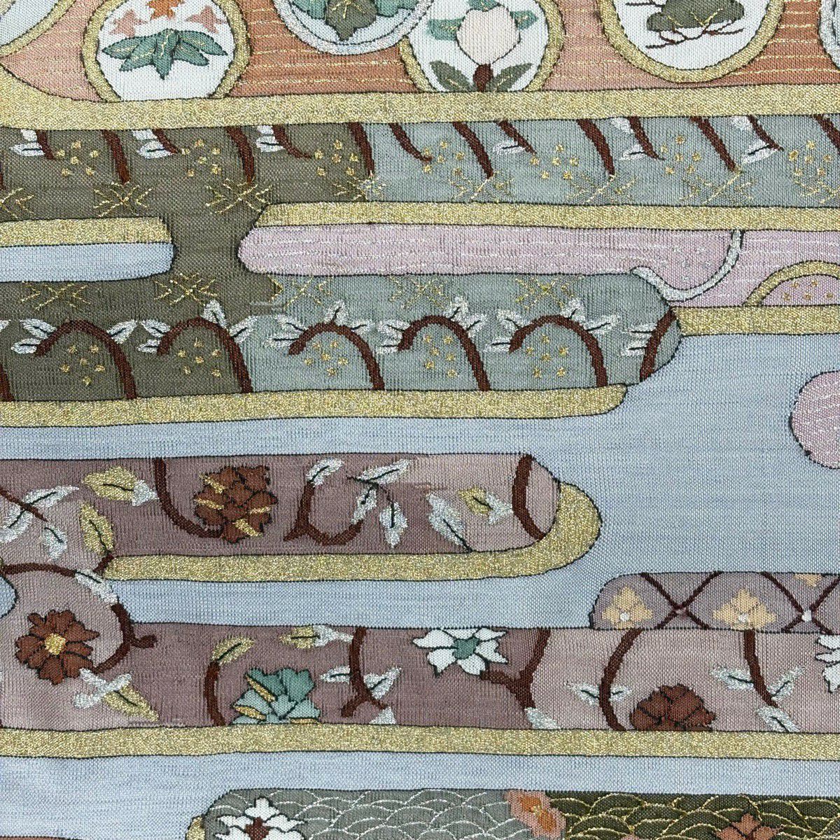 袋帯 逸品 龍村美術織物 落款あり 花 金銀糸 薄茶色 全通 正絹