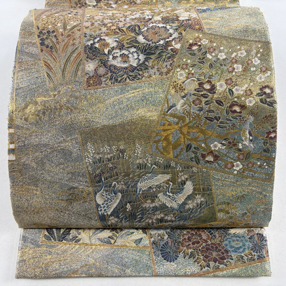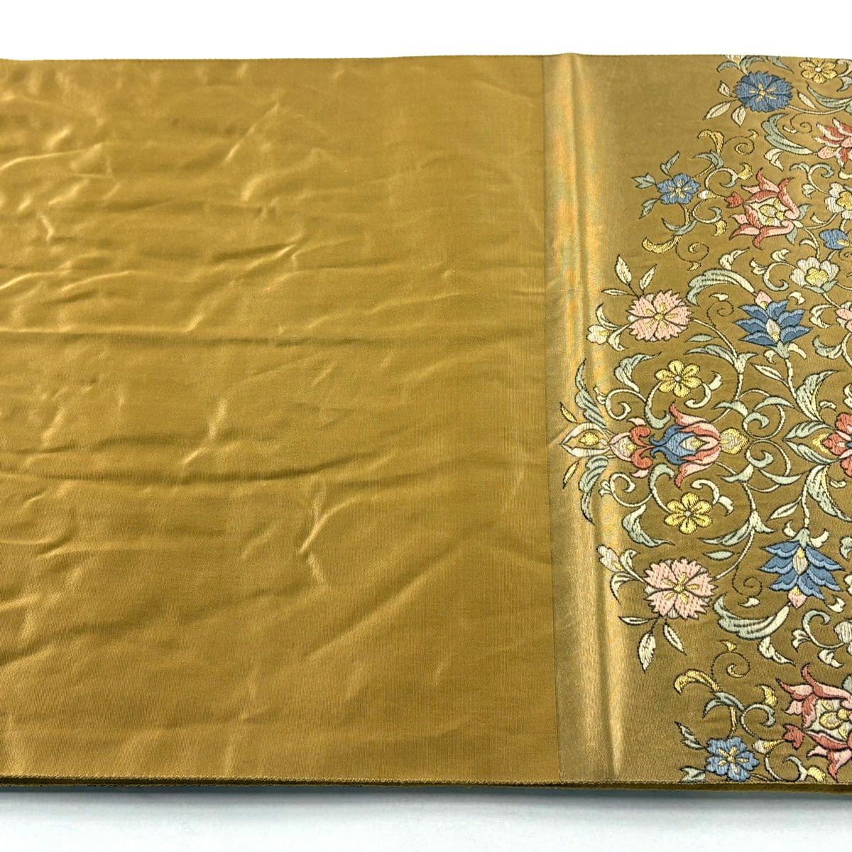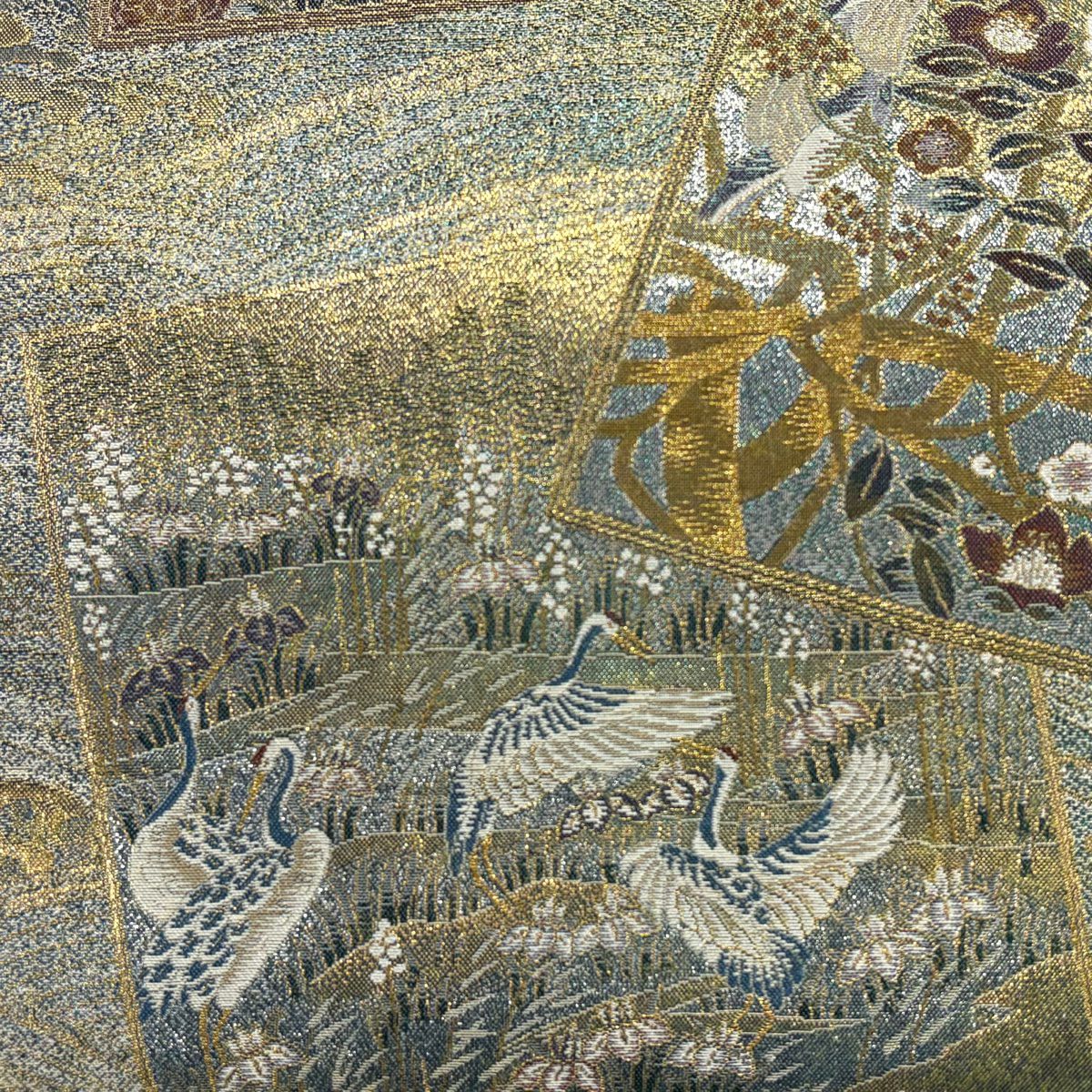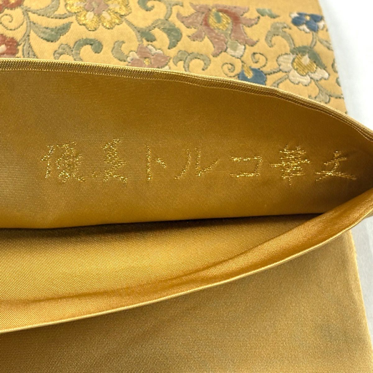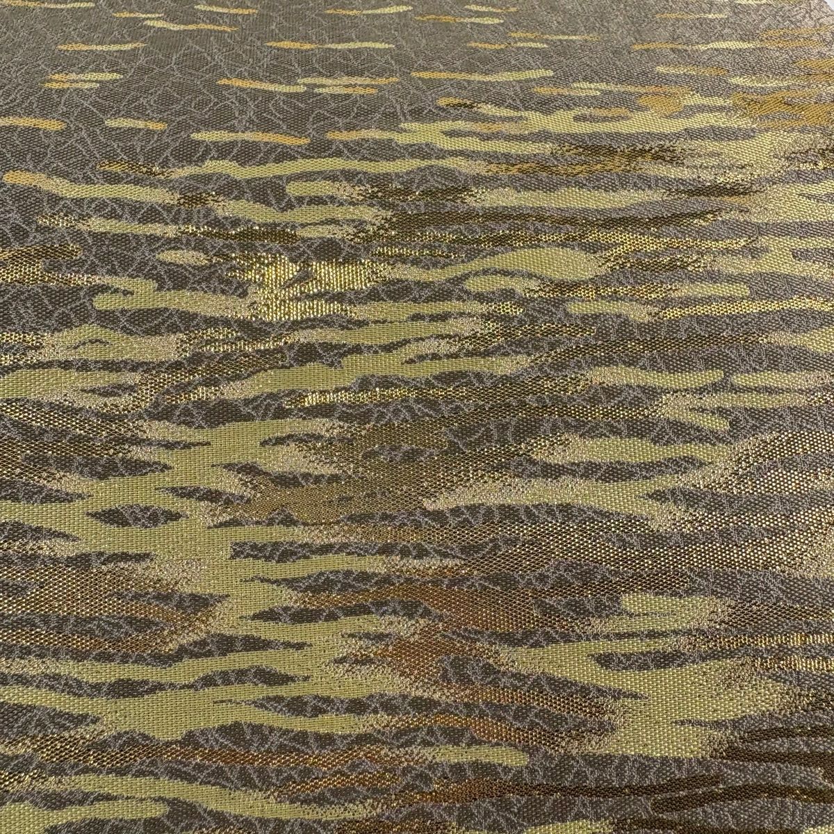 袋帯 逸品 龍村美術織物 落款あり 花 金銀糸 薄茶色 全通 正絹