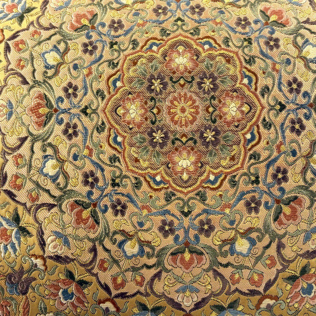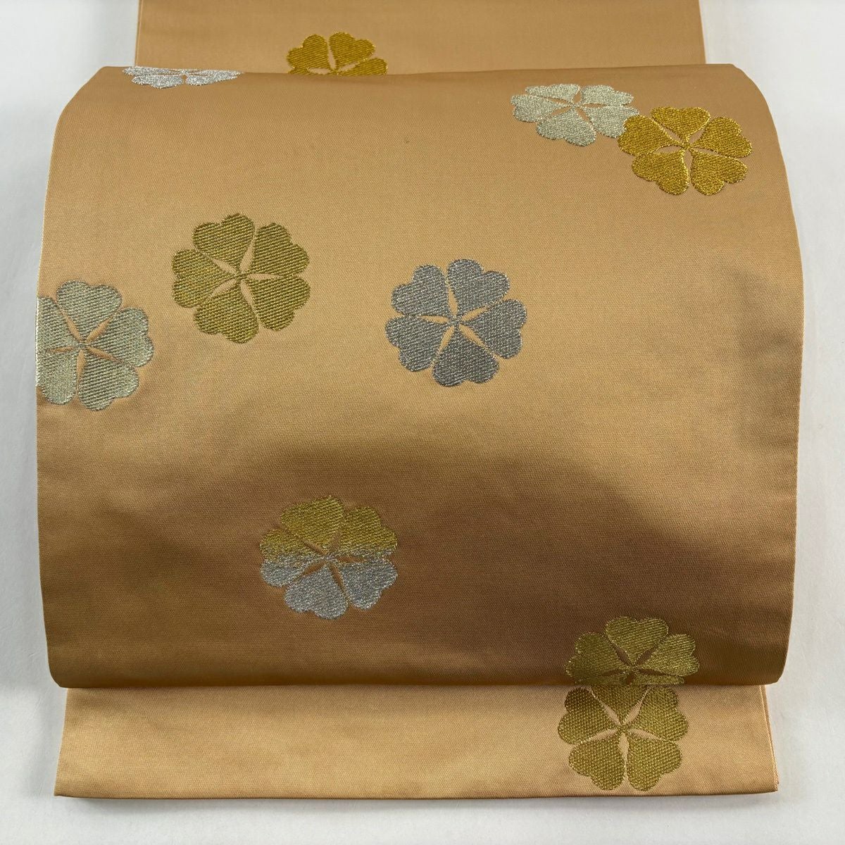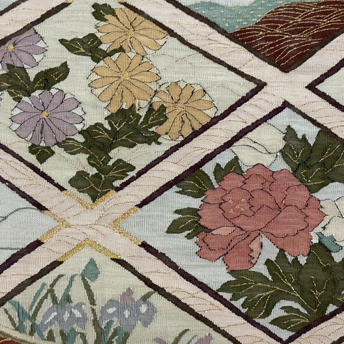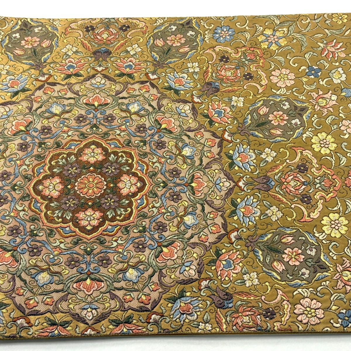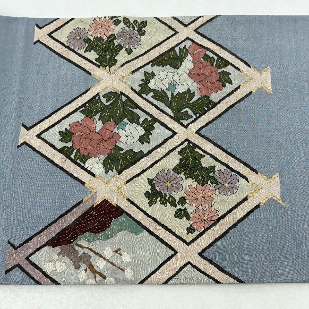 袋帯 逸品 龍村美術織物 落款あり 花 金銀糸 薄茶色 全通 正絹