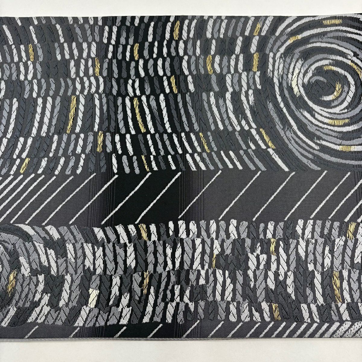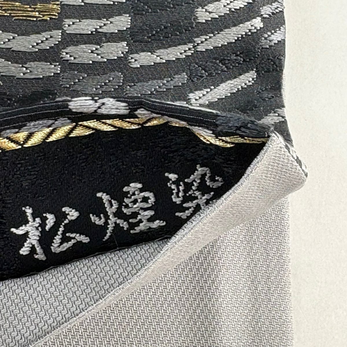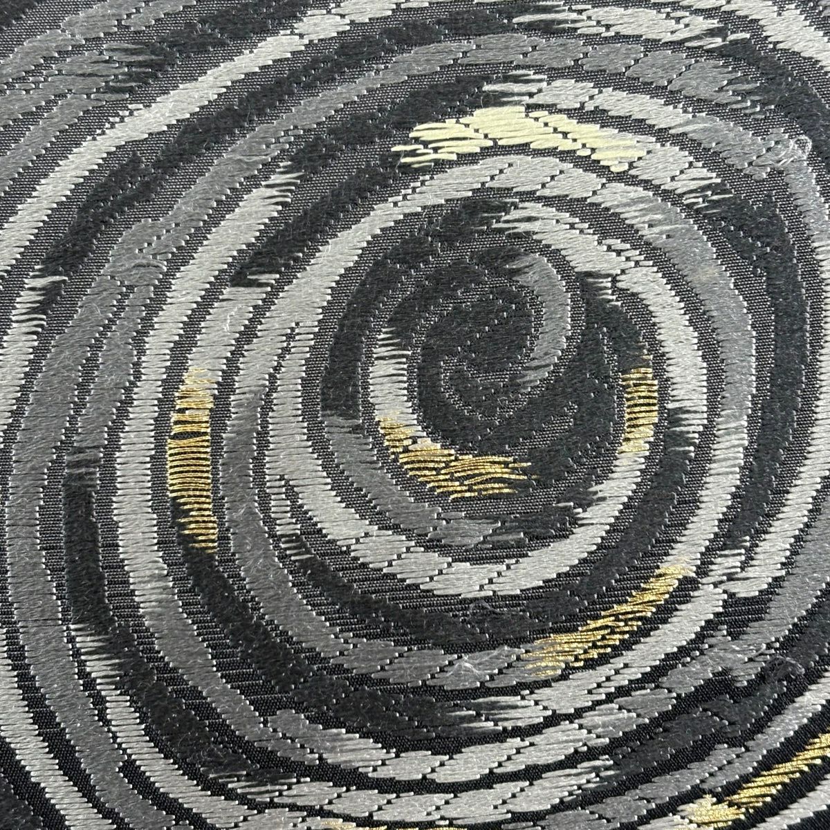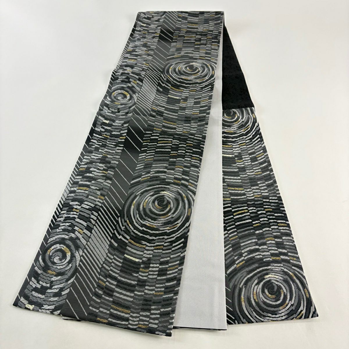 袋帯 逸品 新小石丸 渦巻き 斜縞 金糸 松煙染 灰色 六通 正絹