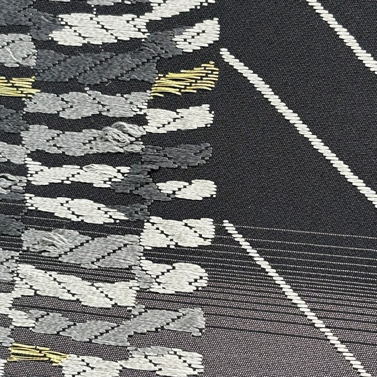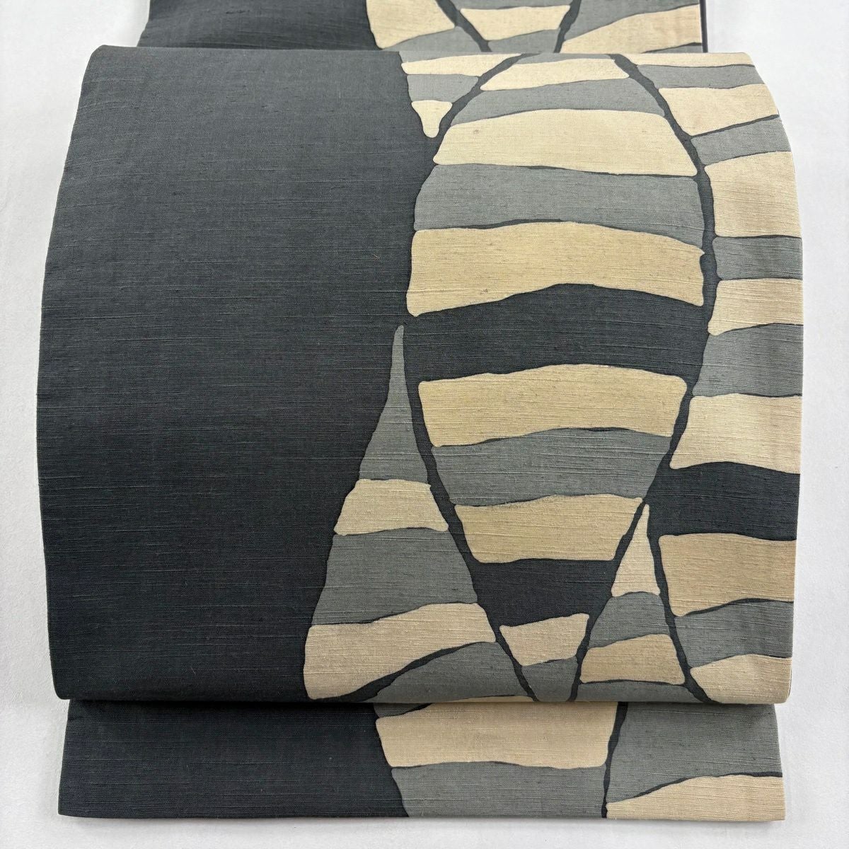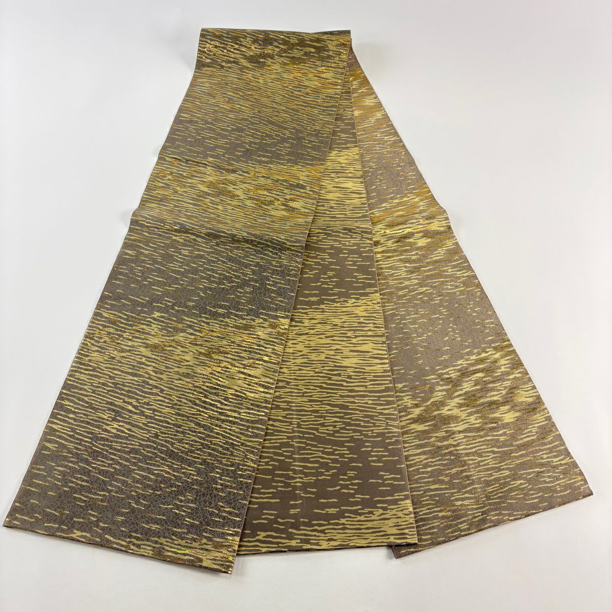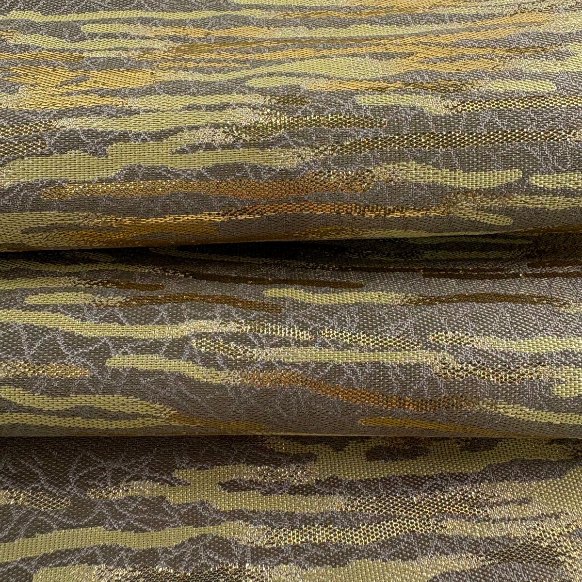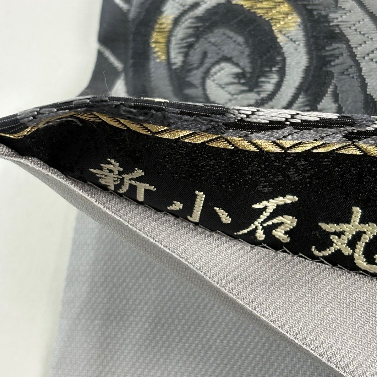 袋帯 逸品 新小石丸 渦巻き 斜縞 金糸 松煙染 灰色 六通 正絹