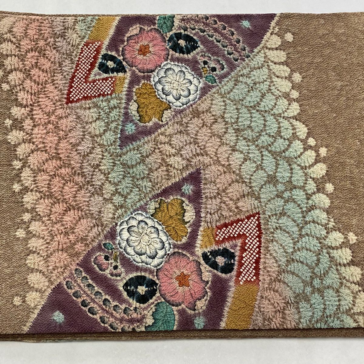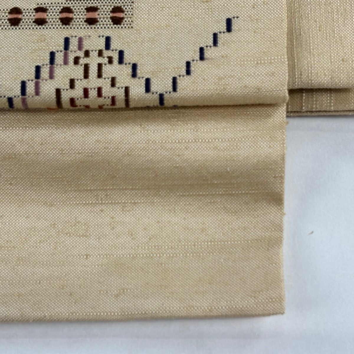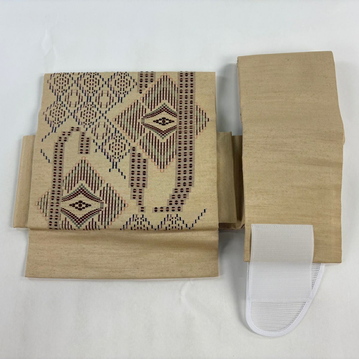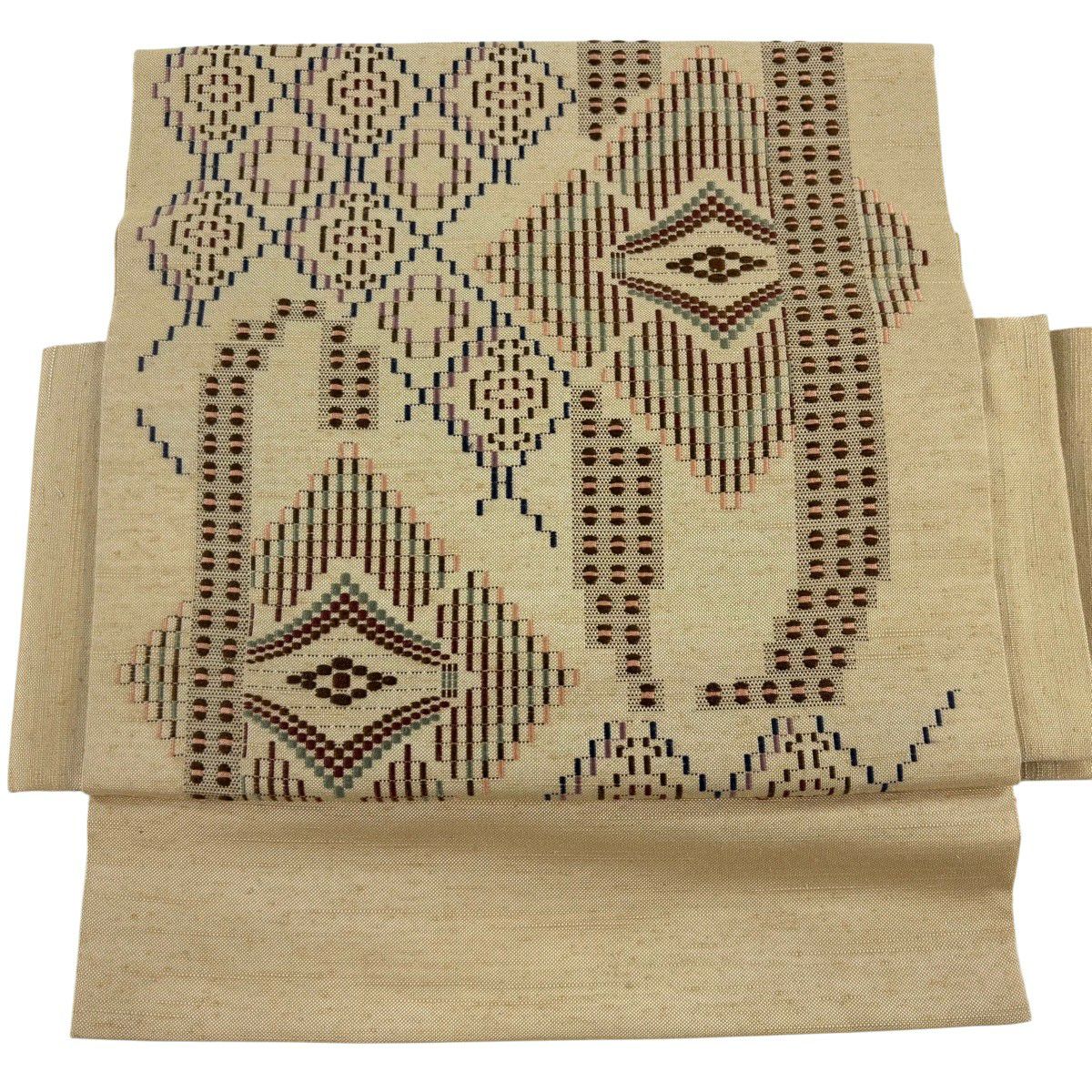 【美品】付け帯 逸品 作り帯 紬地 菱文 幾何学模様 薄茶色 正絹