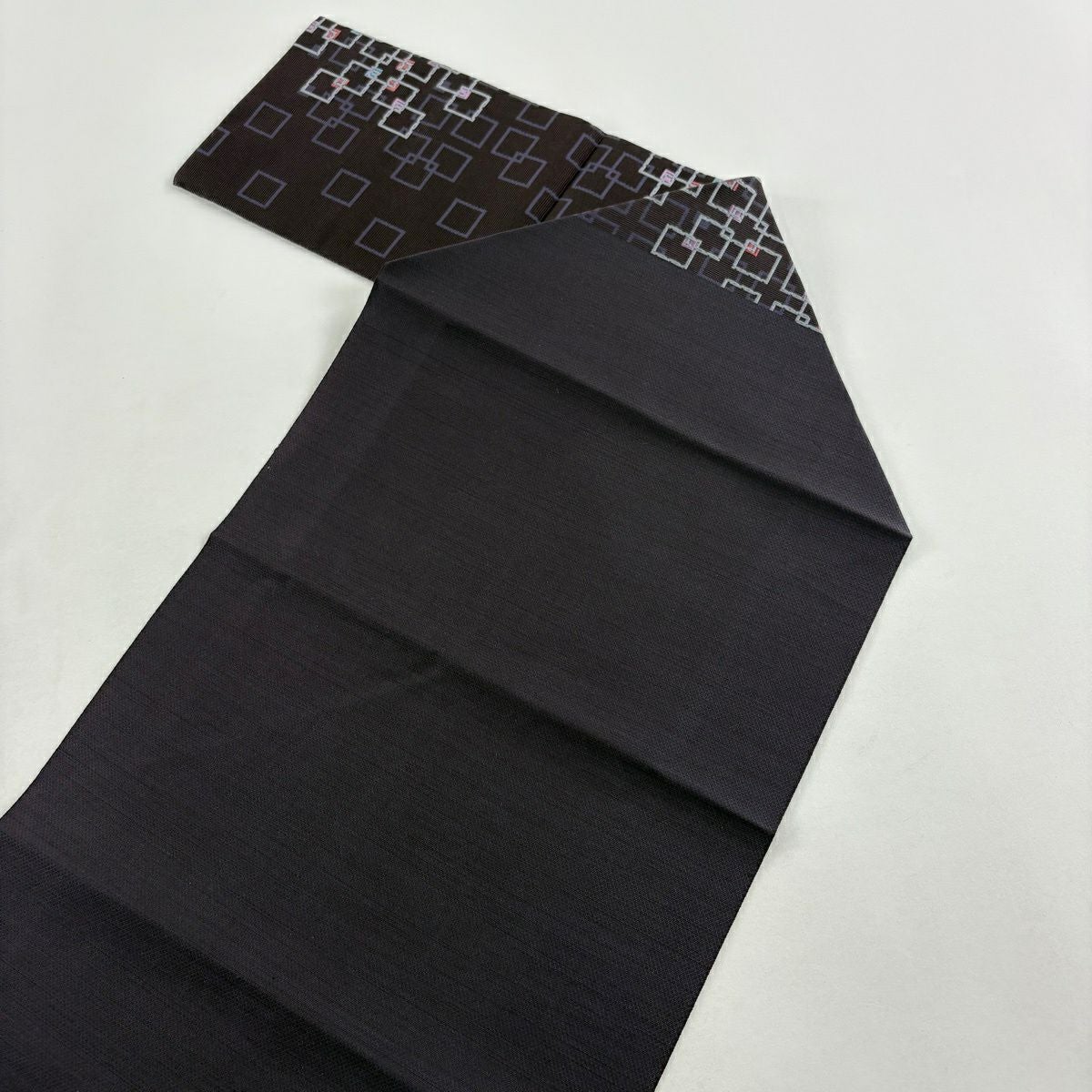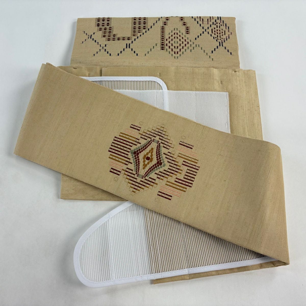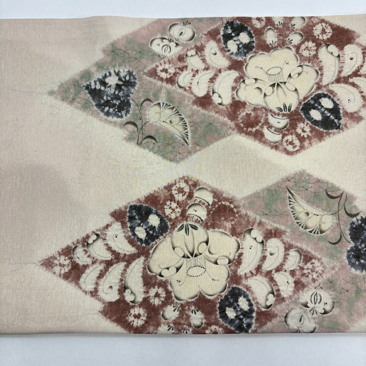 【美品】付け帯 逸品 作り帯 紬地 菱文 幾何学模様 薄茶色 正絹
