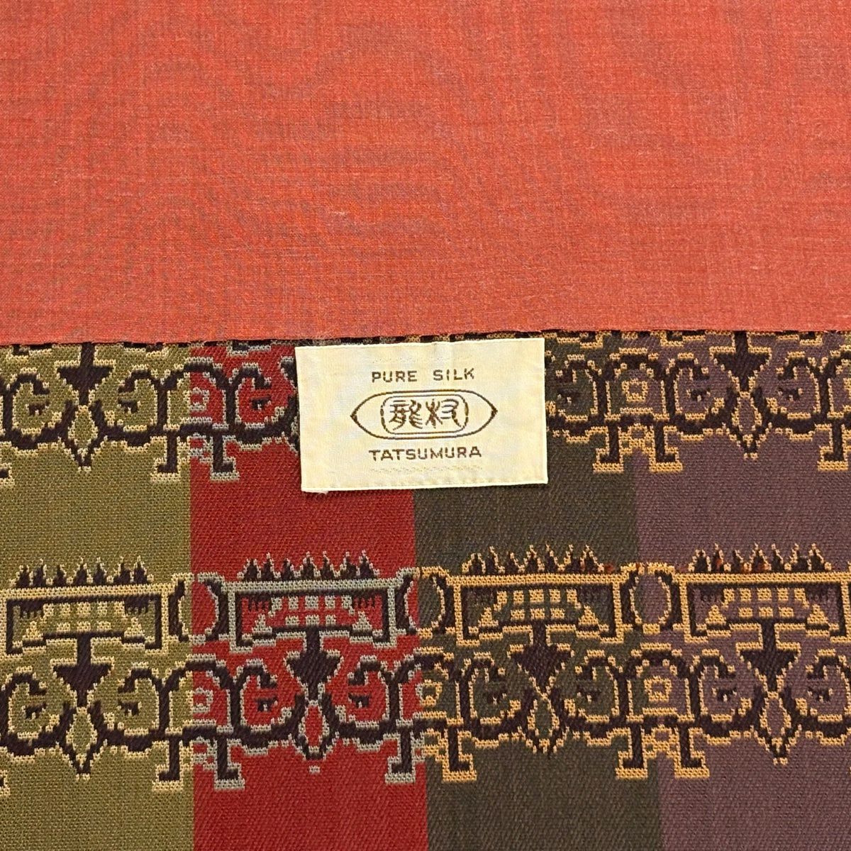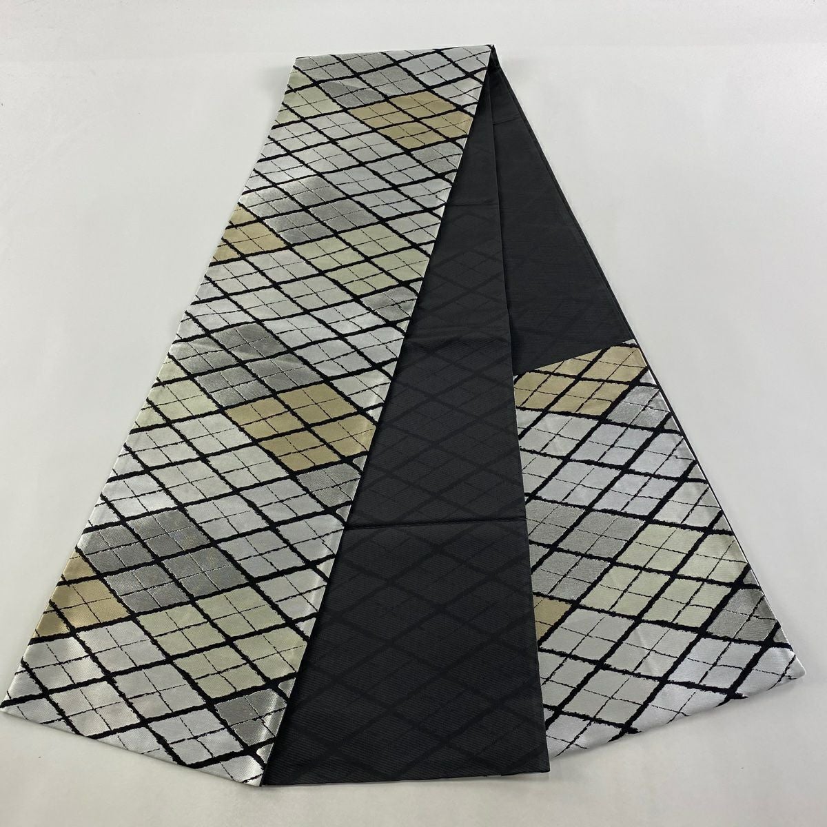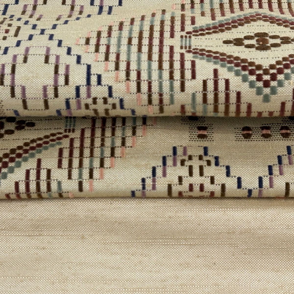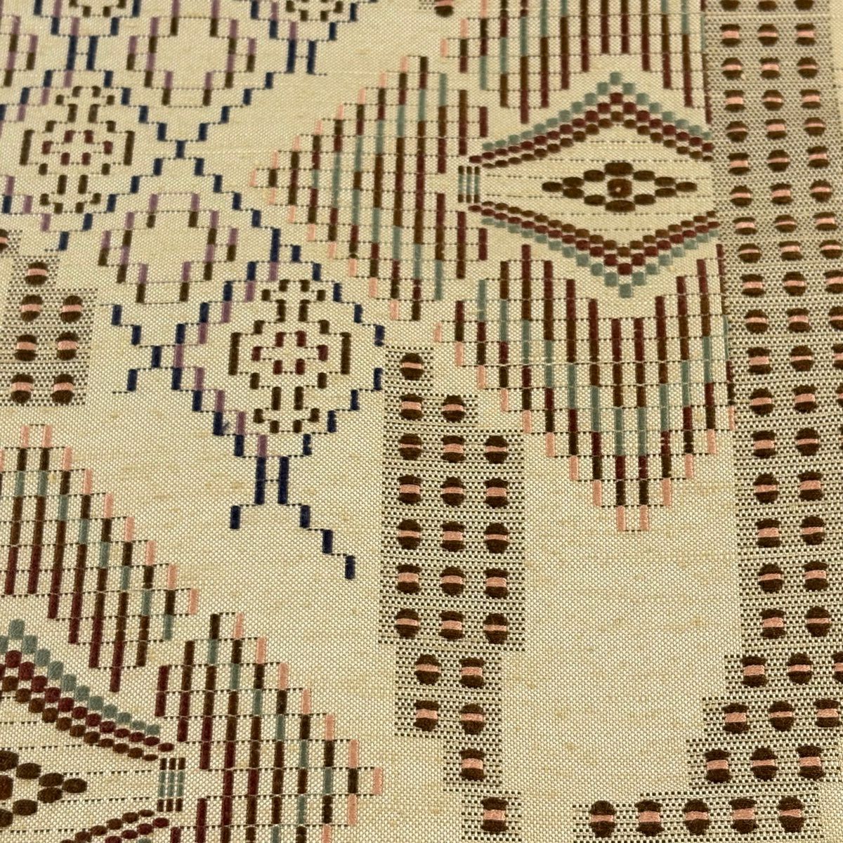 【美品】付け帯 逸品 作り帯 紬地 菱文 幾何学模様 薄茶色 正絹