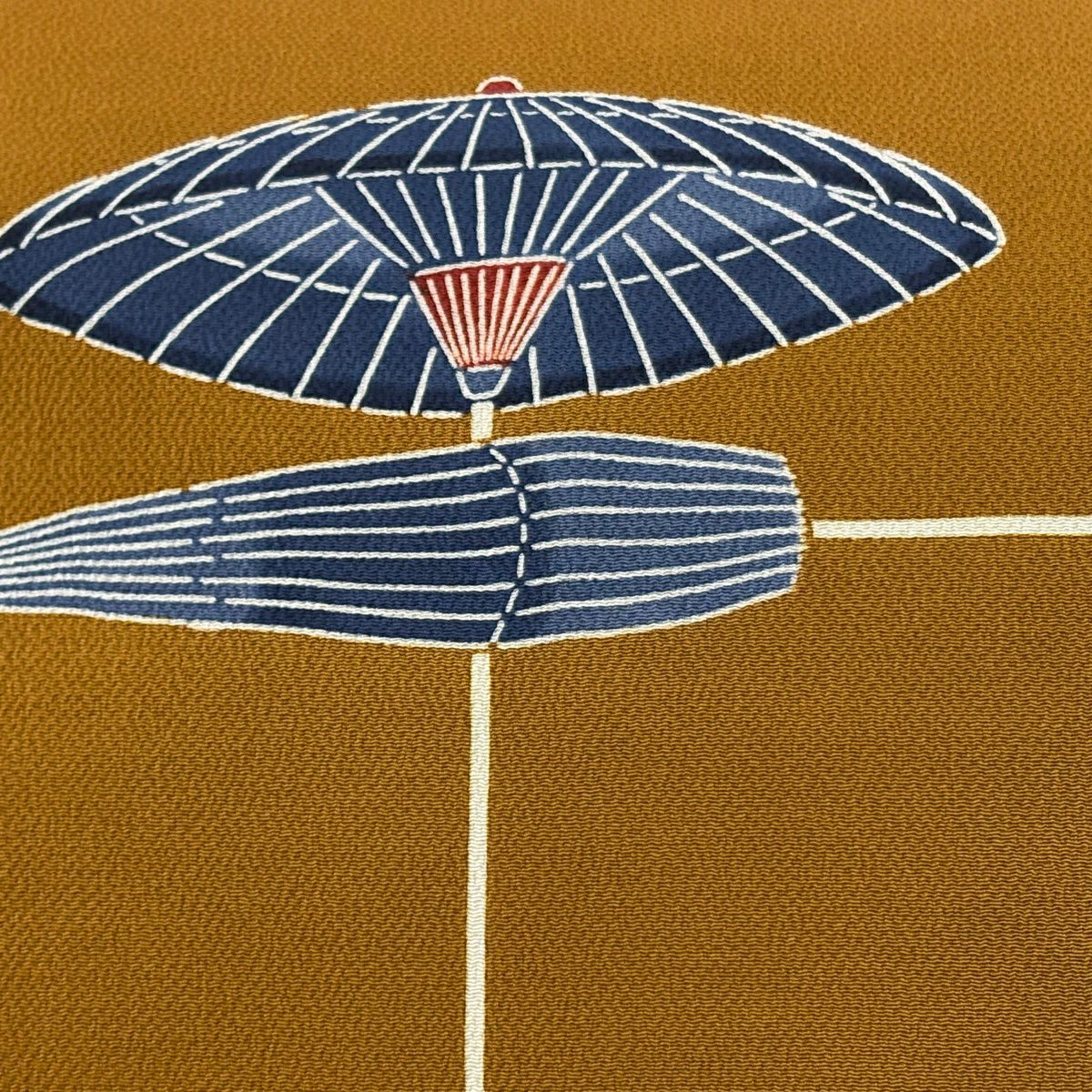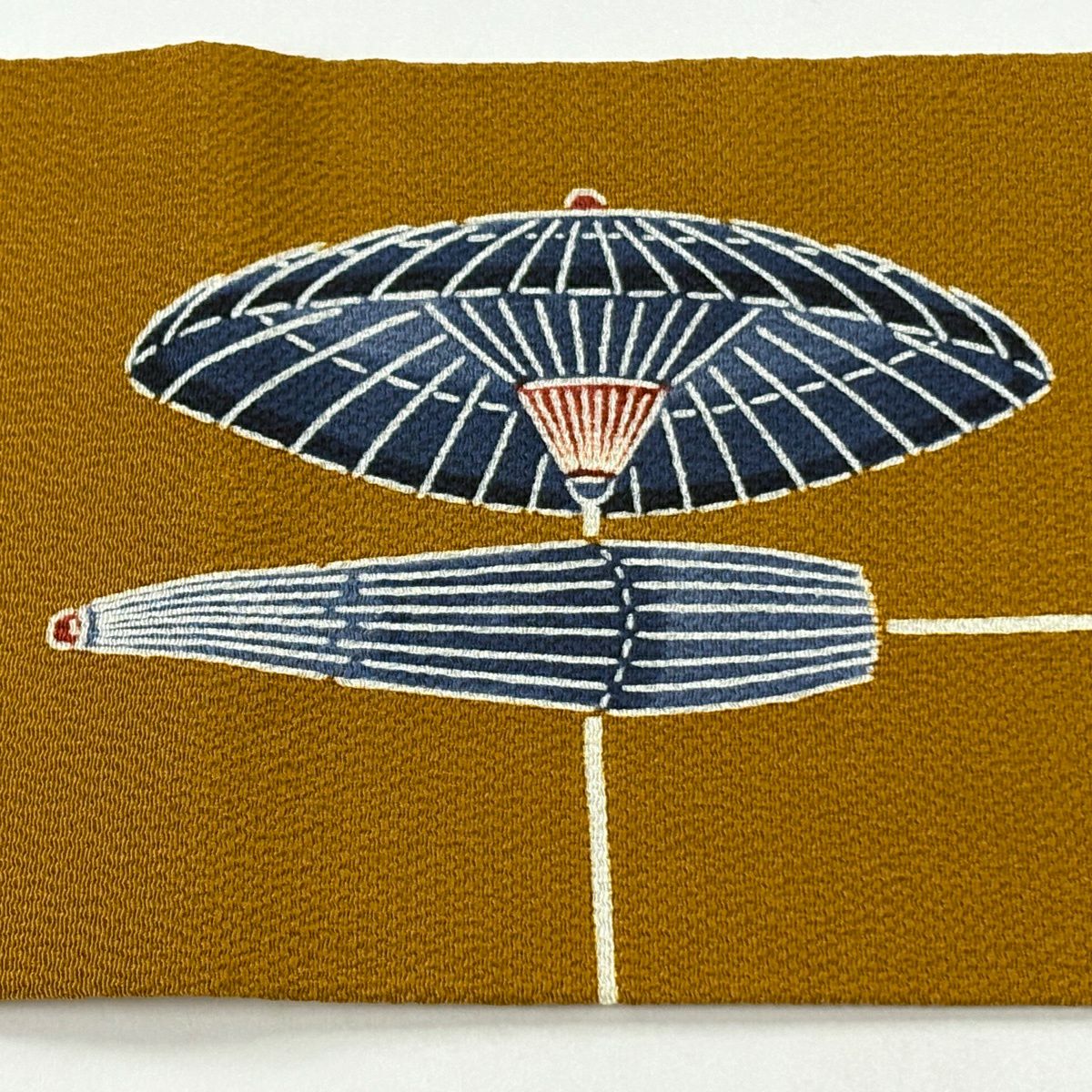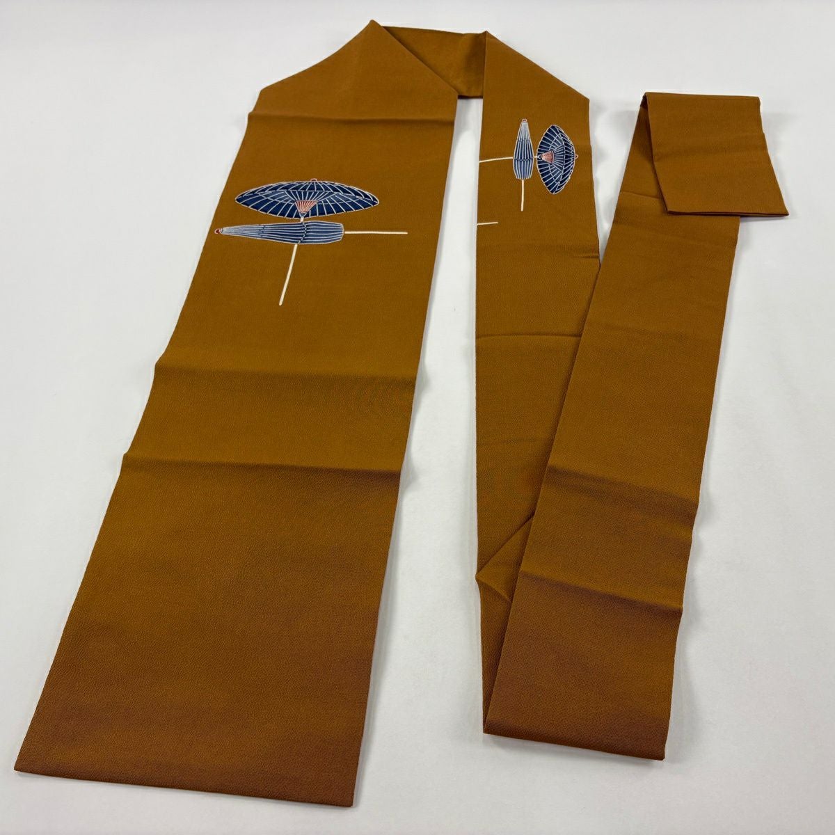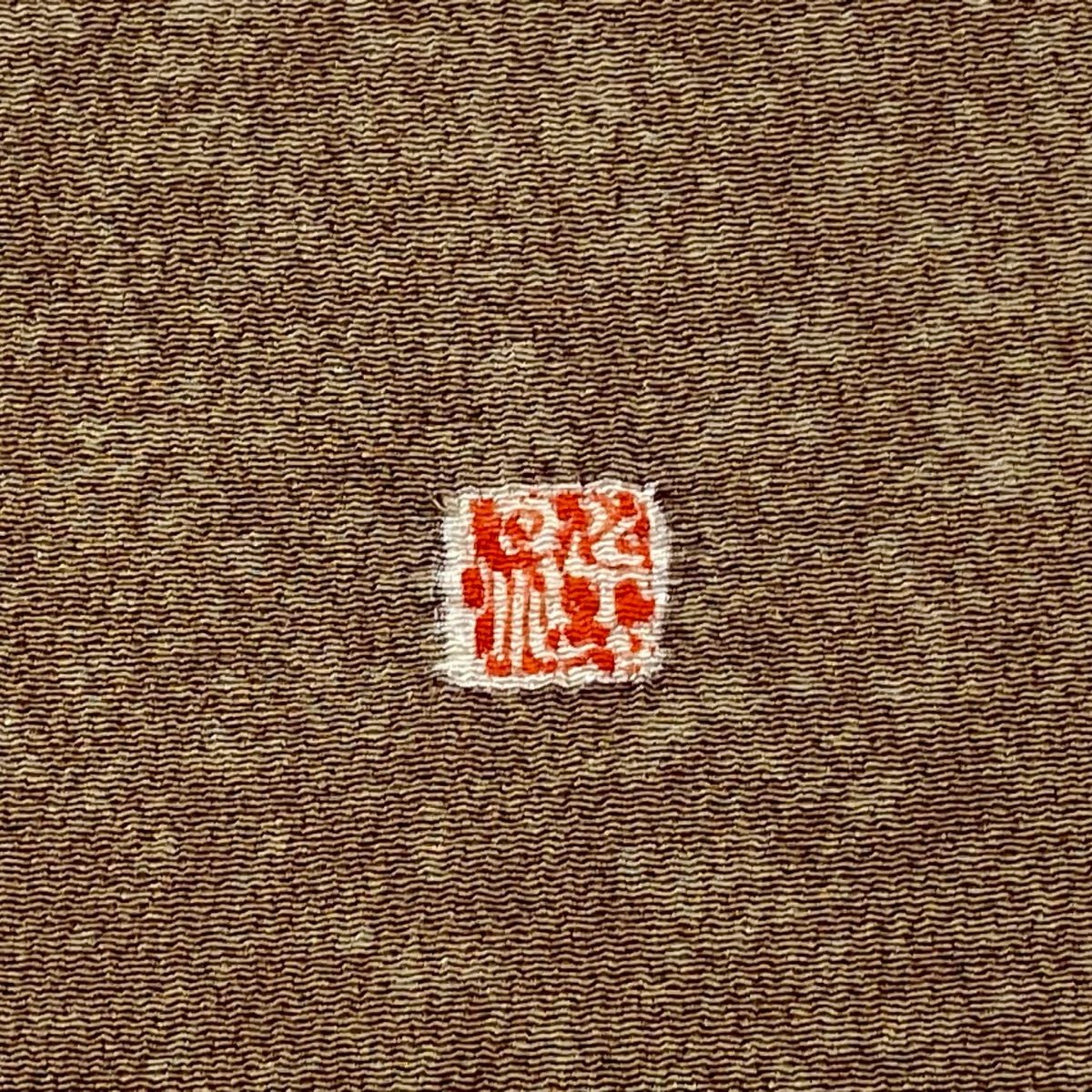 名古屋帯 逸品 栗山吉三郎 落款あり 番傘 縮緬 紅型 茶色 正絹