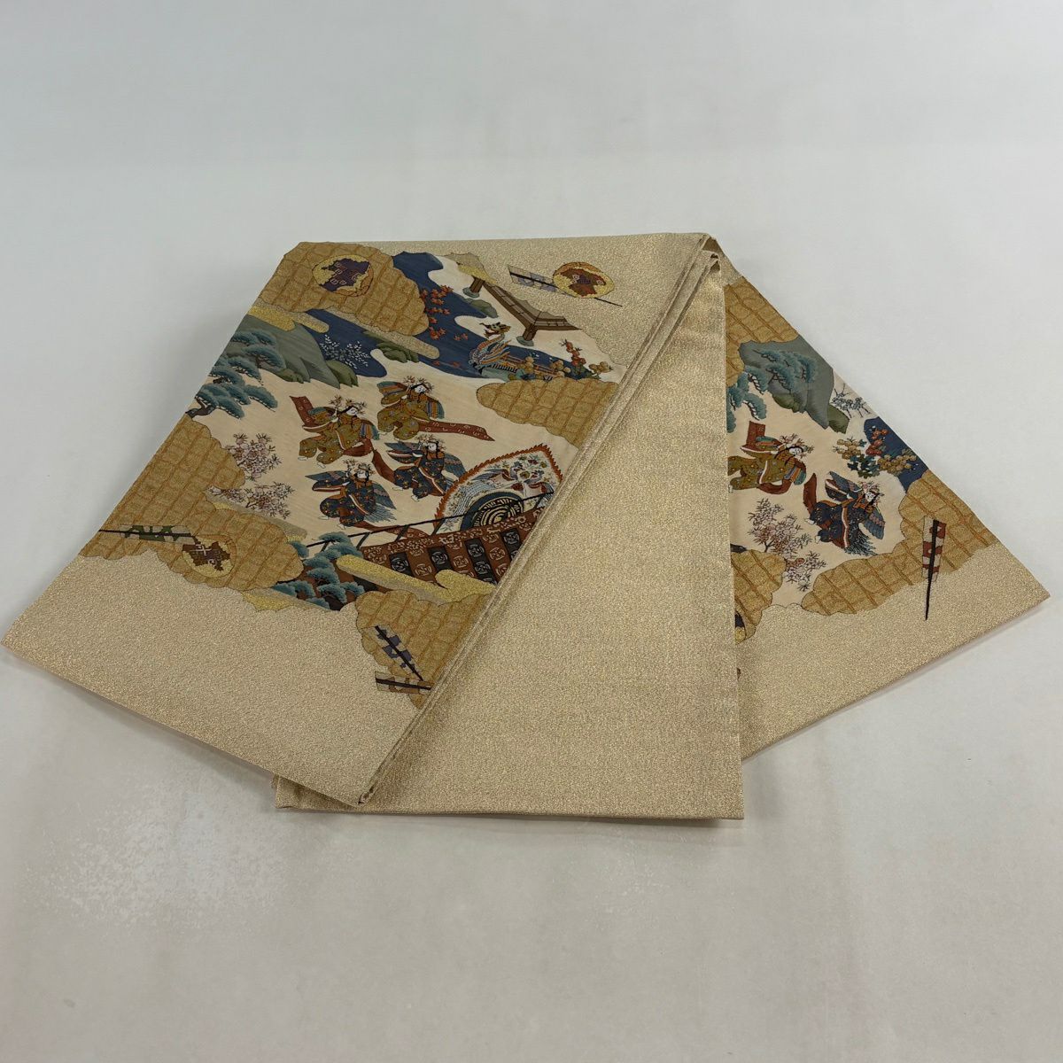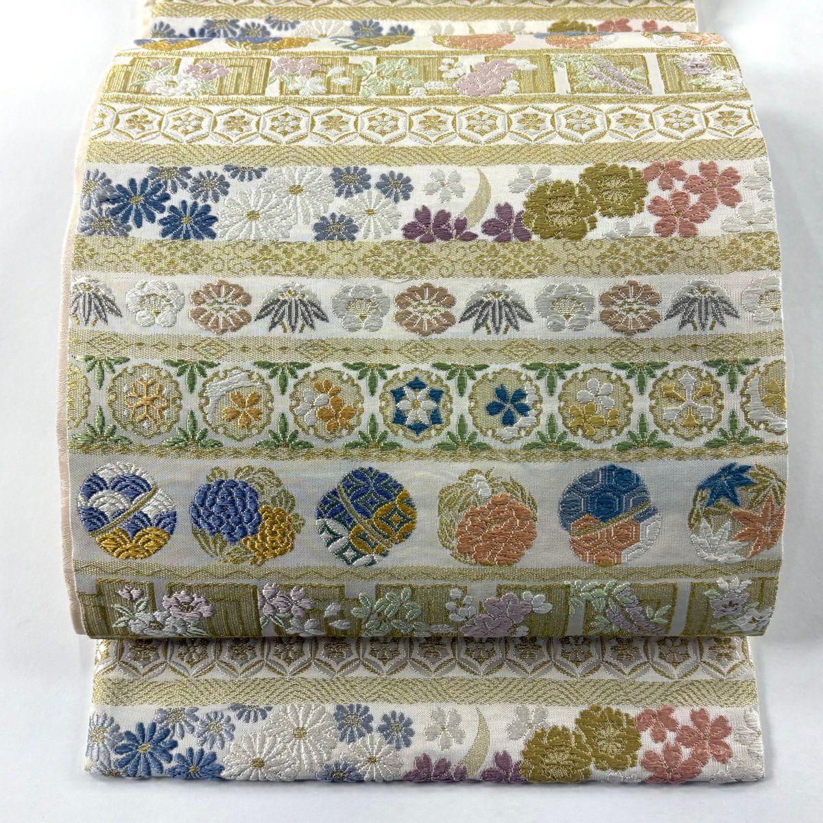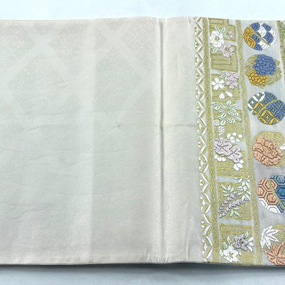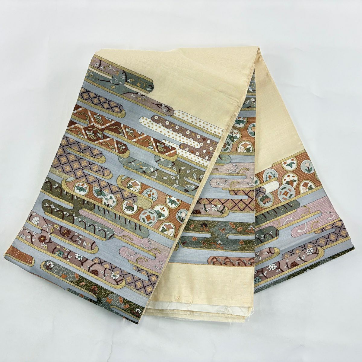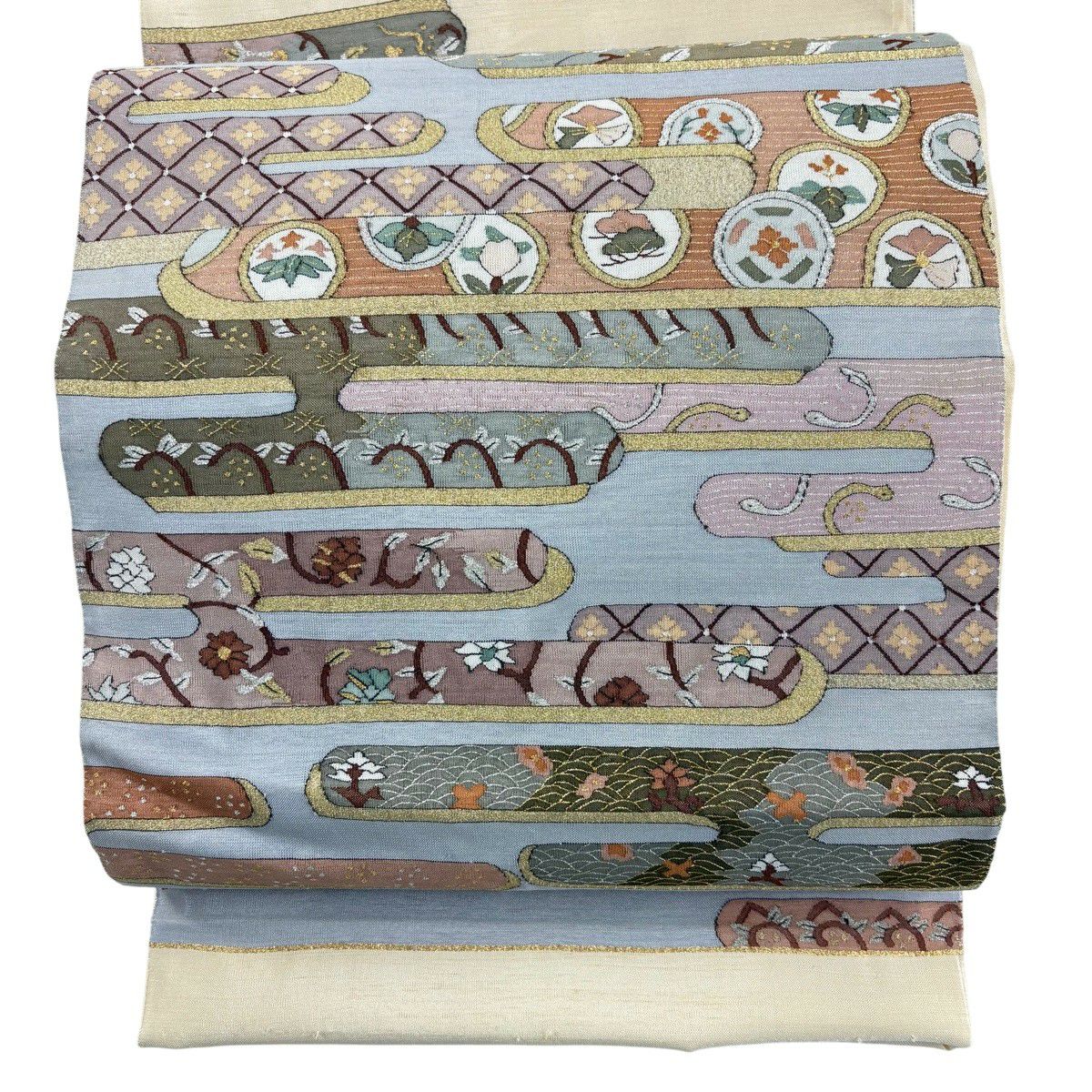 袋帯 逸品 菊 束ね熨斗 金糸 綴れ ベージュ お太鼓柄 正絹